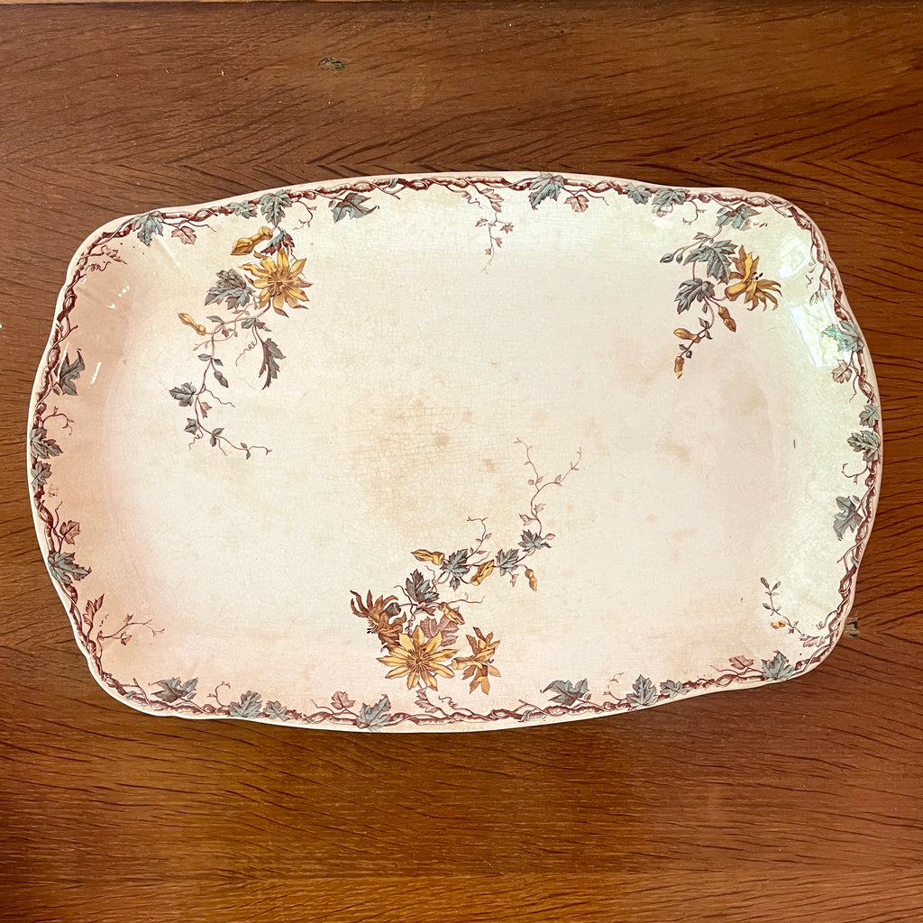 / Grand plat rectangulaire polychrome Lunéville modèle Passiflore XIXe