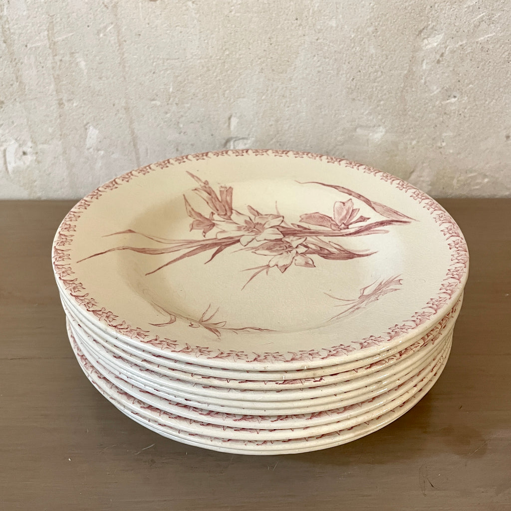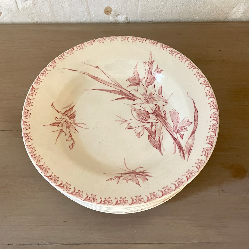 / Assiette à soupe de la faïencerie de Gien modèle Glaïeul Rose