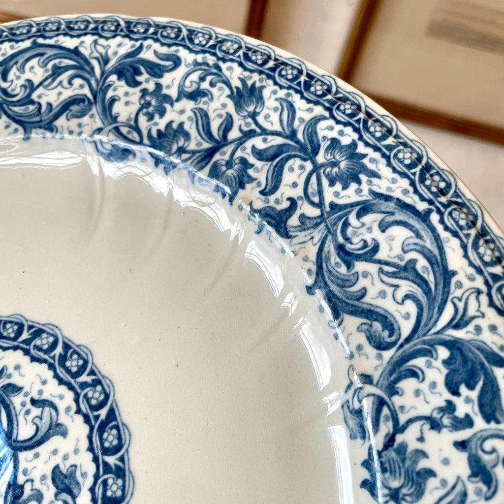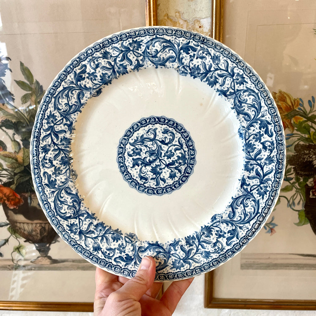 / Lot de 8 assiettes en faïence de Gien modèle Rouen guirlandes et feuillages bleu