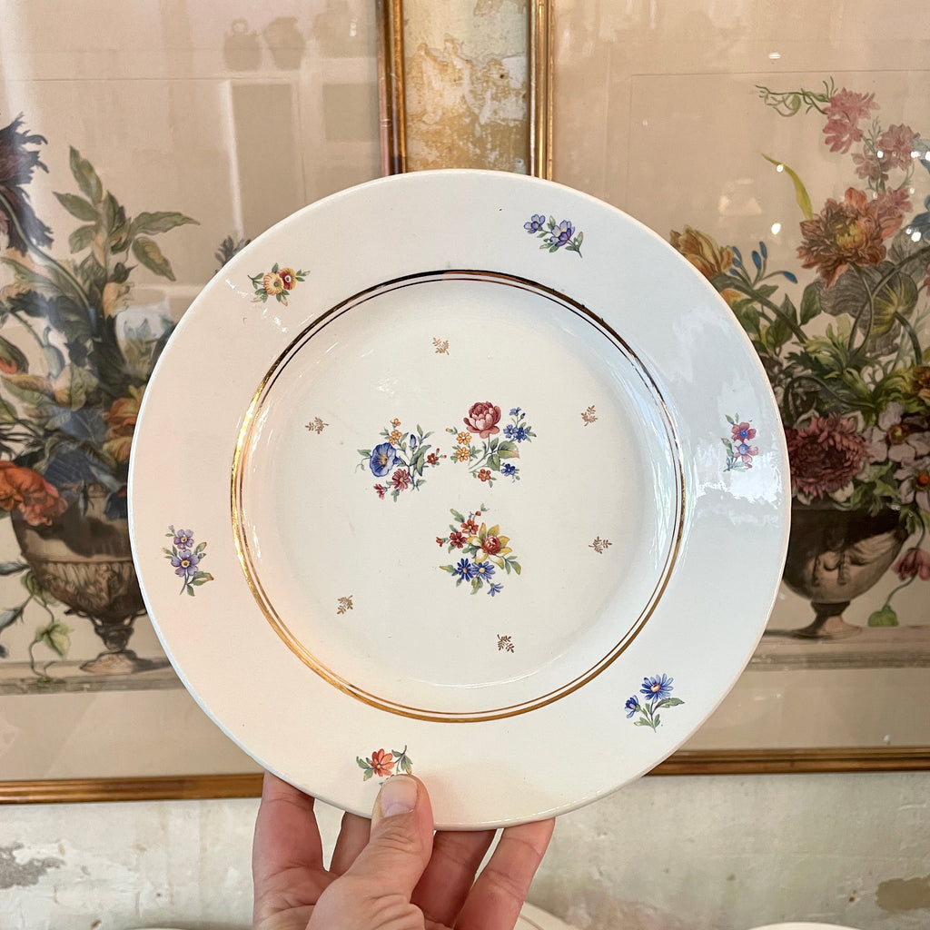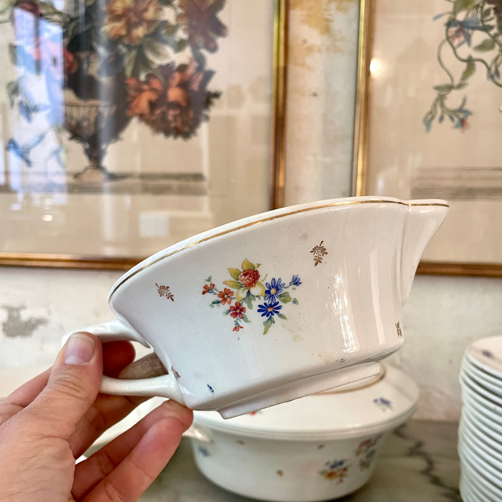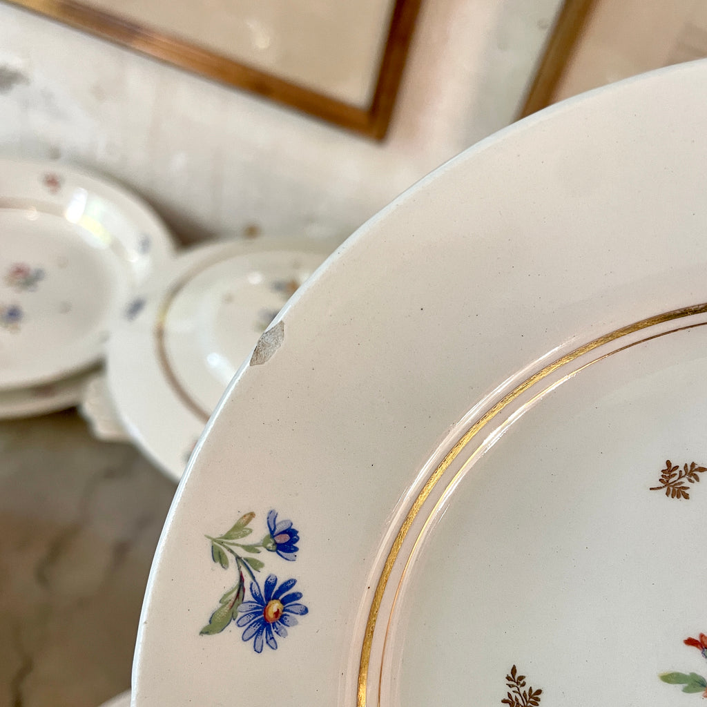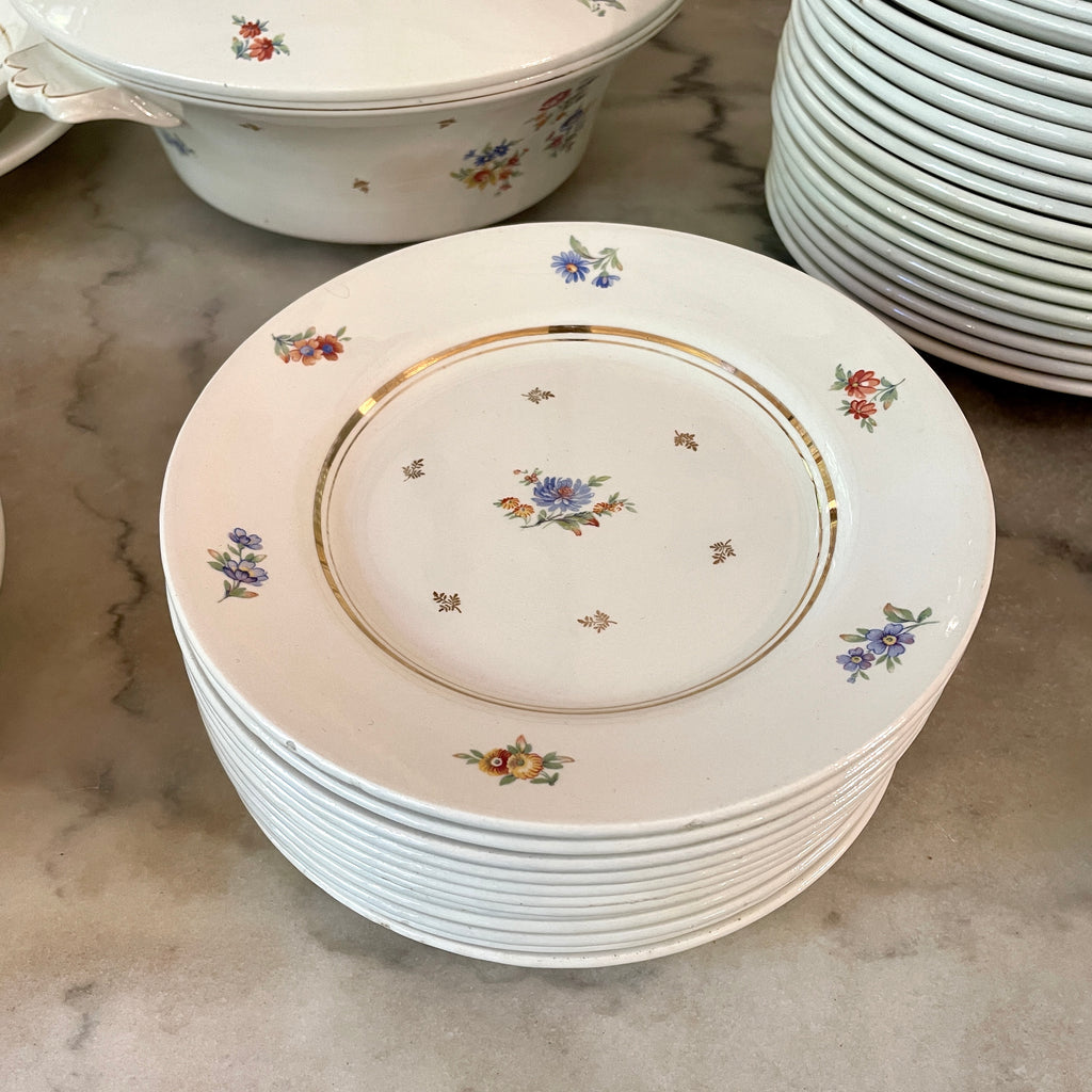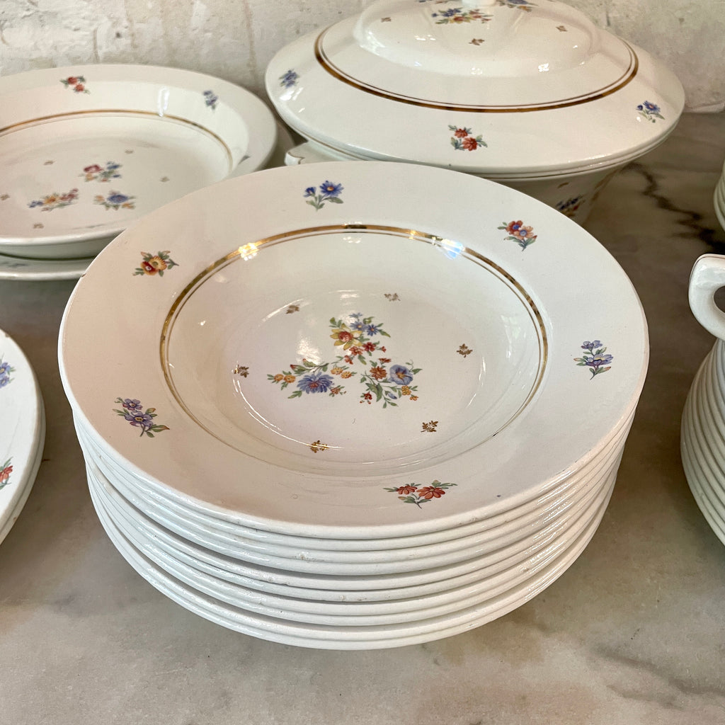 / Partie de service de vaisselle en faïence de Gien motifs fleurs