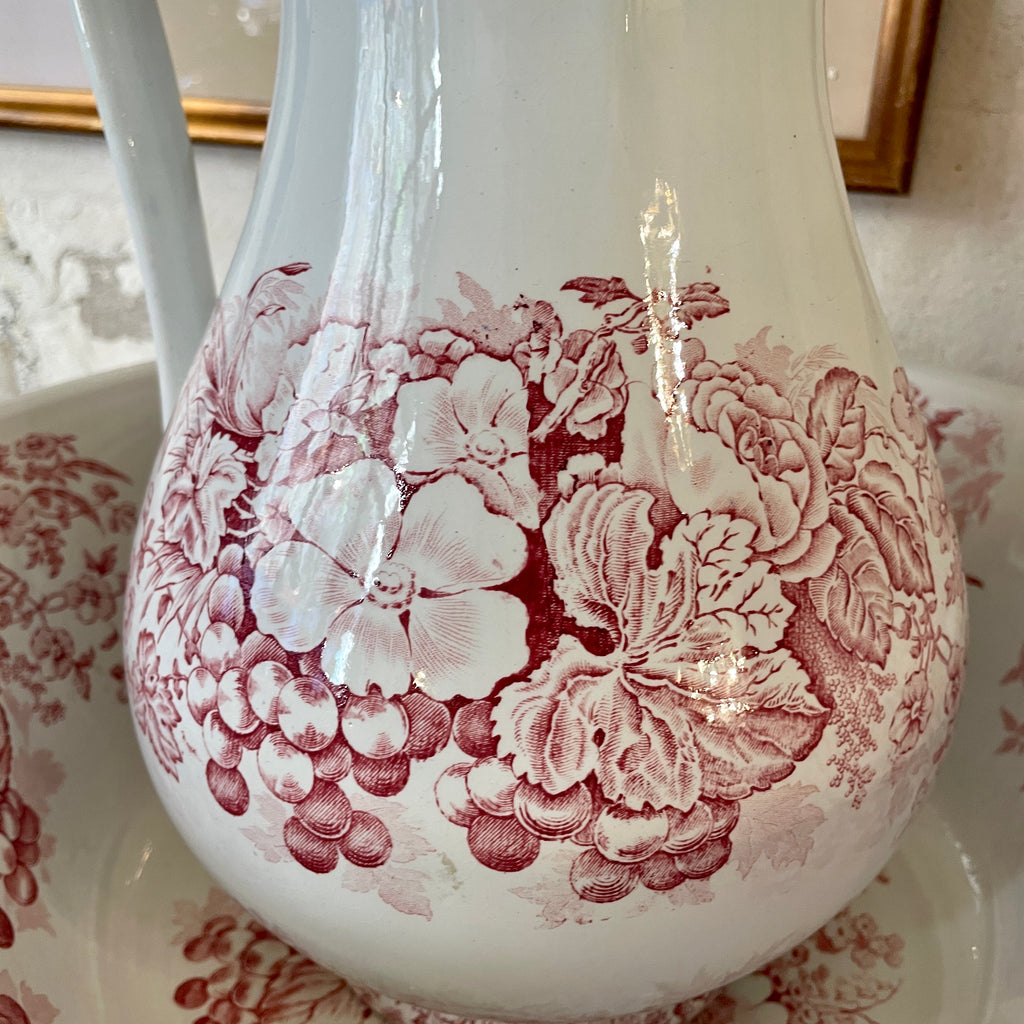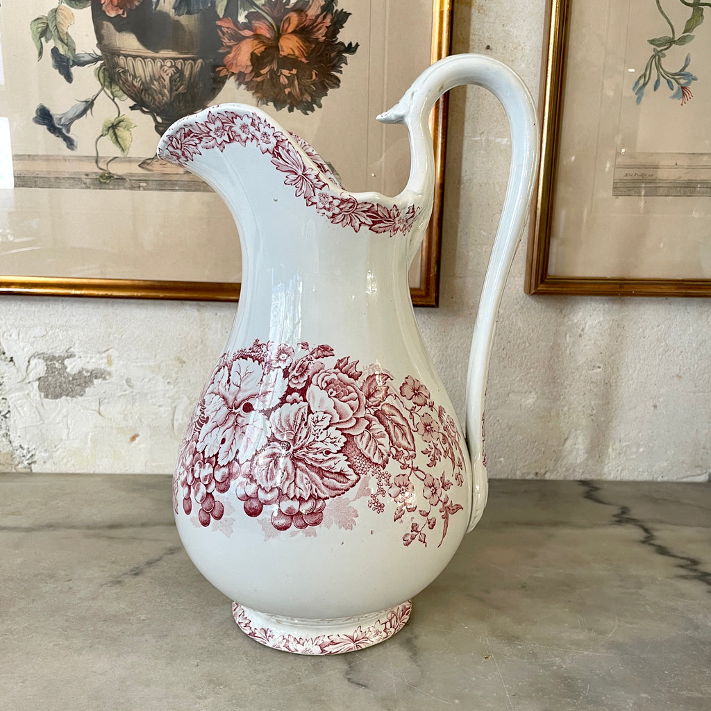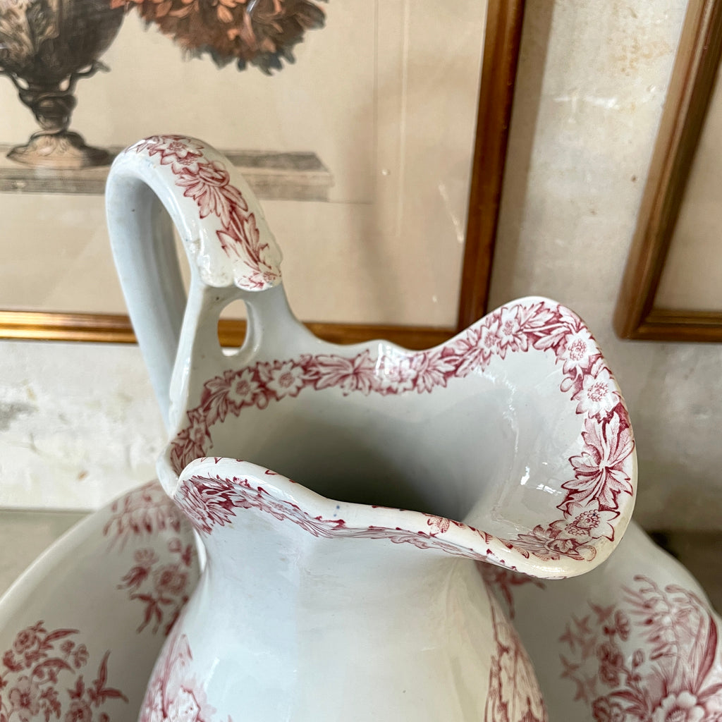 / Broc de toilette en faïence J. Vieillard Bordeaux 'Bouquets' XIXe