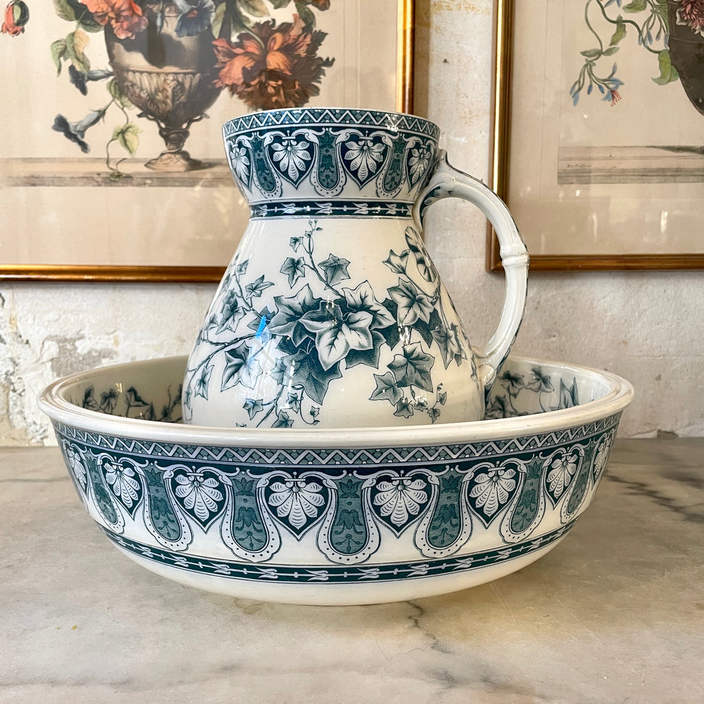 / Broc de toilette en faïence Sarreguemines modèle Lierre