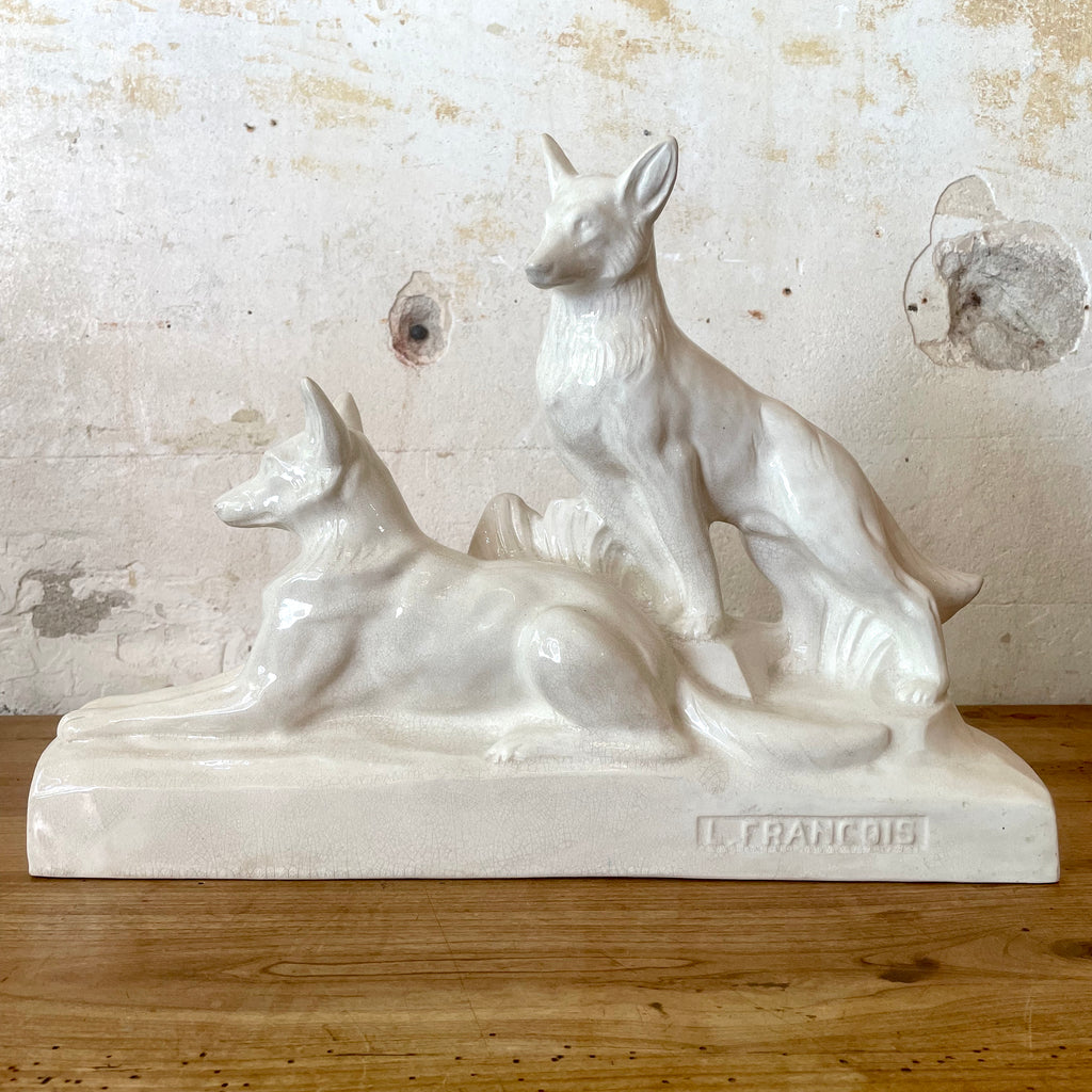 Céramique loups Art Déco craquelé L. François