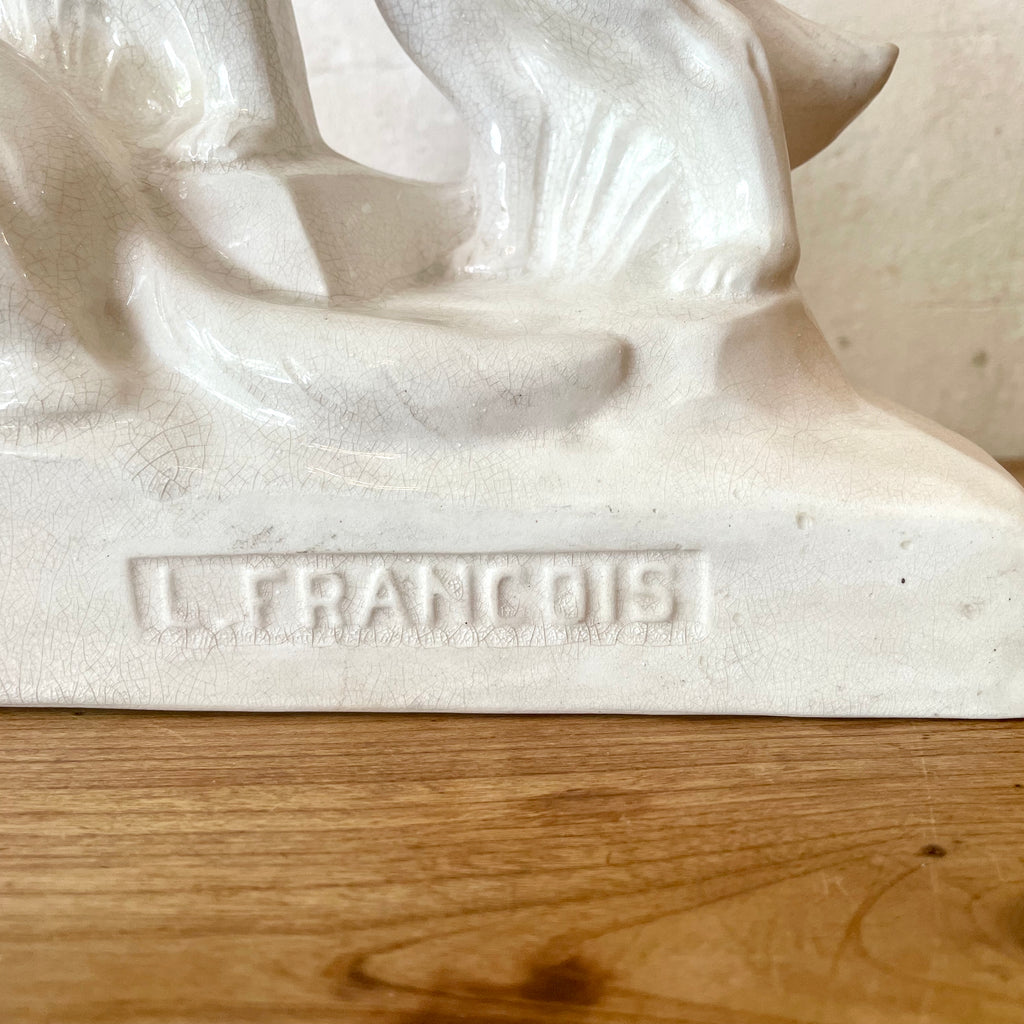 Jolie sculpture représentant deux chiens , années 30 environ signée L. François pour François Levallois (1882-1965)