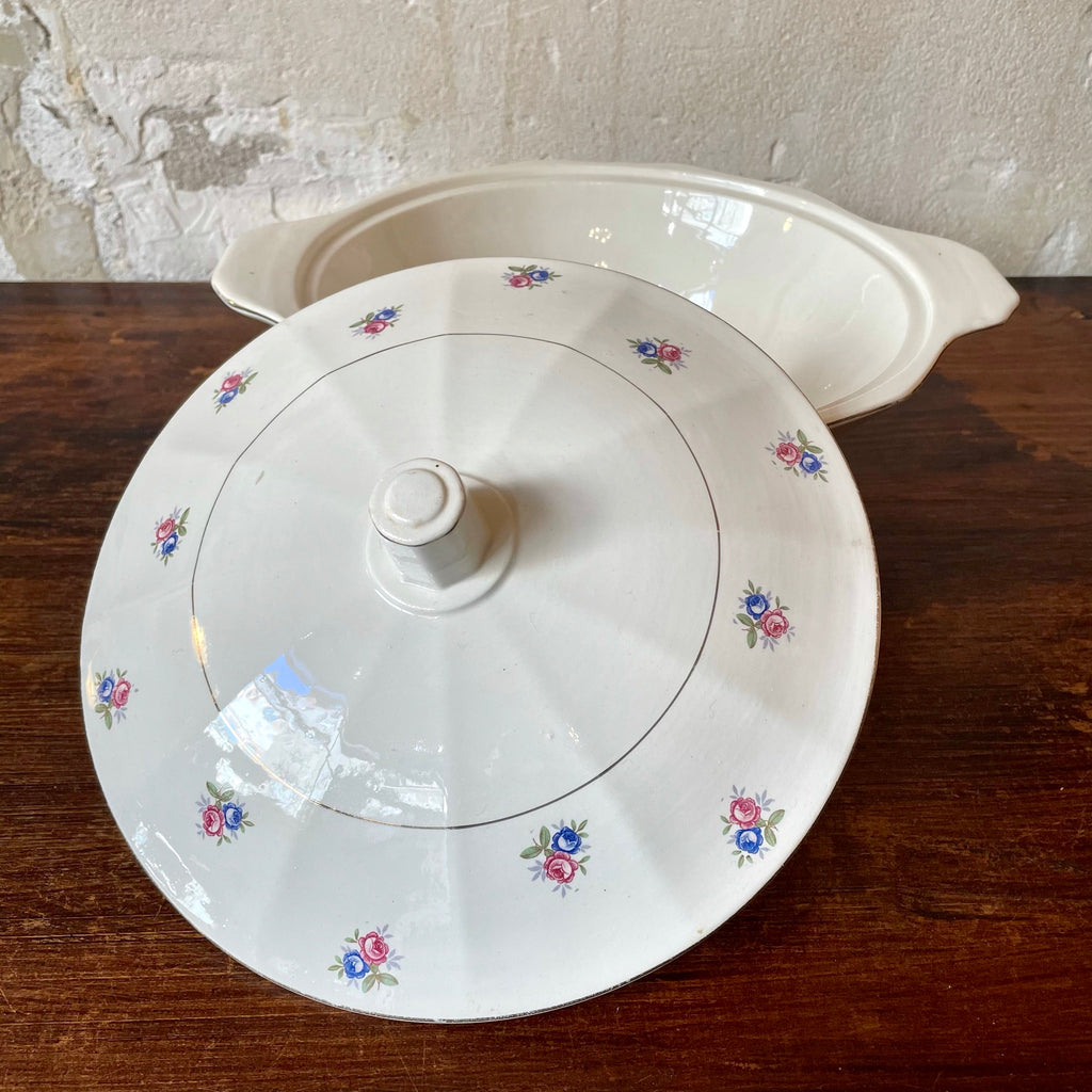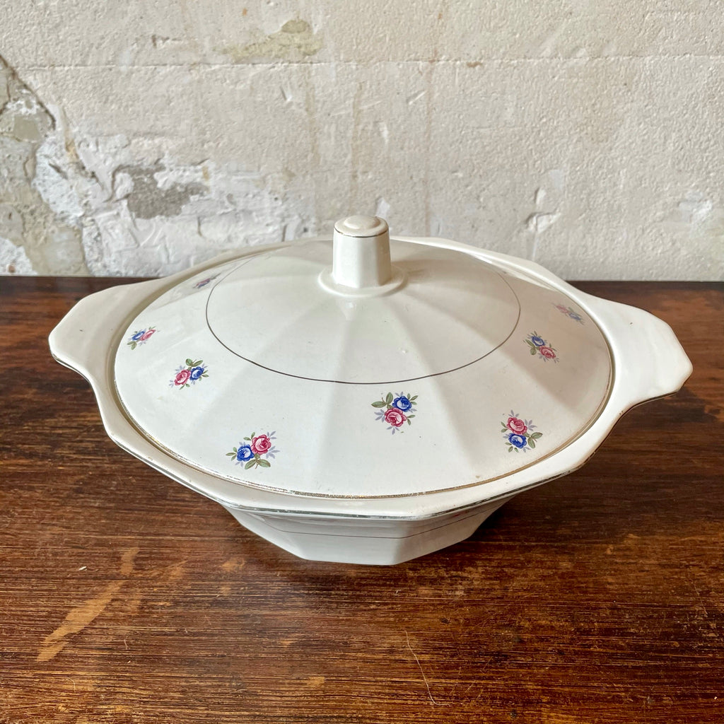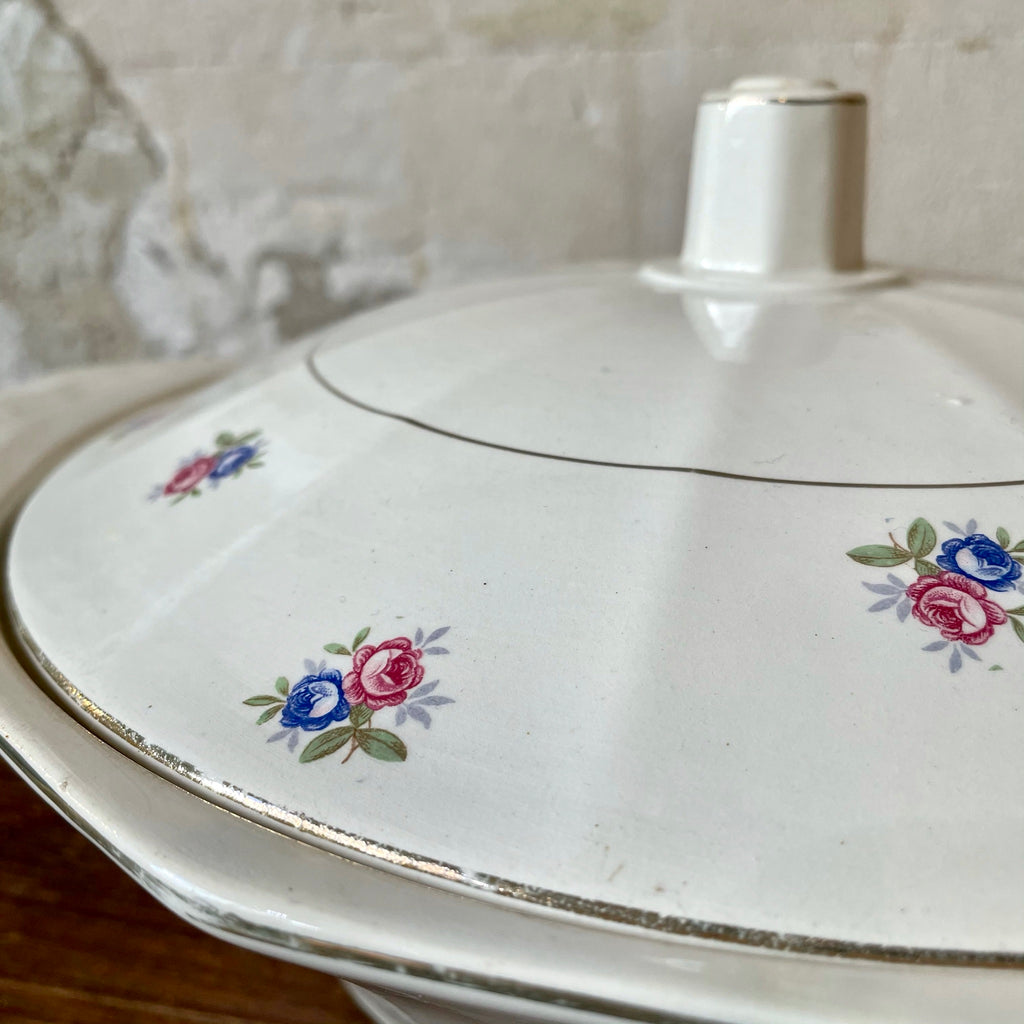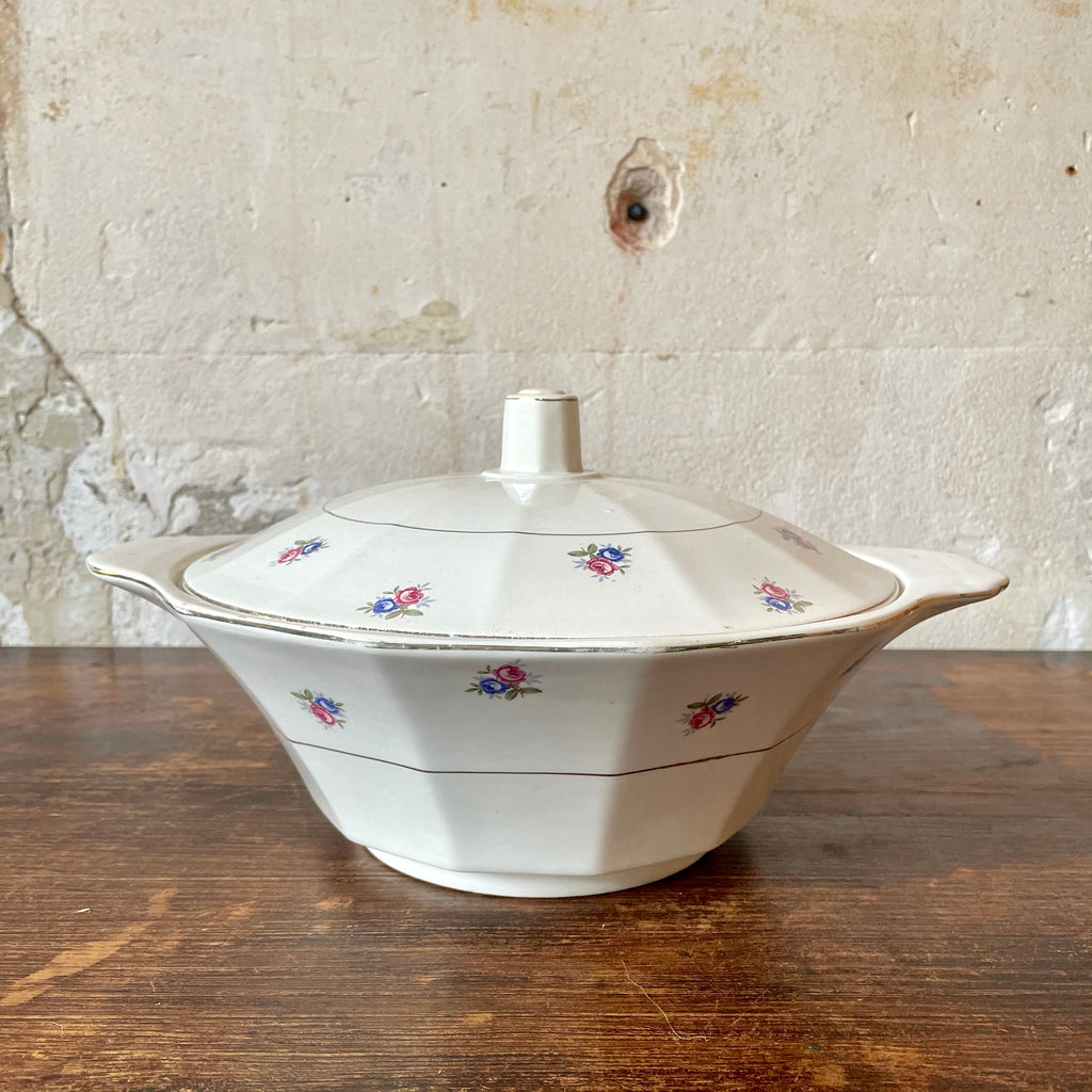 Jolie contenance pour cette grande soupière aux petites fleurs colorées.