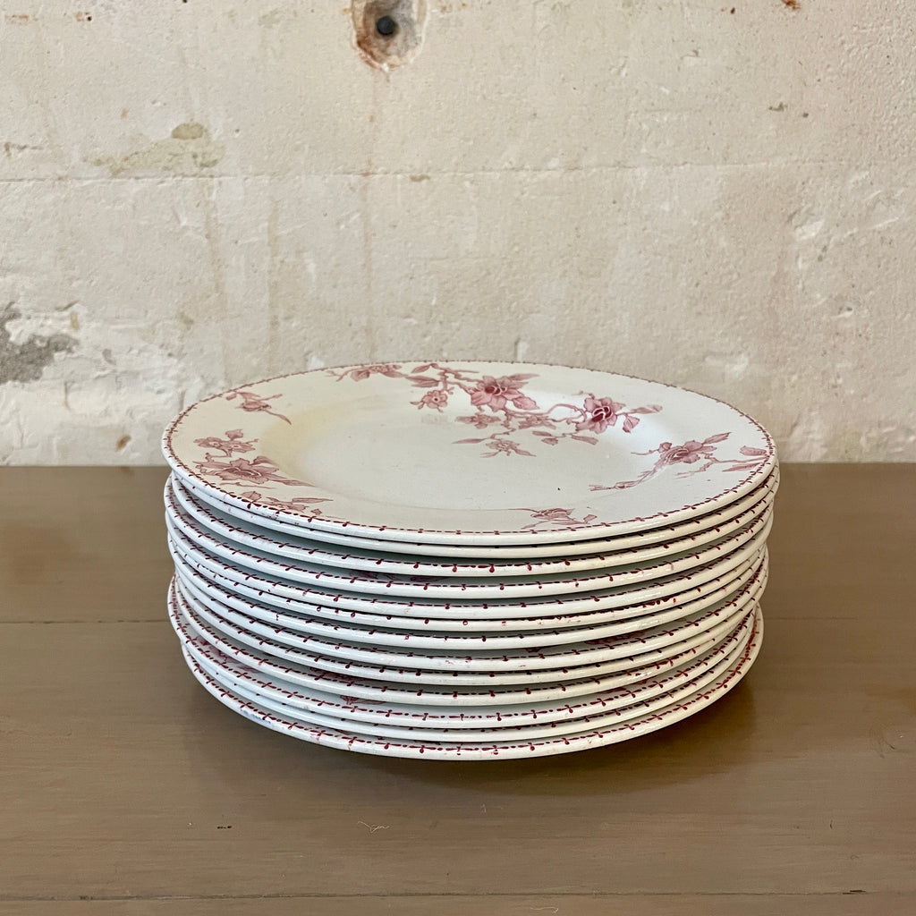 / Assiette plate En faïence de Lunéville modèle Hollandais rose XIXe