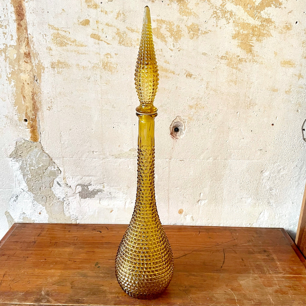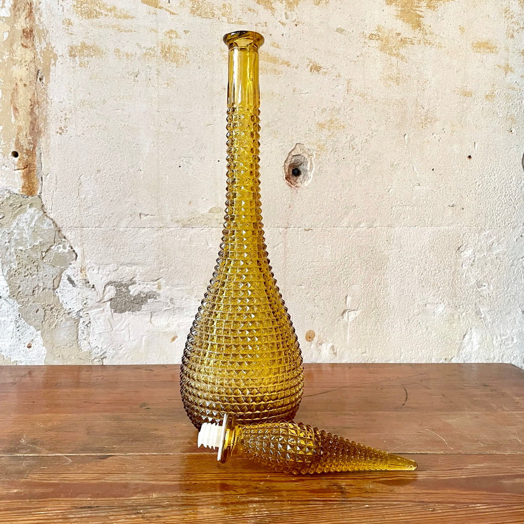 Cette jolie bouteille couleur orangé des années 60 est fabriquée en Italie à Empoli, ville toscane réputée pour être la cité du verre.