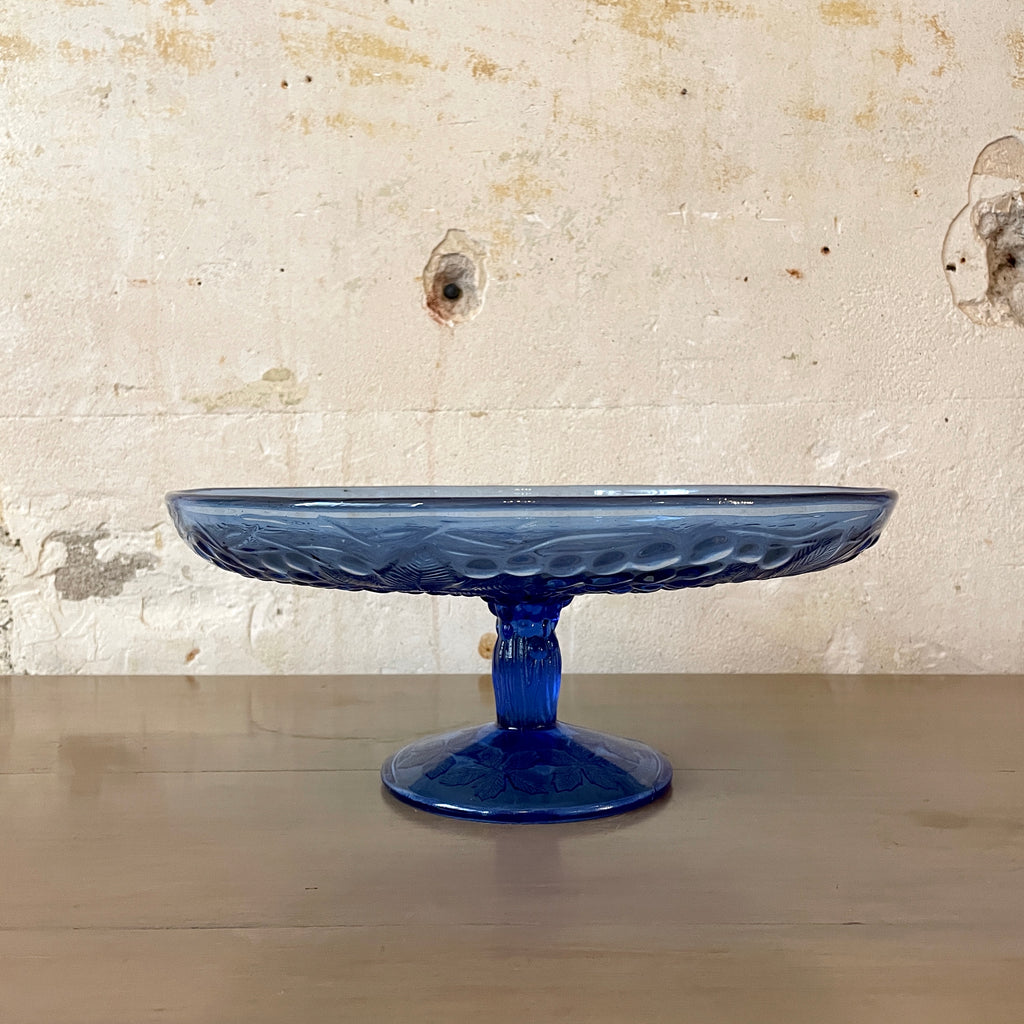 / Grand plat présentoir à gâteau coupe à fruits bleu