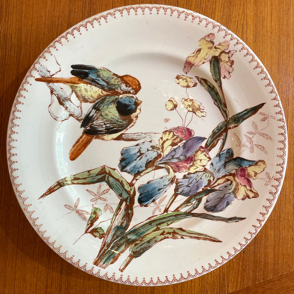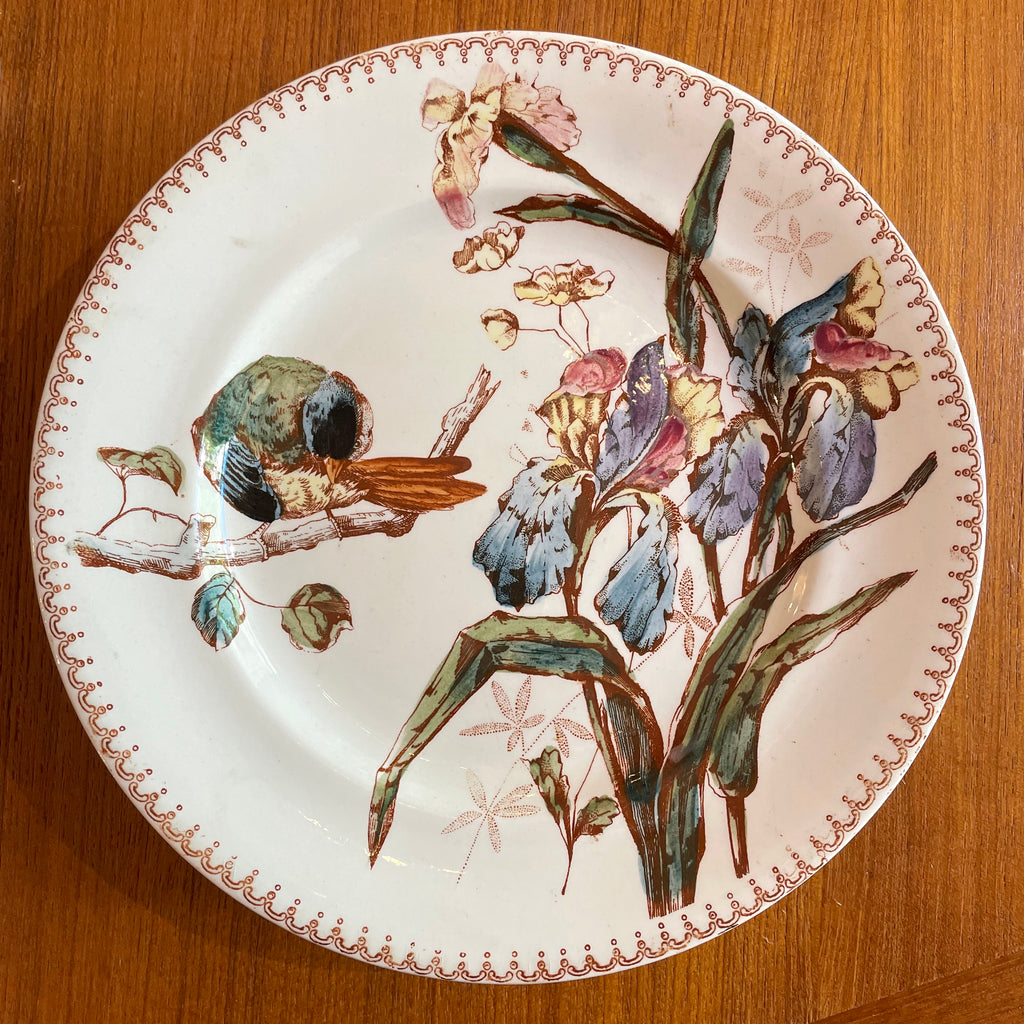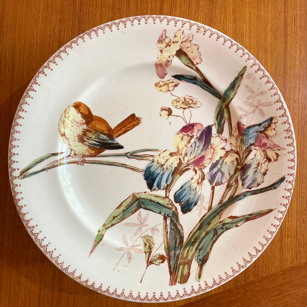 / Assiette plate polychrome Oiseau et Iris Longwy