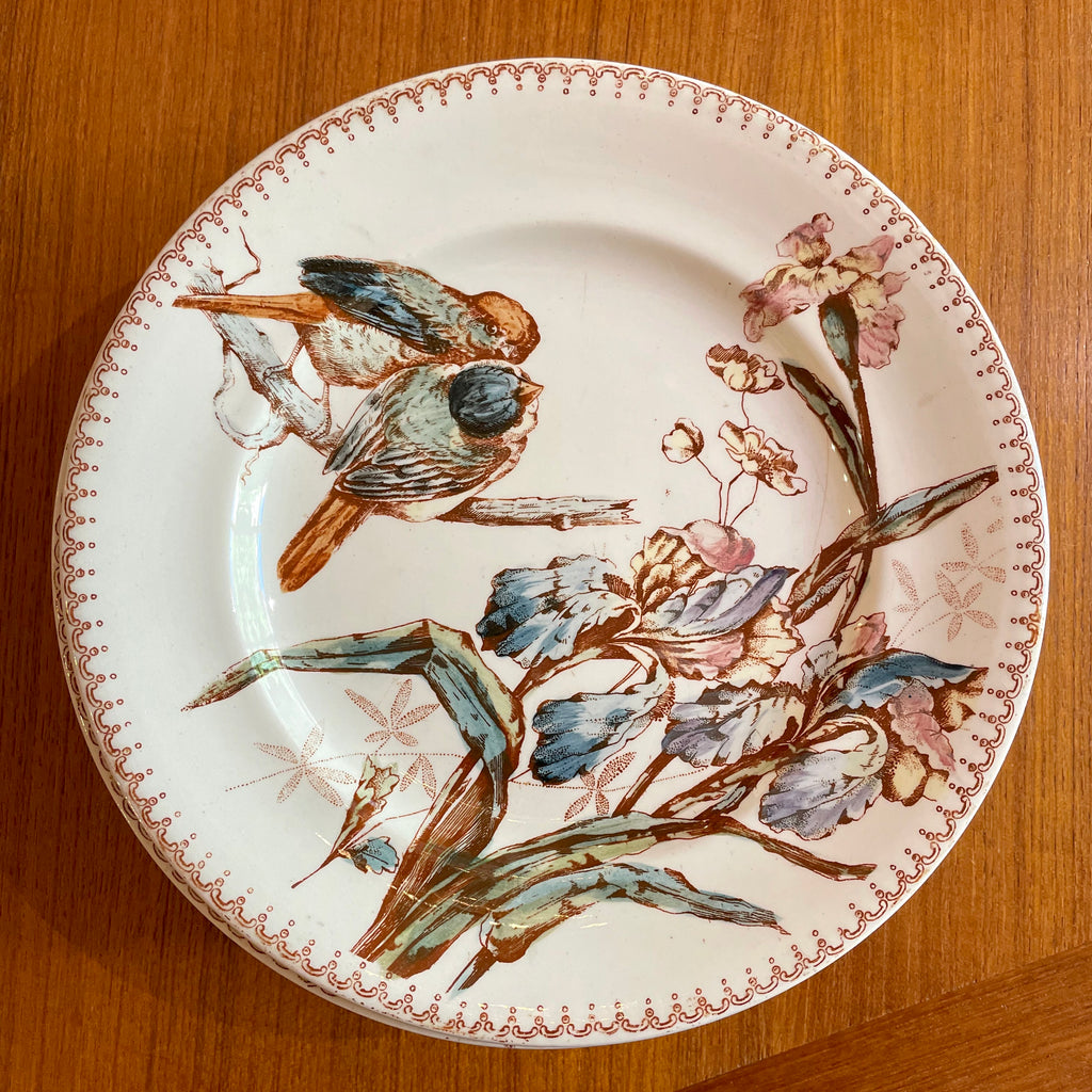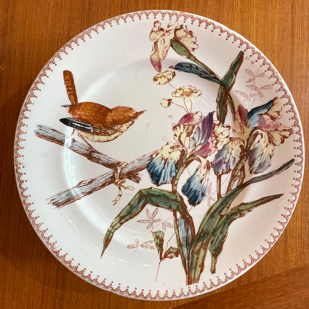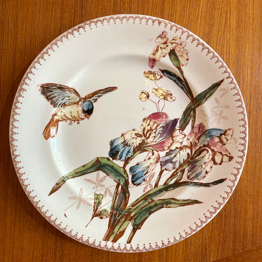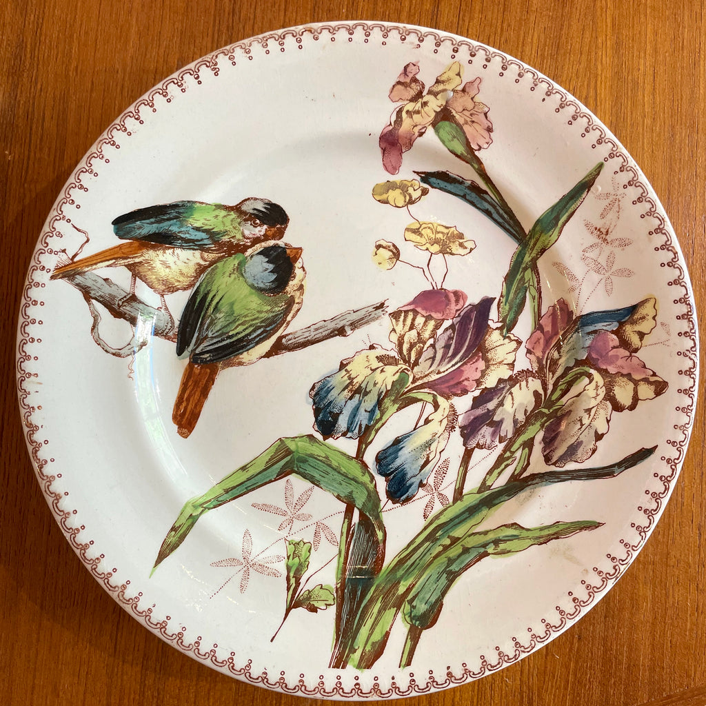 / Assiette plate polychrome Oiseau et Iris Longwy