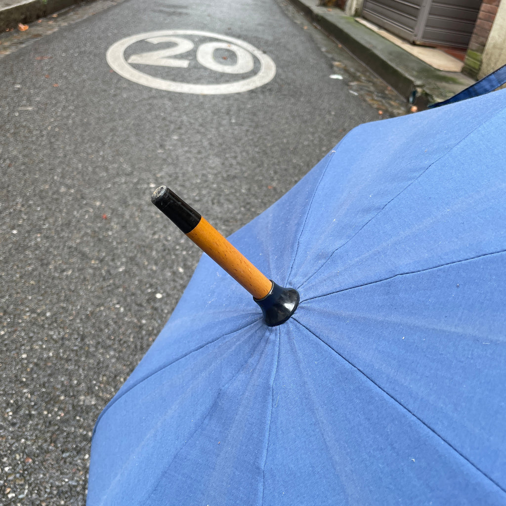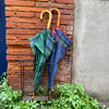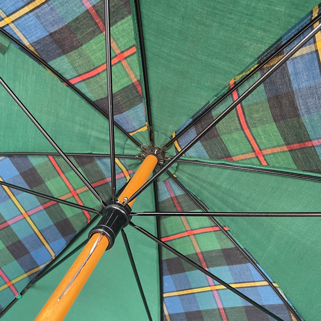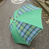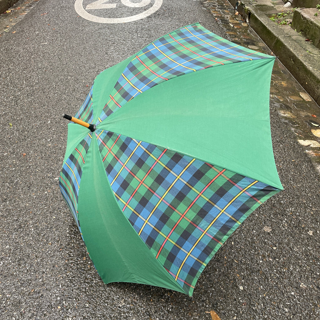 Parapluie vintage Cyrillus, l'un bleu, l'autre vert et carreaux.