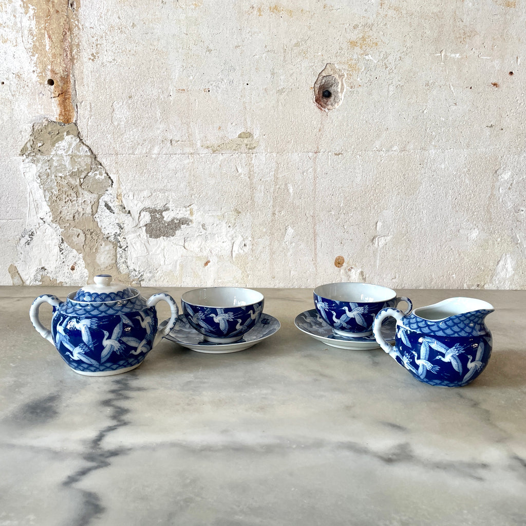 / Petit service à thé ou café en porcelaine japonaise bleu et blanc