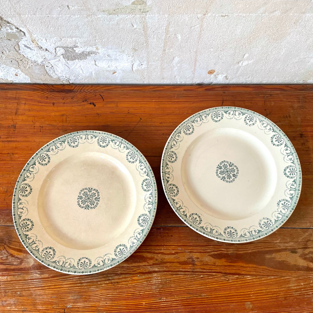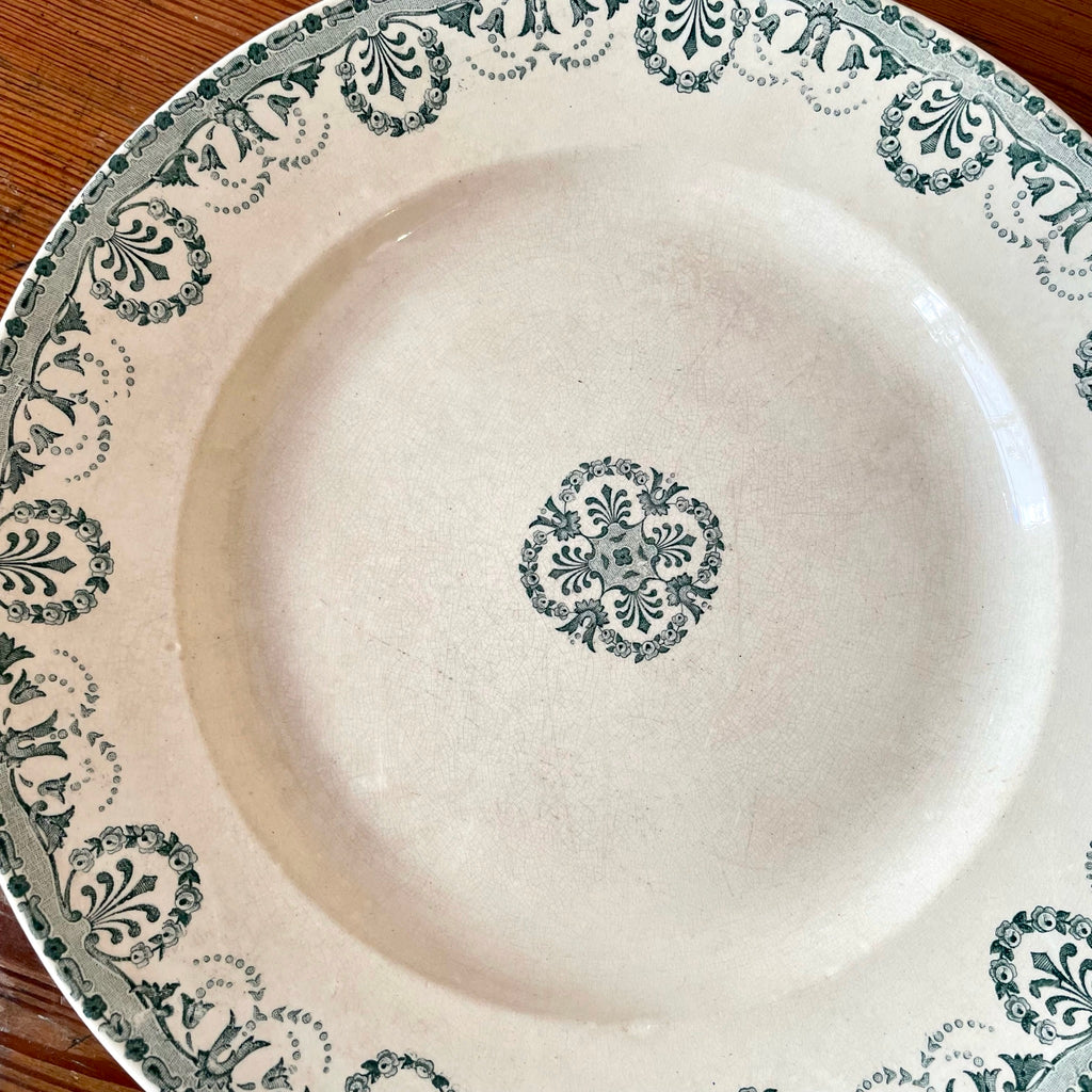 Plat rond au décor de guirlandes végétales dans les tons de vert. Début XXe. Très bon général.