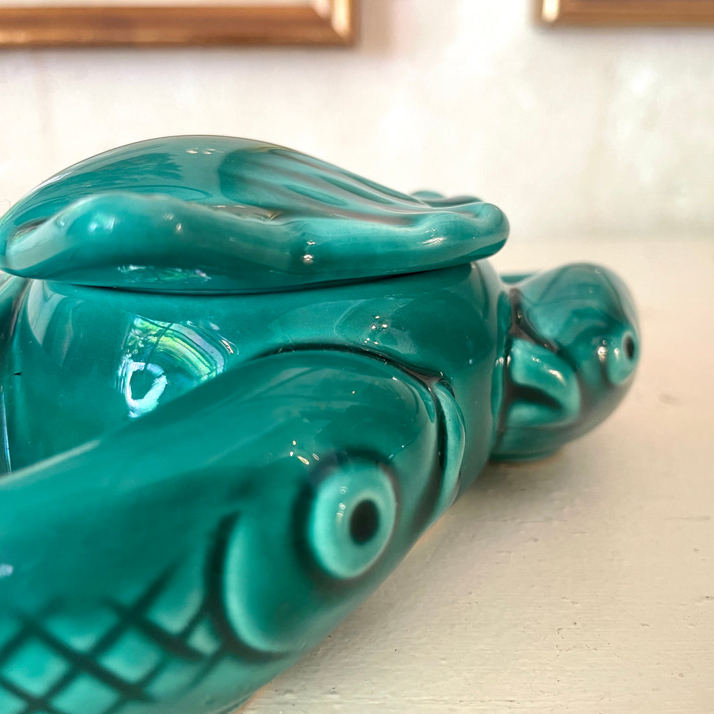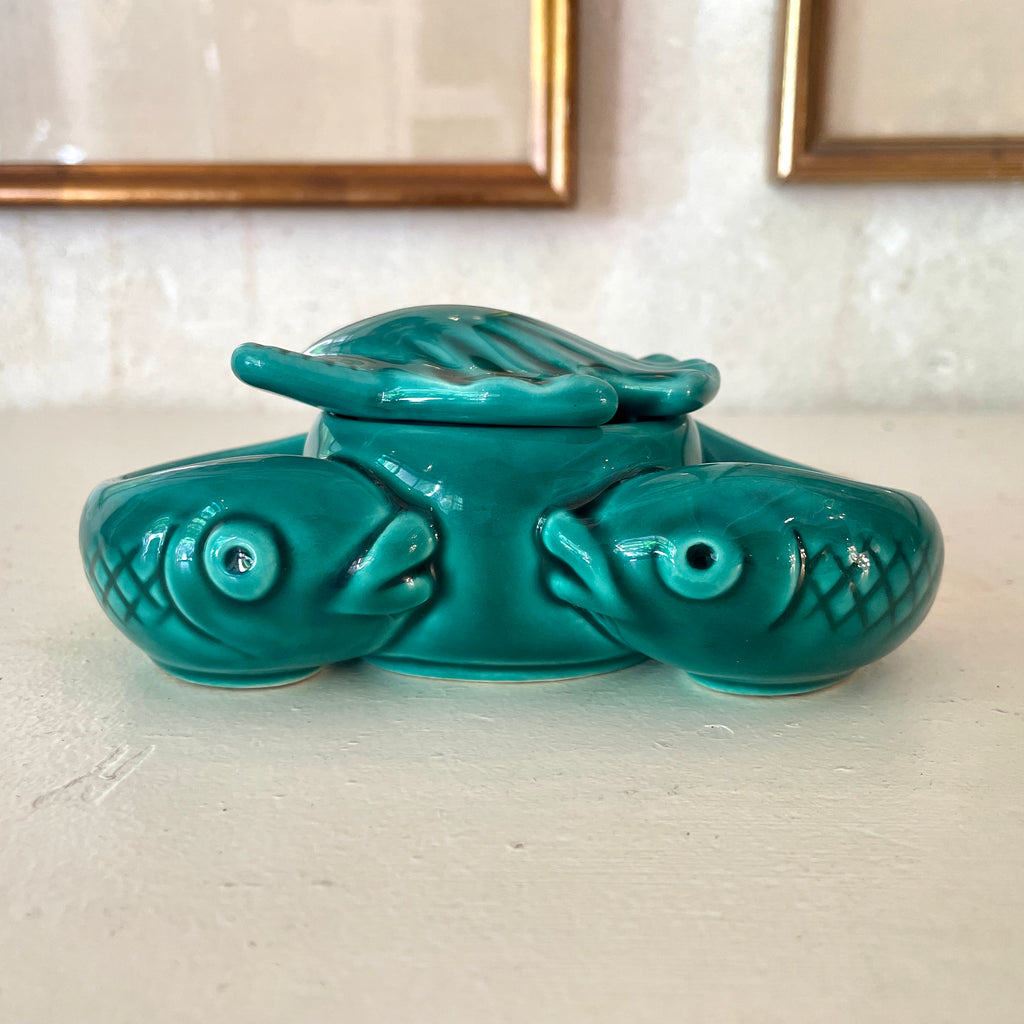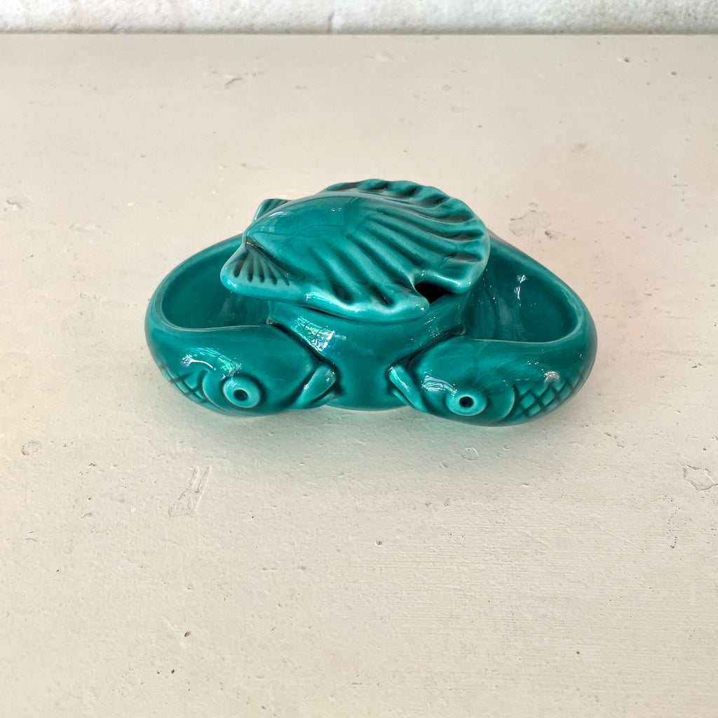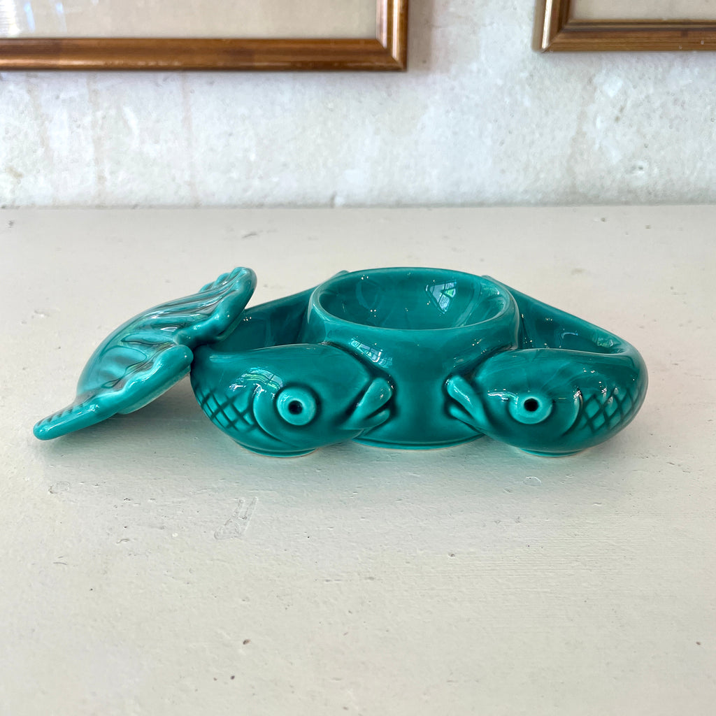/ Salerons poissons sel, poivre et moutarde en céramique verte