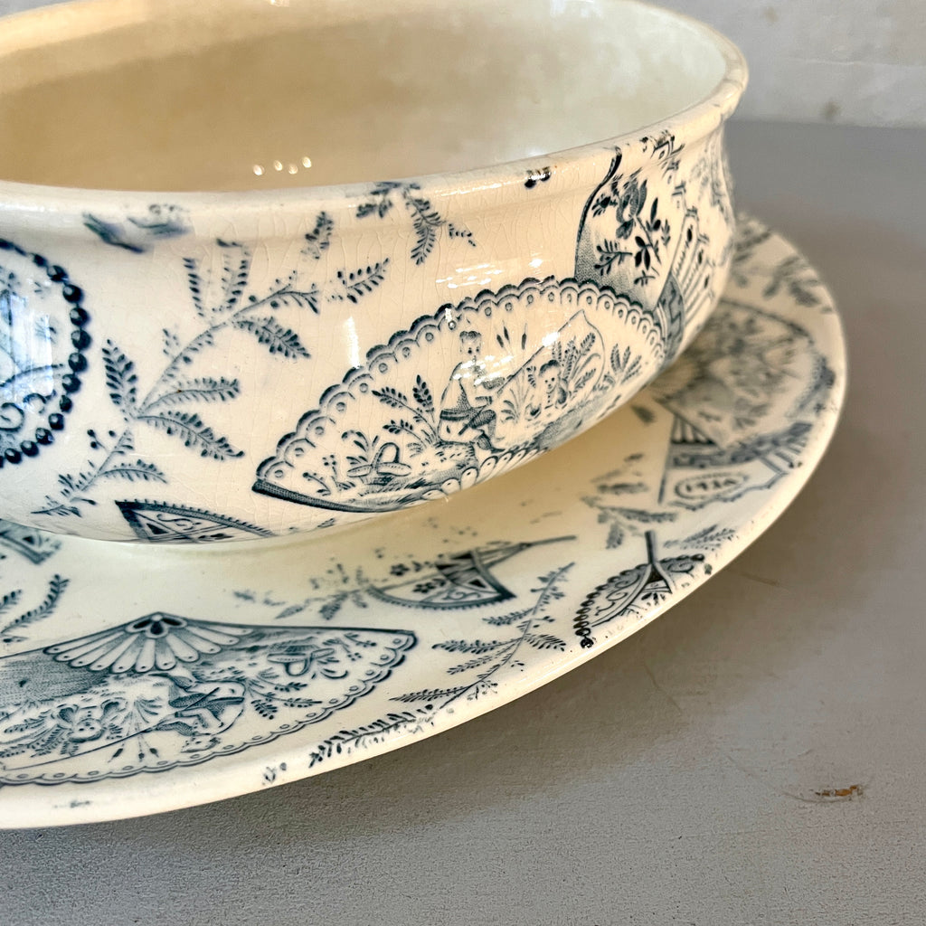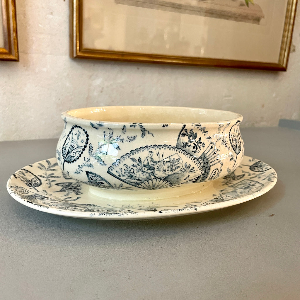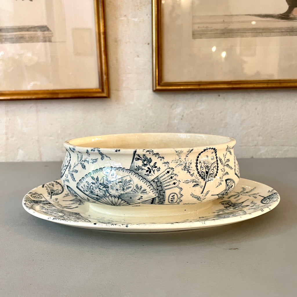 Saucière en faïence de Longwy modèle Éventail fin XIXe.