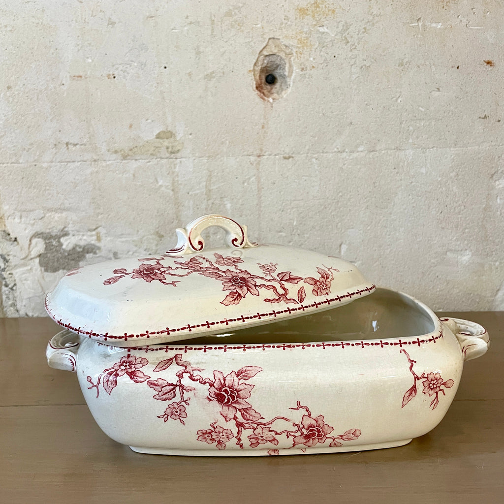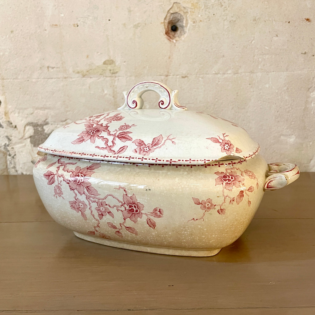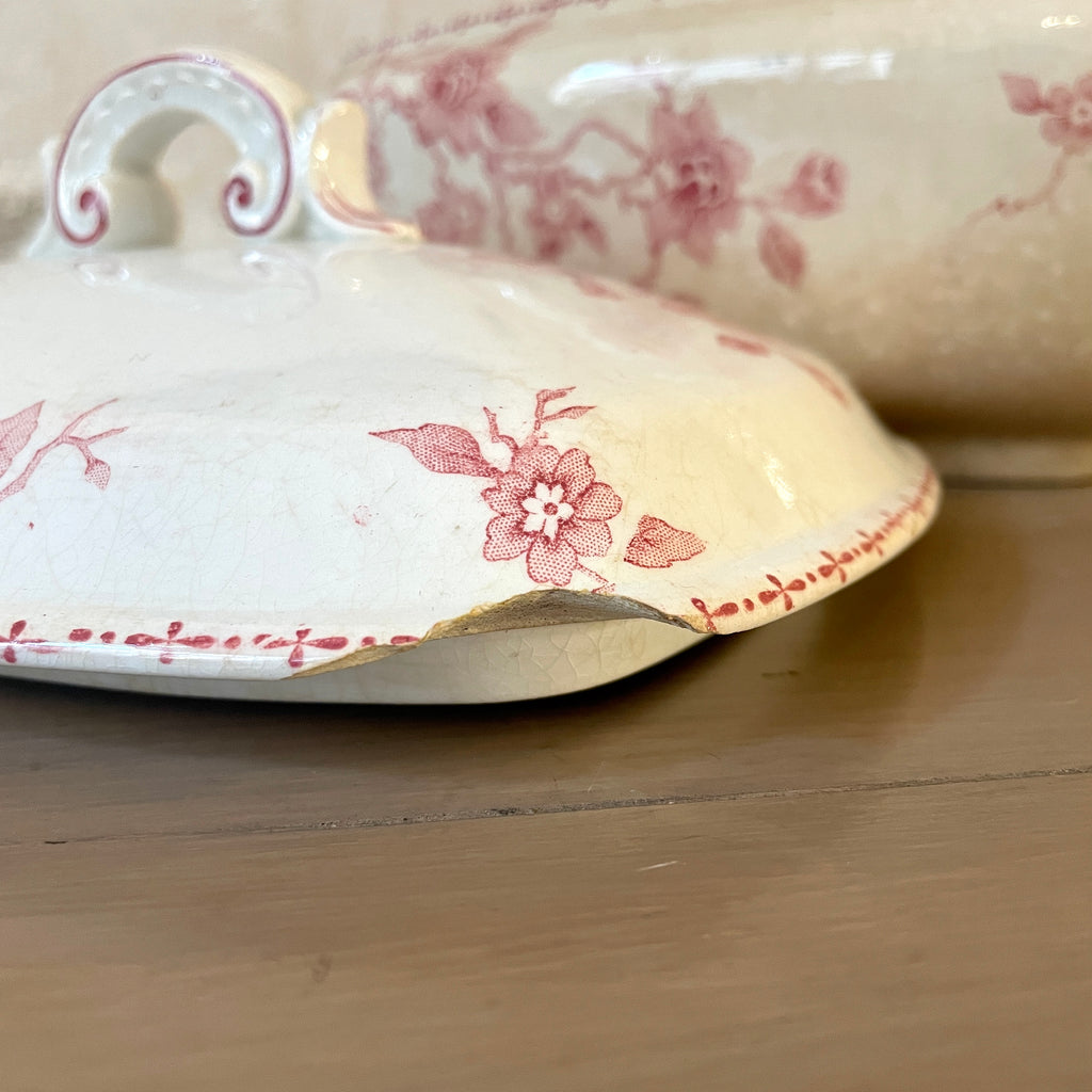 / Soupière légumier en faïence de Lunéville modèle Hollandais rose XIXe