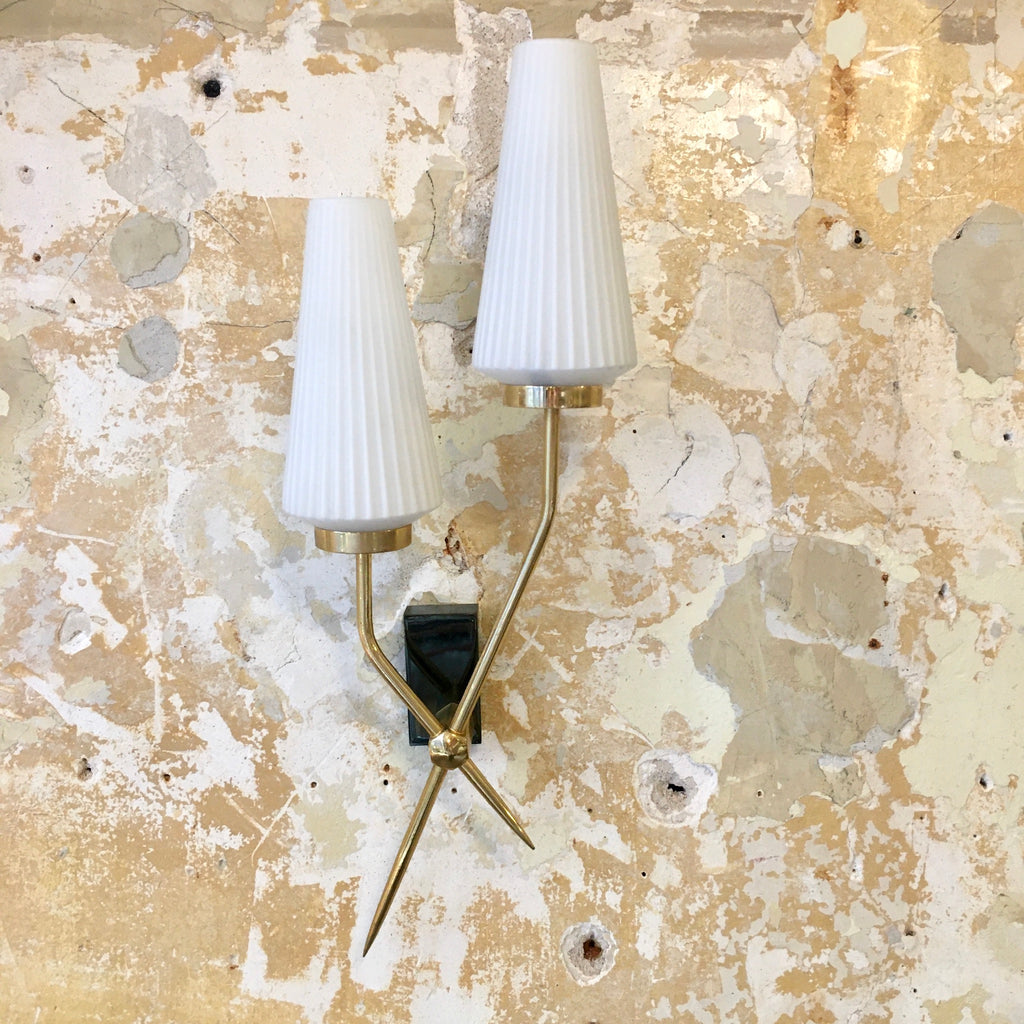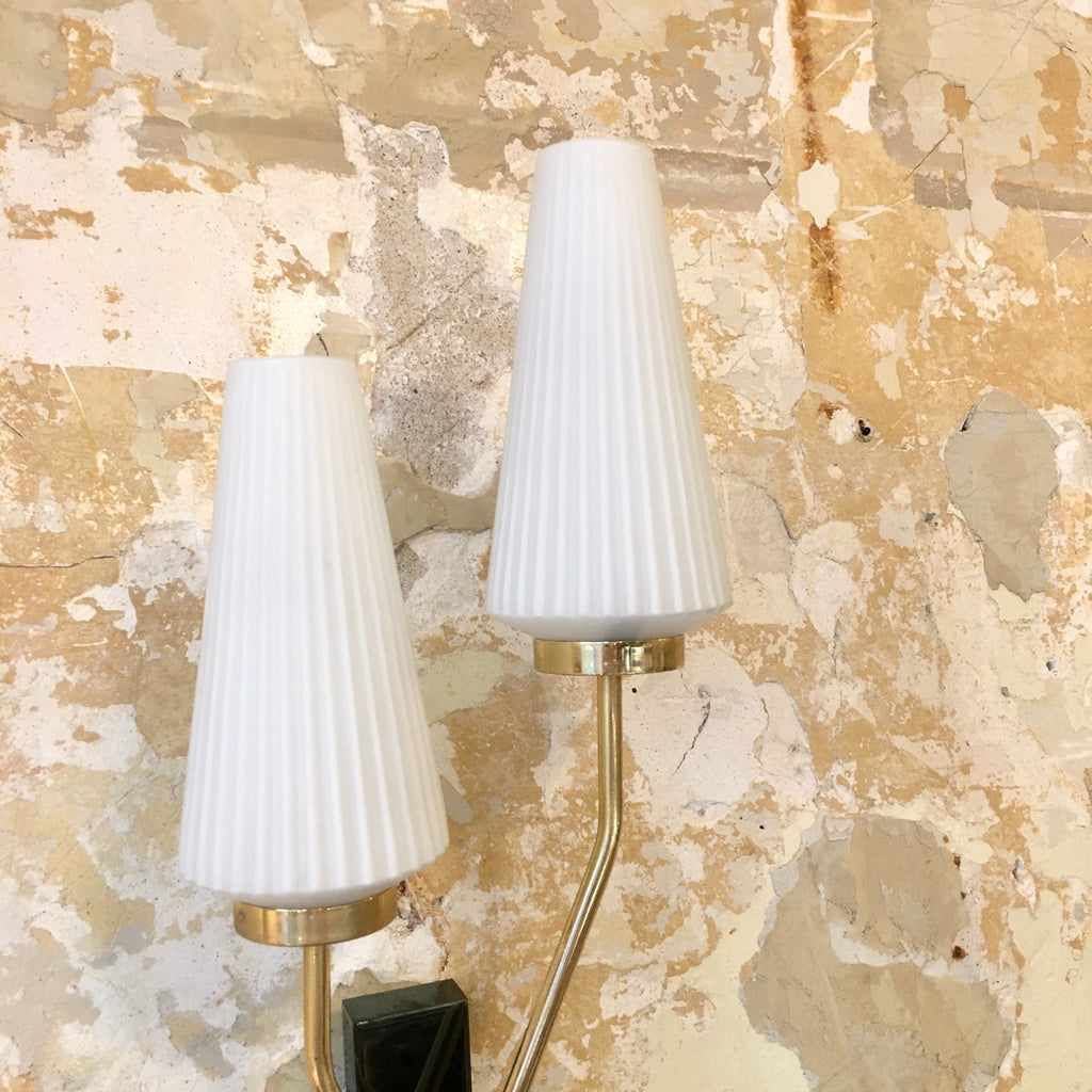 Paire d'appliques vintage opaline