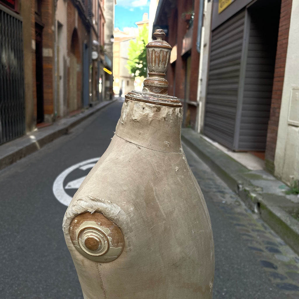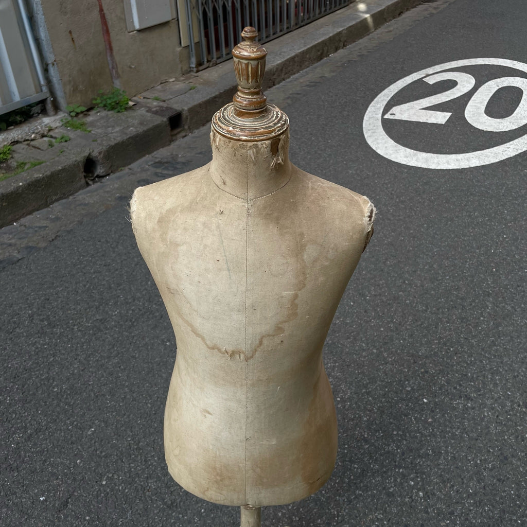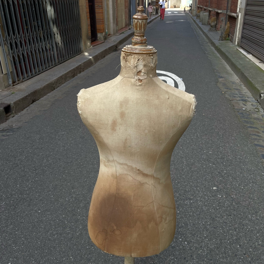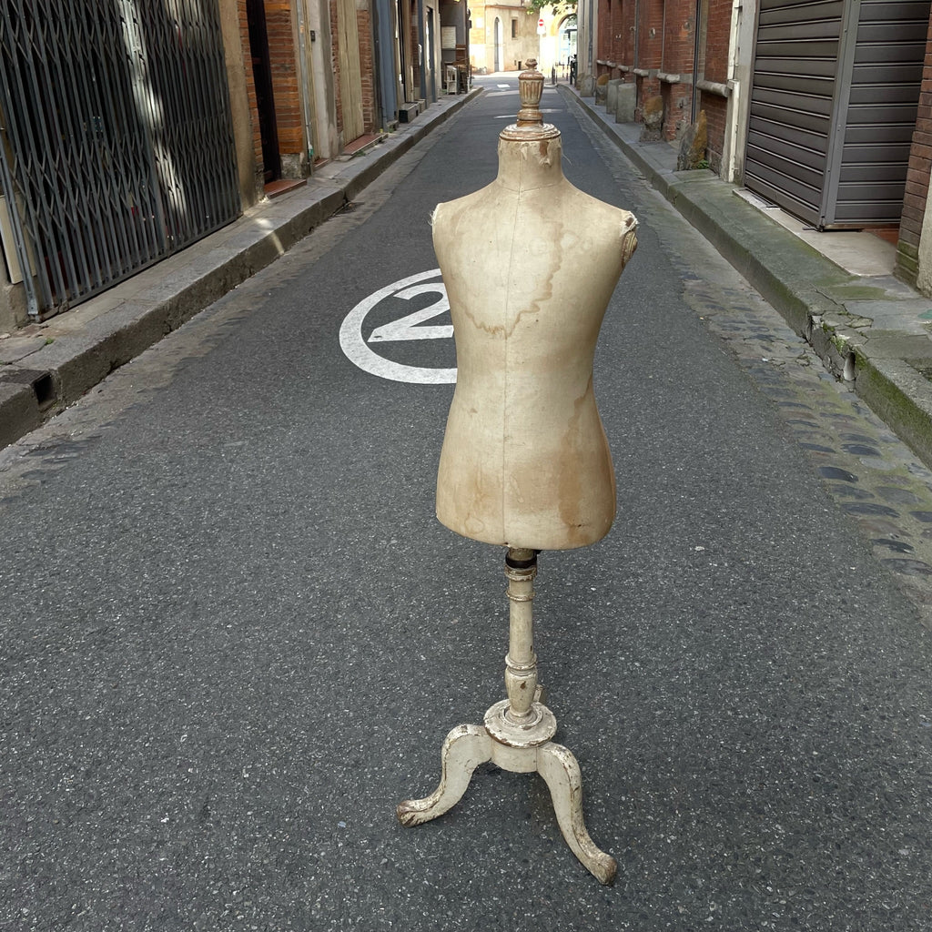 Ancien rare mannequin enfant taille 28 Stockman Siegel Paris. Pied en bois réglable en hauteur de 115 cm à 130 cm environ. Fin XIXe.
