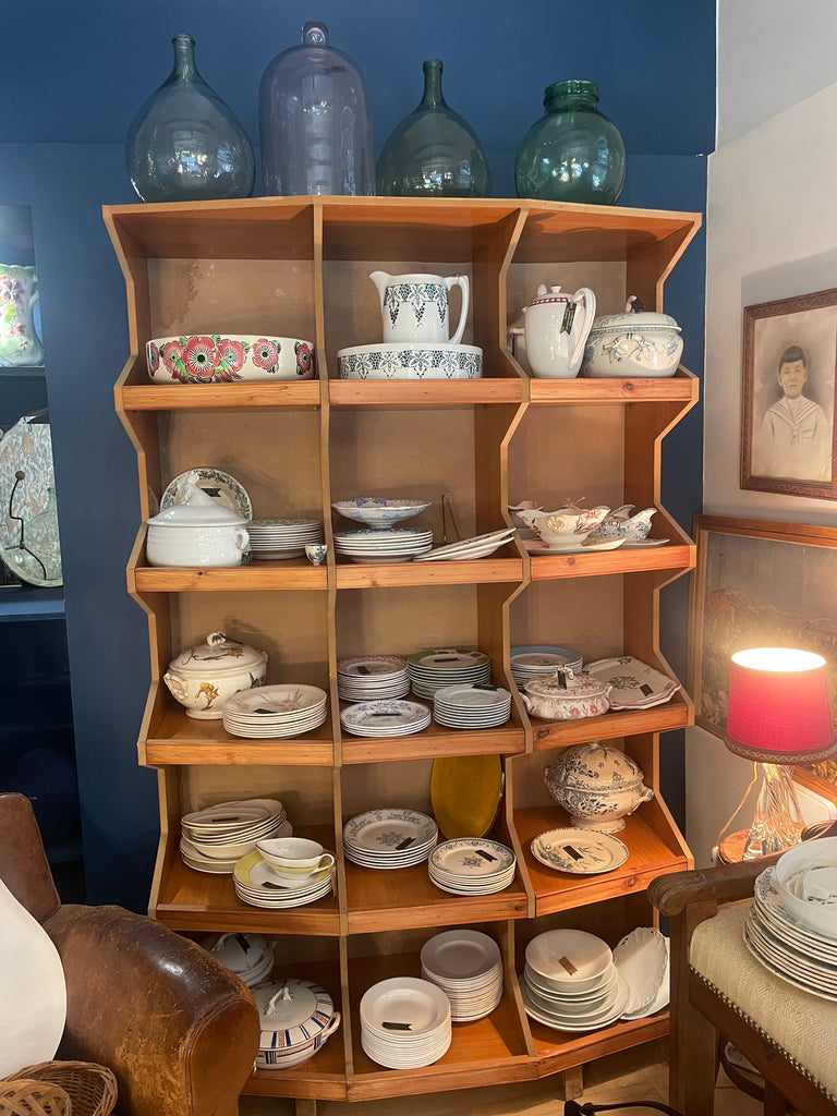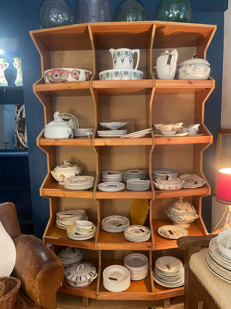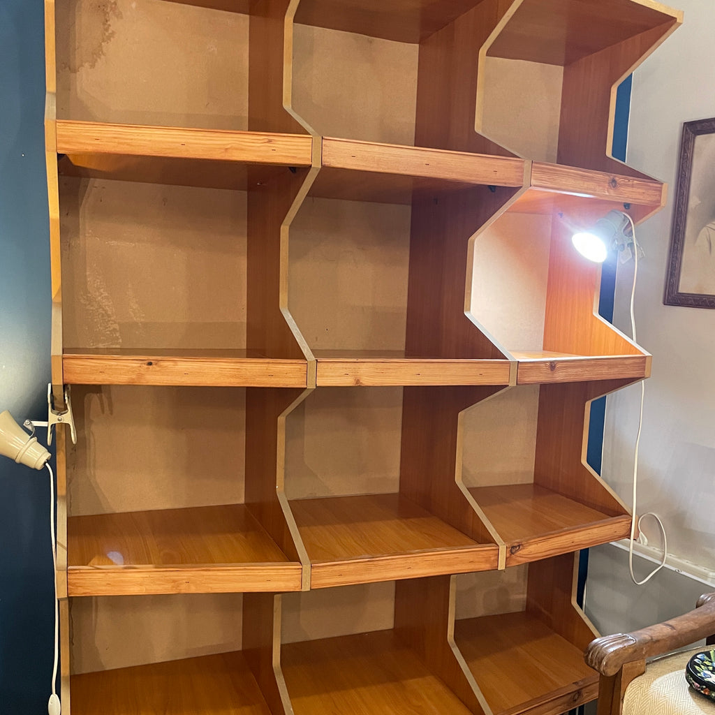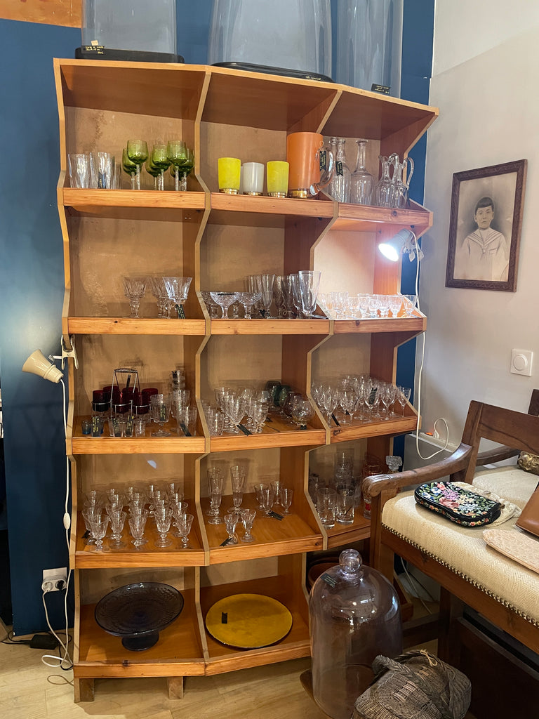 Meuble de métier, de commerce, il est idéal en tant que vaisselier, bibliothèque, pour ranger les vinyles ou pour une boutique. Sa forme originale avec un effet fish-eye le rend très intéressant. Robuste et finalement peu encombrant au sol, il détient une très grande capacité de rangement.
