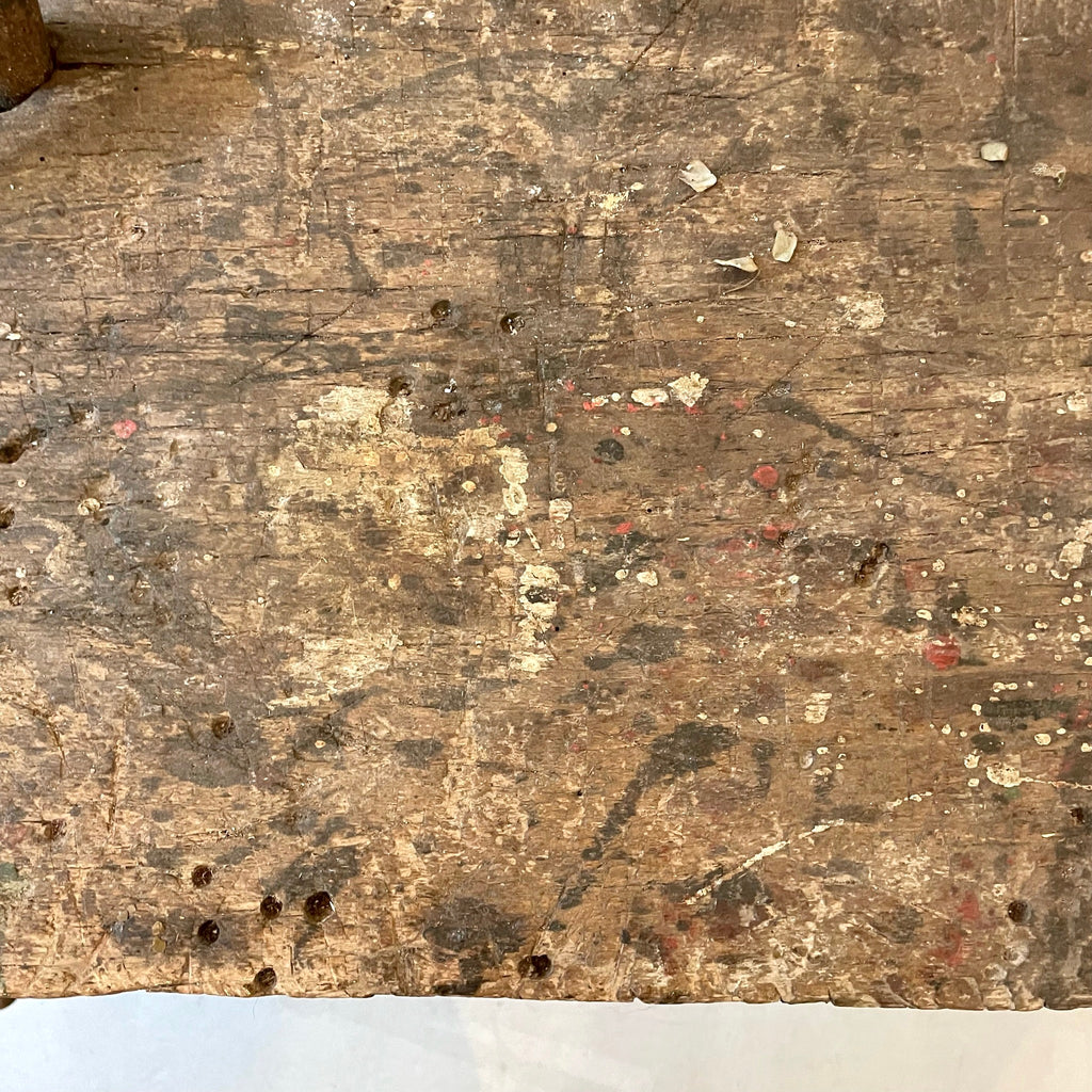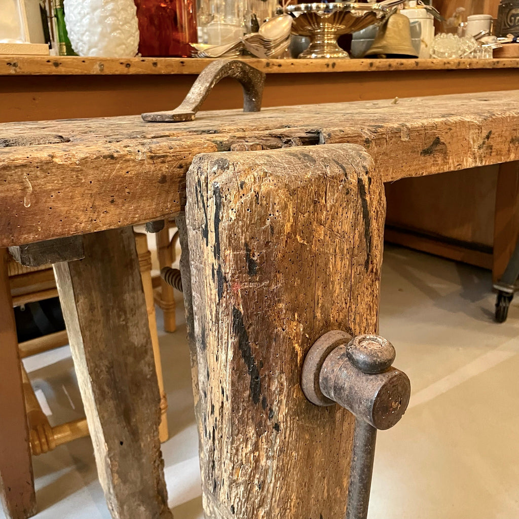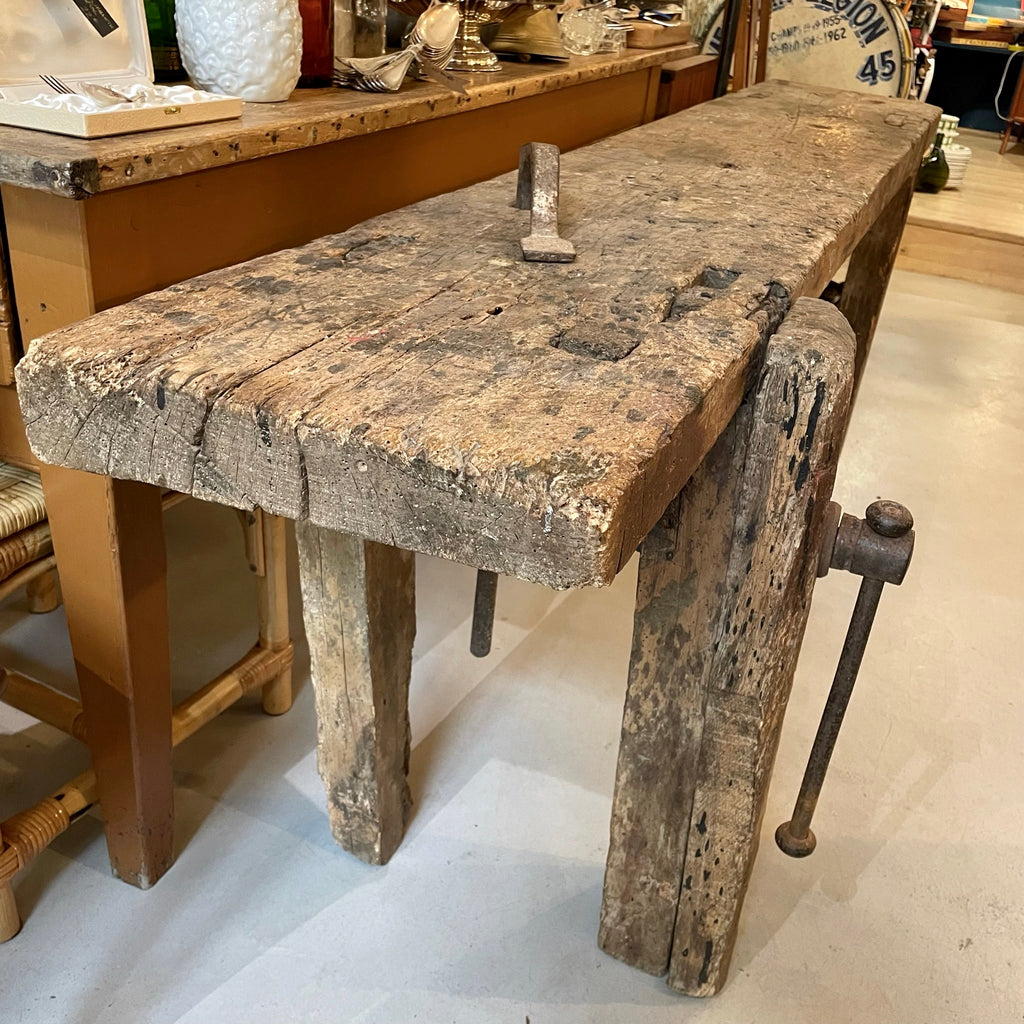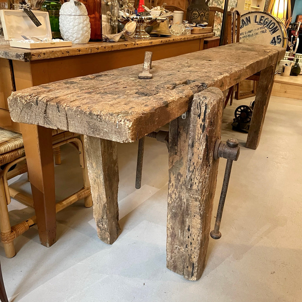 Magnifique établi en chêne massif. Dans son jus, belle patine.
