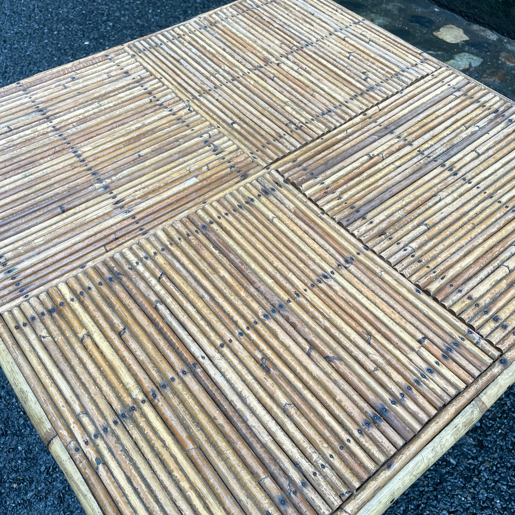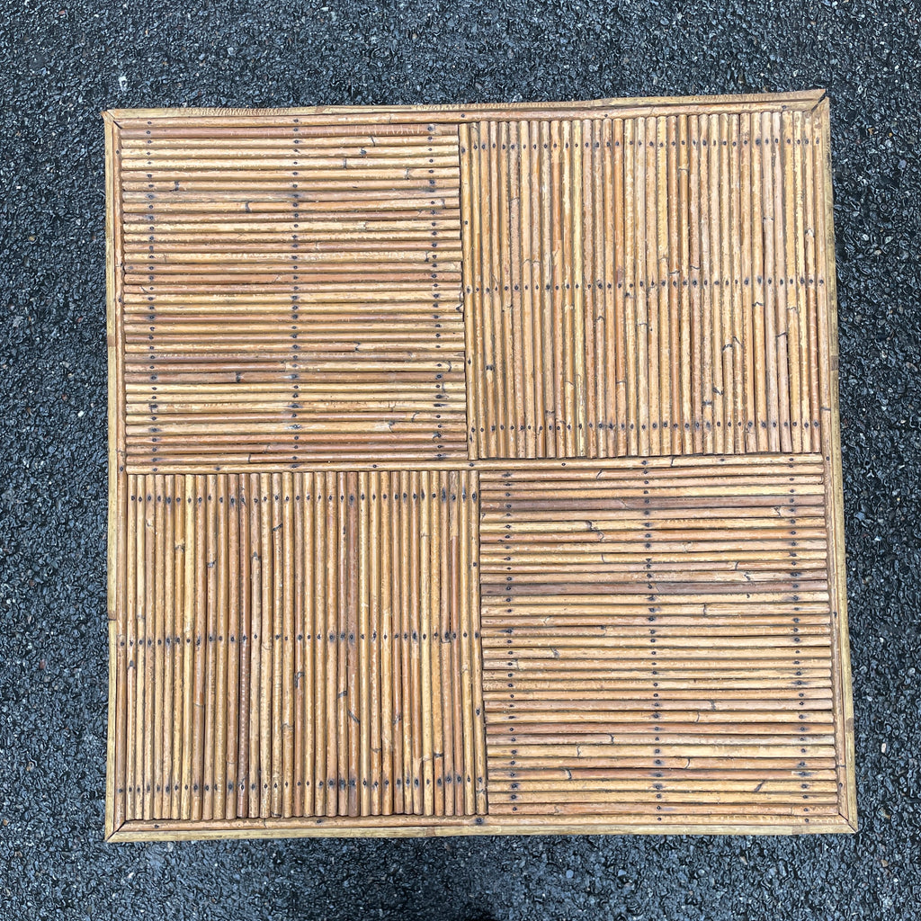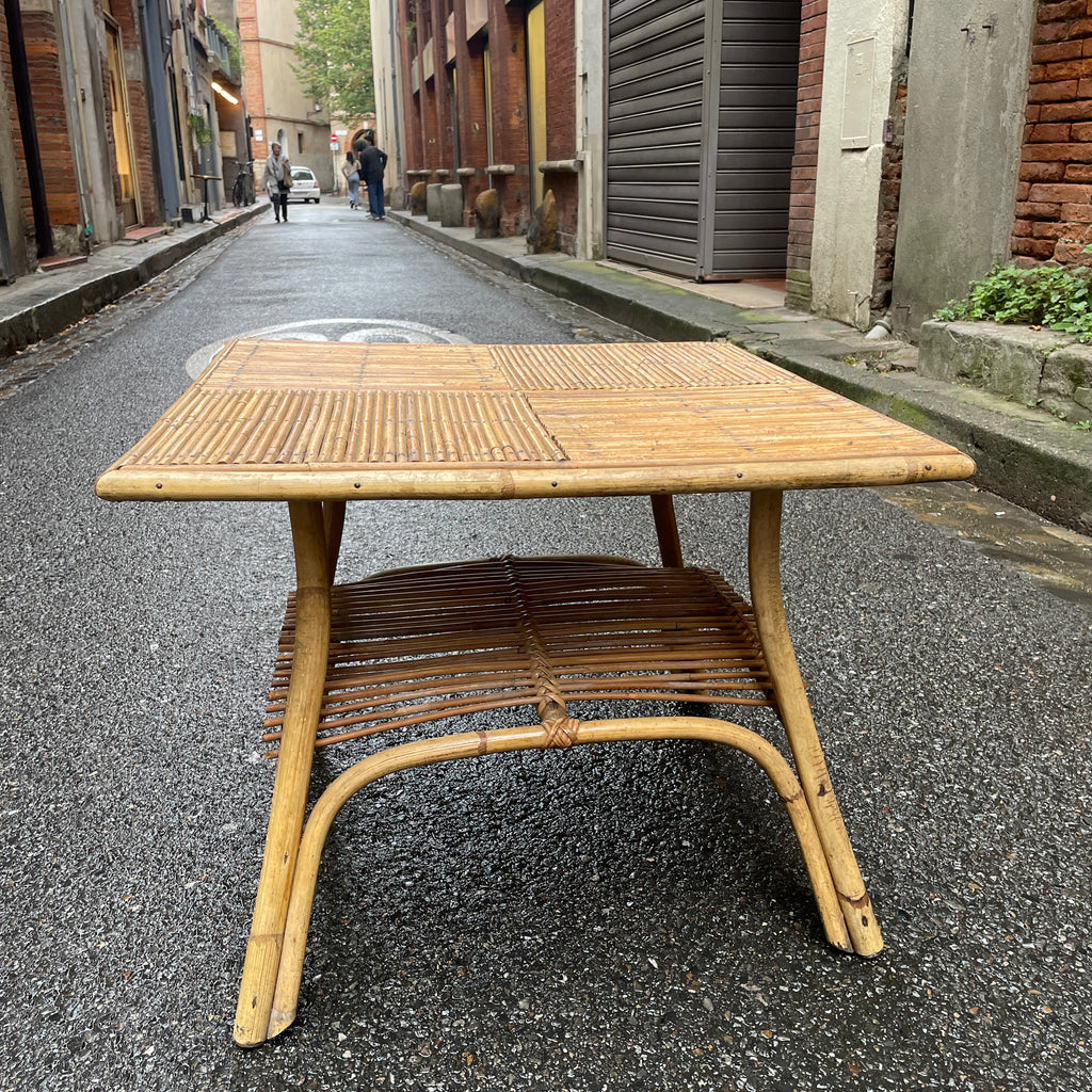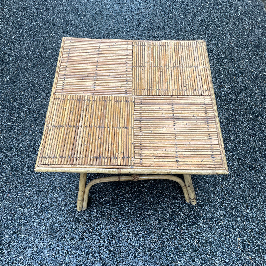 / Table basse vintage en rotin et bambou fendu, années 60