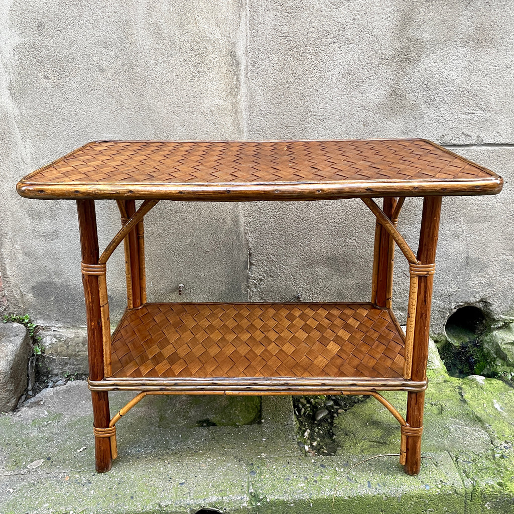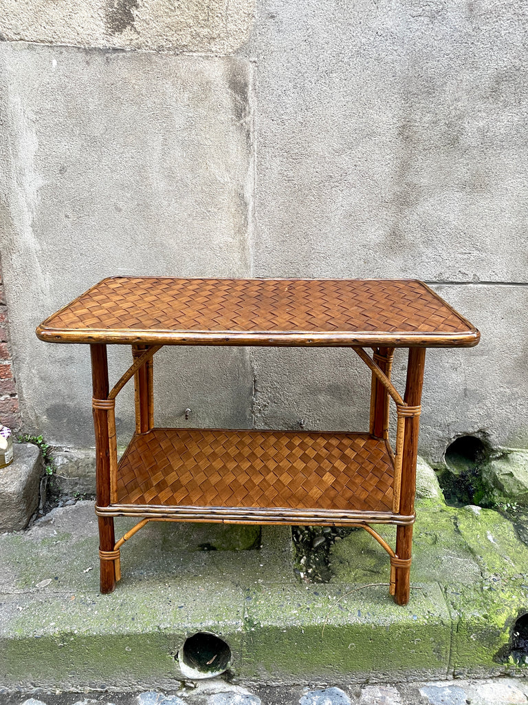 / Table d'appoint double plateaux en rotin et châtaignier tressé