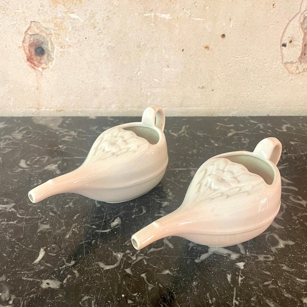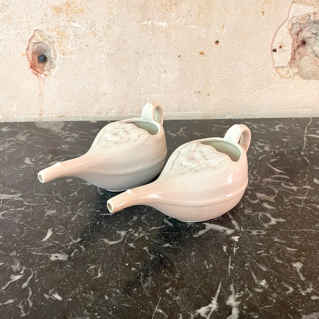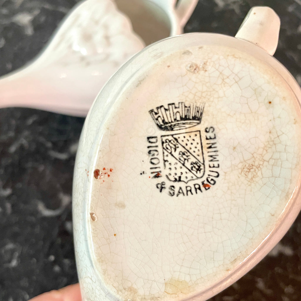 Canard de malade qui servait à donner soupe, sirop, décoction, potion aux malades qui devaient rester allongés. Estampillés Digoin Sarreguemines.