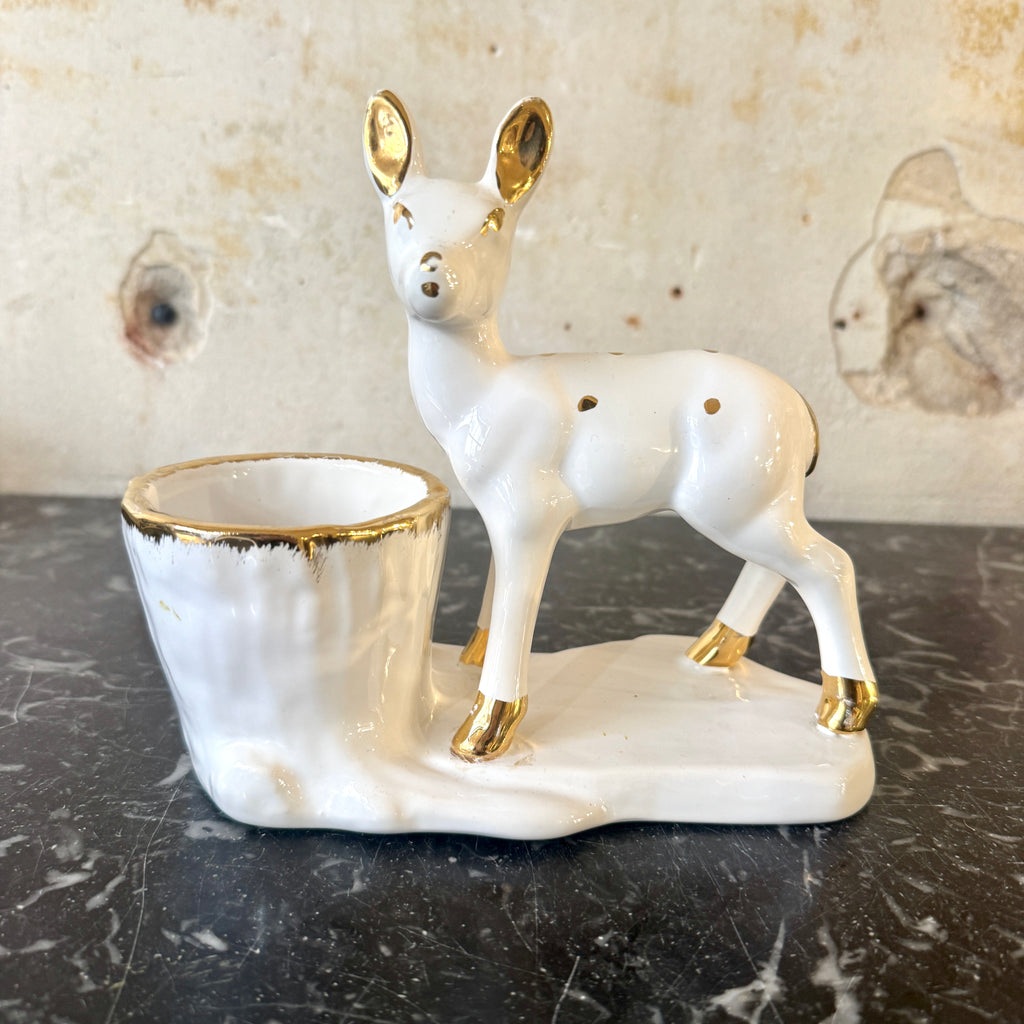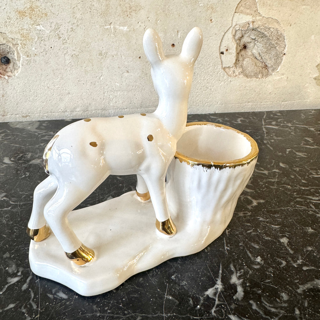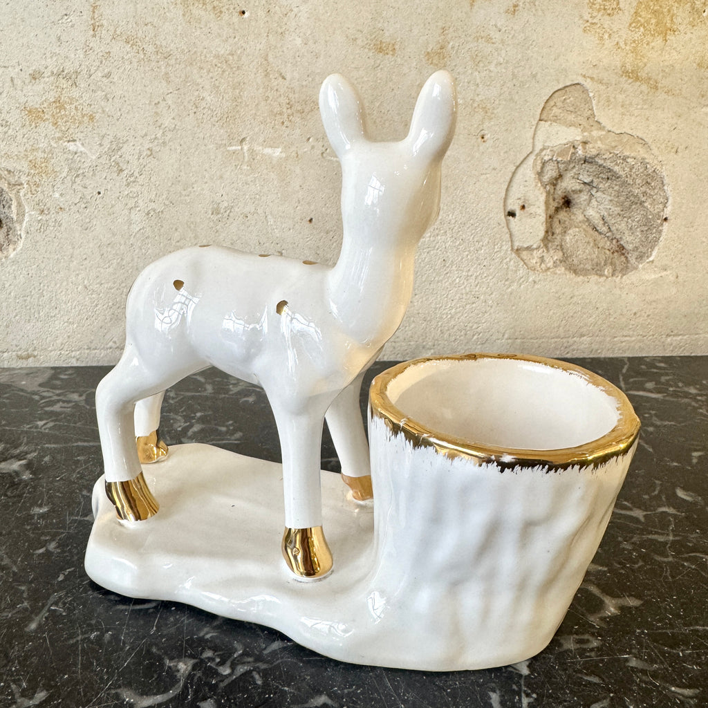 / Grande biche en céramique blanche et dorée Vallauris années 50/60