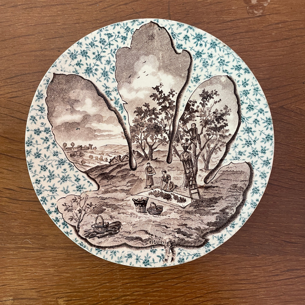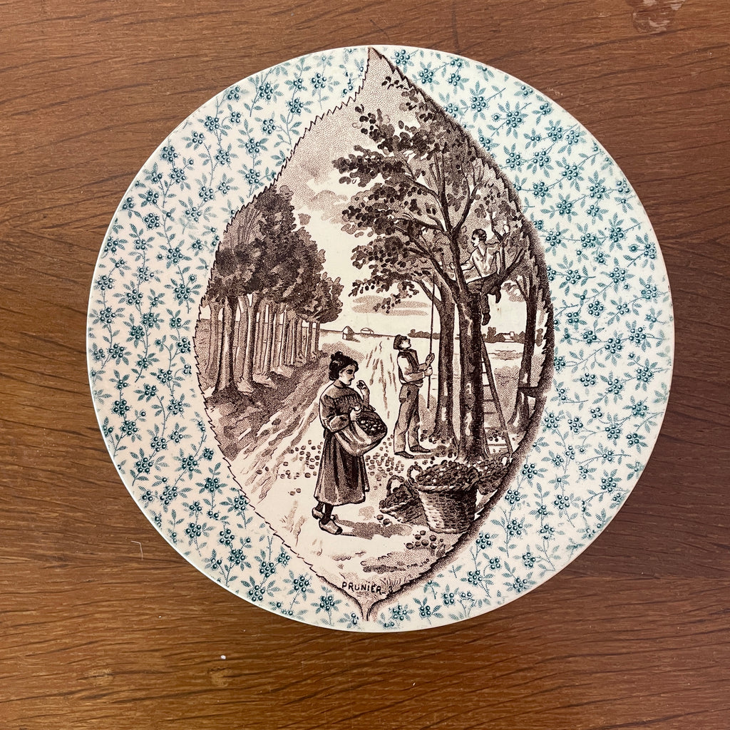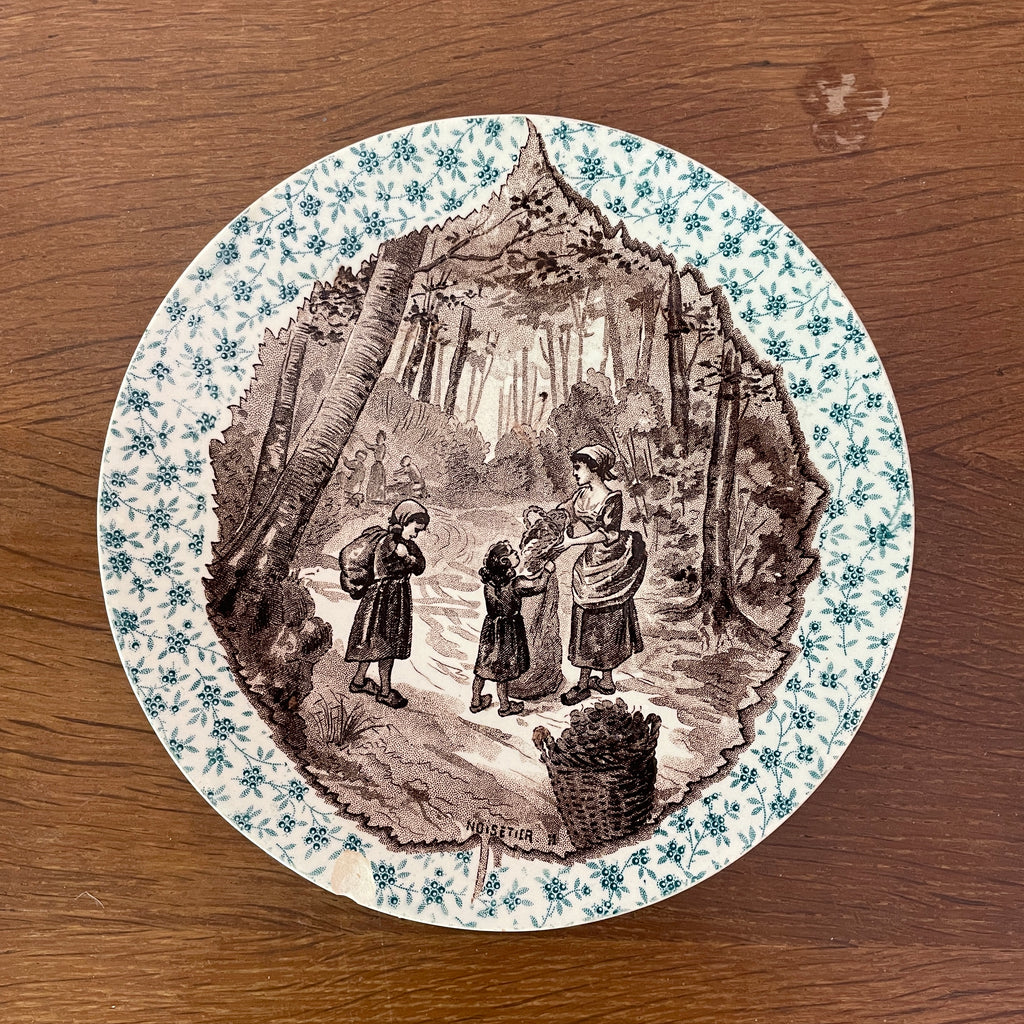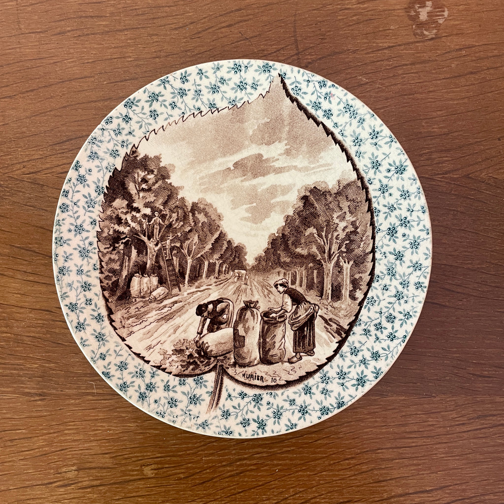 / Lot de 12 assiettes parlantes Sarreguemines sur le thème des arbres et feuilles