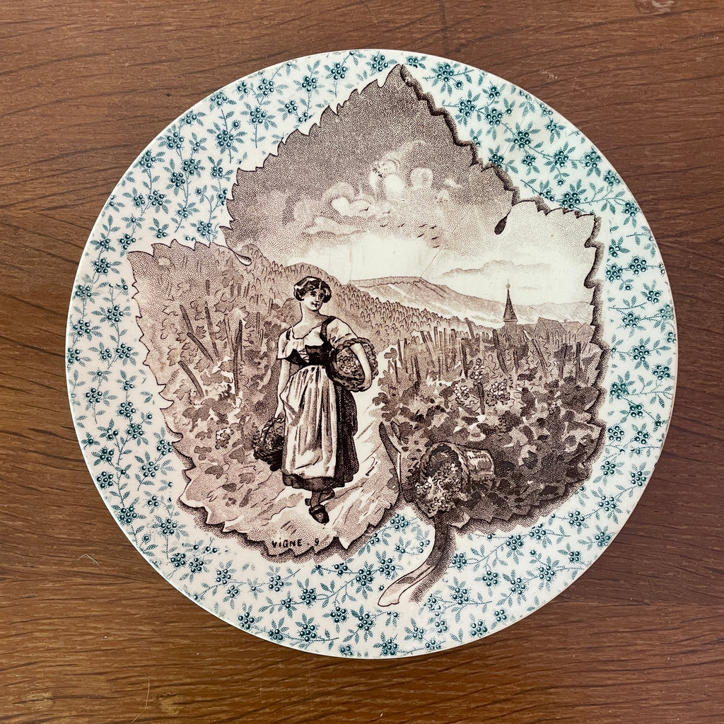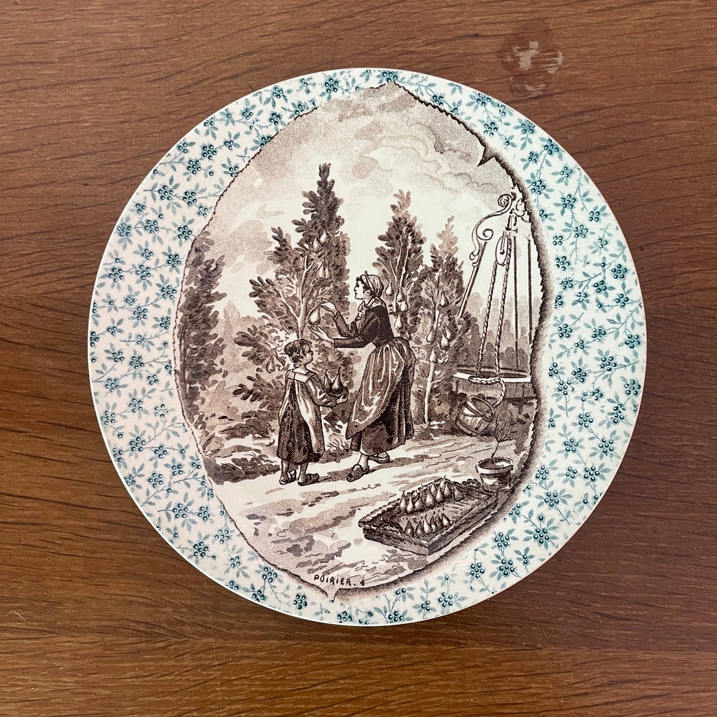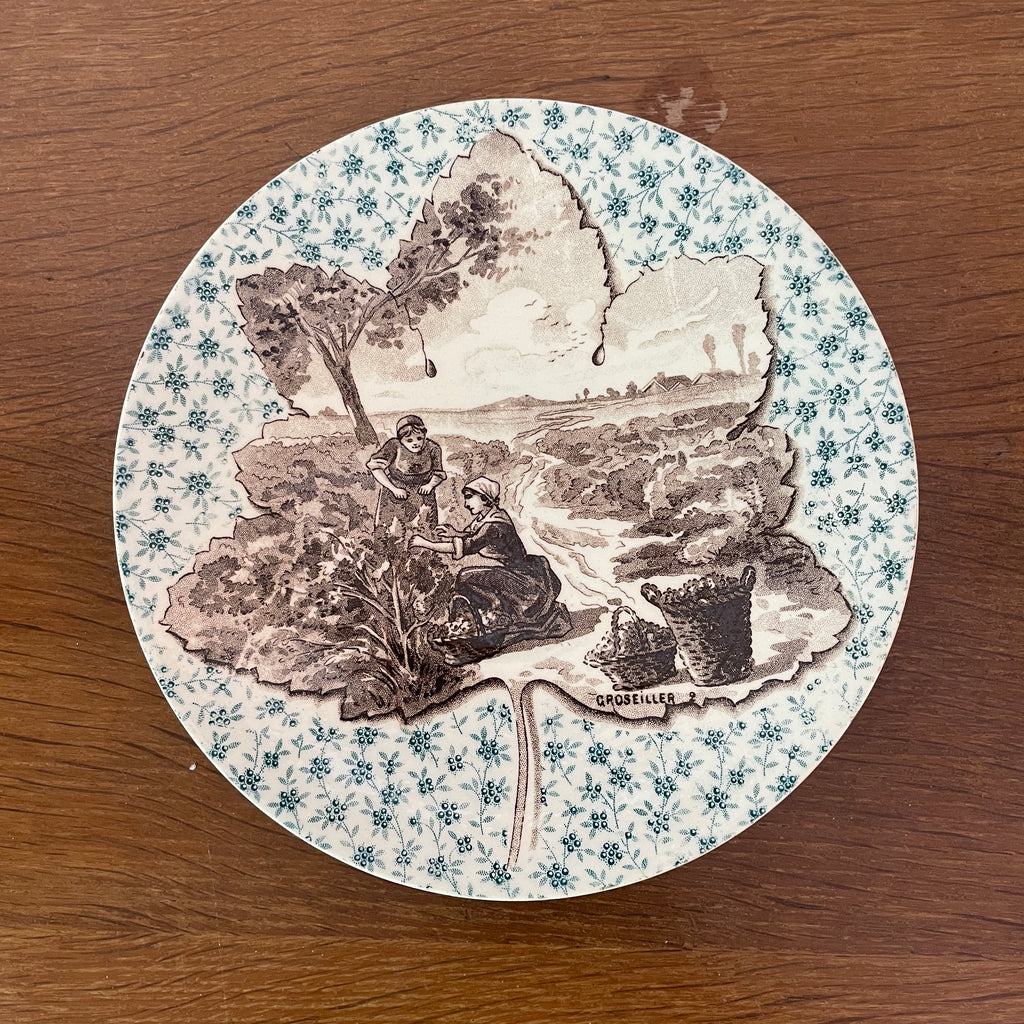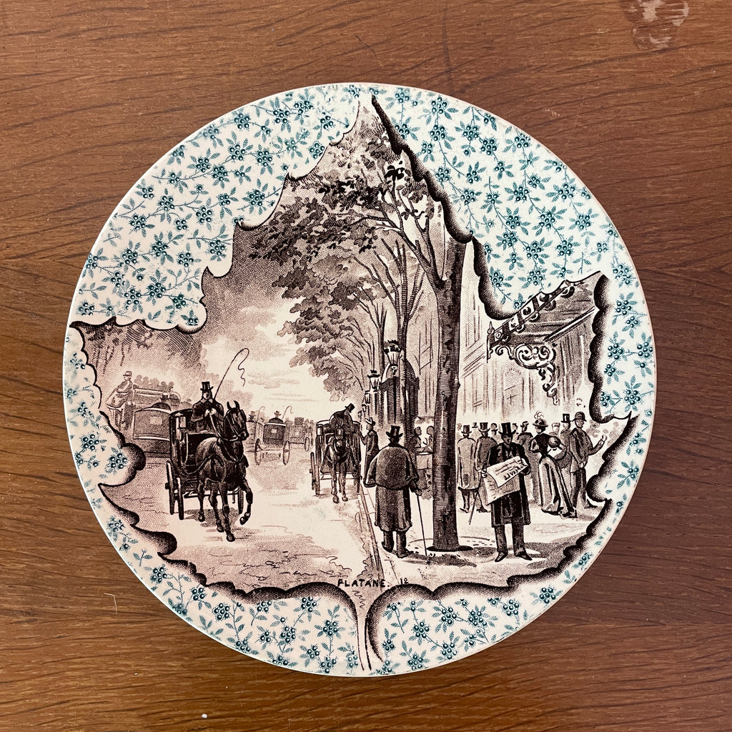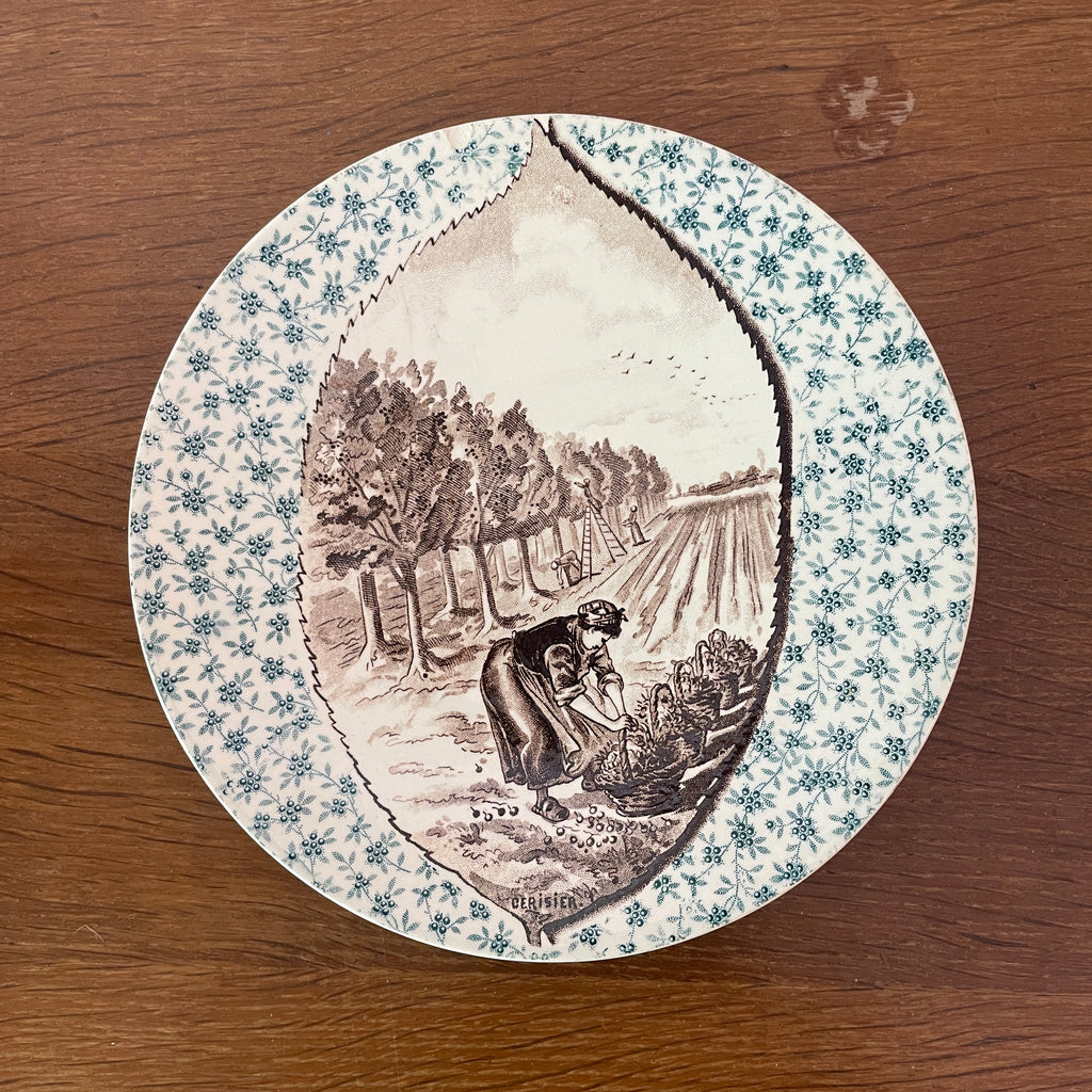 / Lot de 12 assiettes parlantes Sarreguemines sur le thème des arbres et feuilles