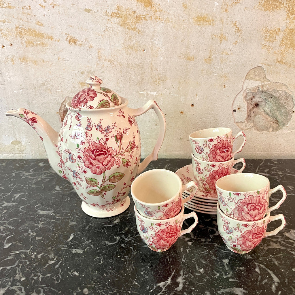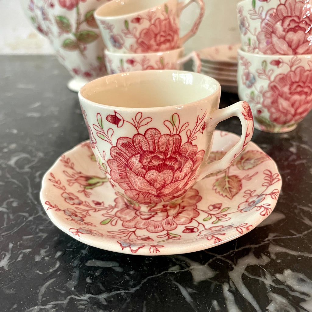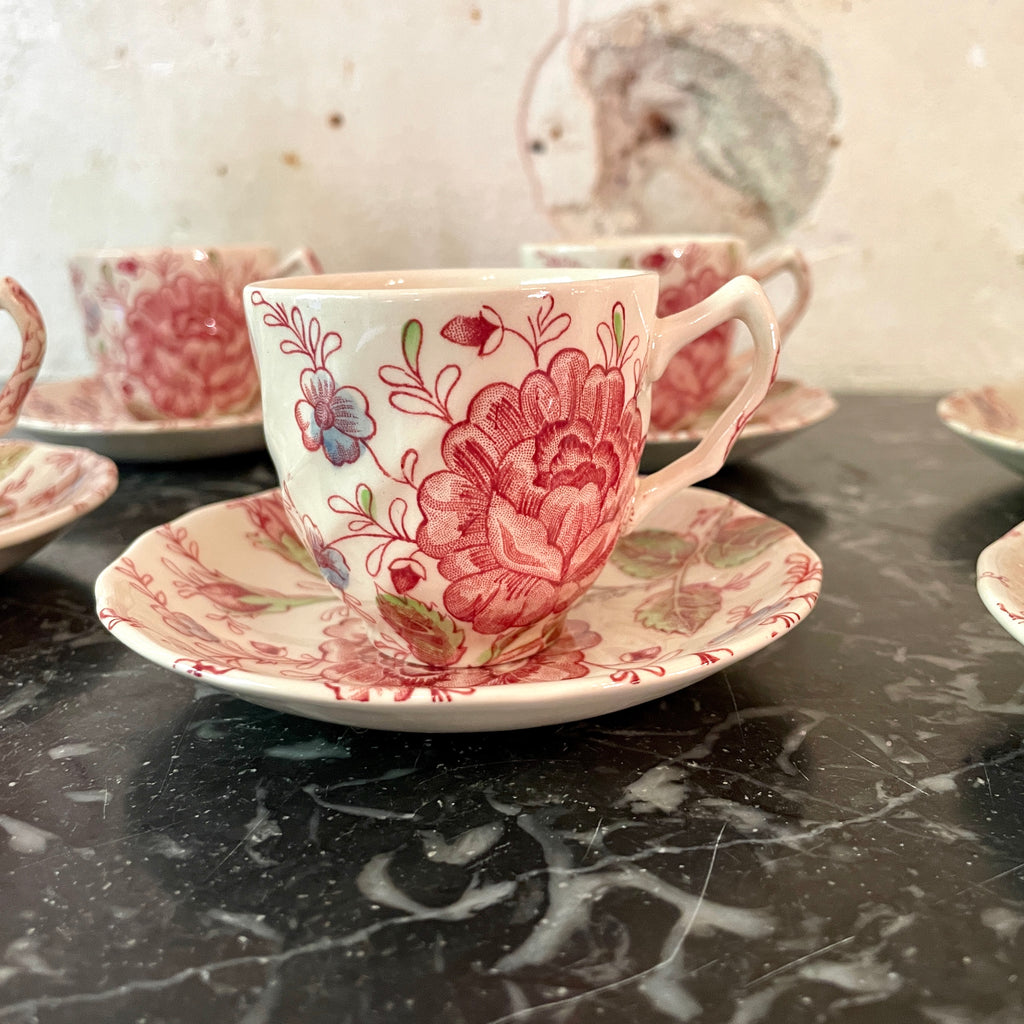 / Lot de 6 tasses à café et sous-tasses Johnson Bros Rose Chintz