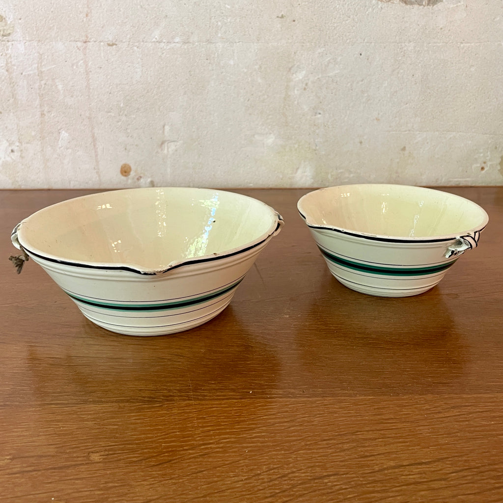 Lot de 2 saladiers en faïence ancienne avec bec verseur