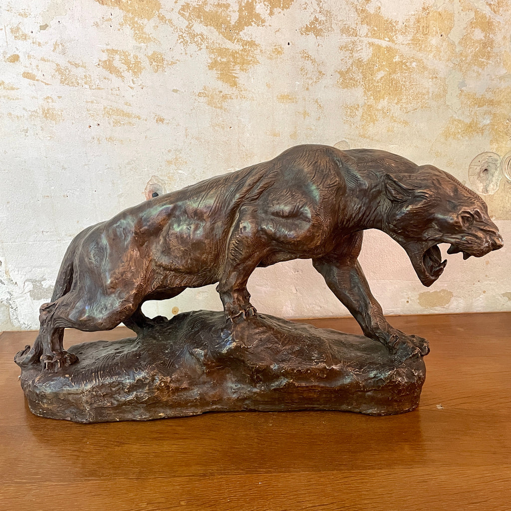 / Sculpture Panthère rugissante Terre cuite signée Thomas Cartier (1879-1943)