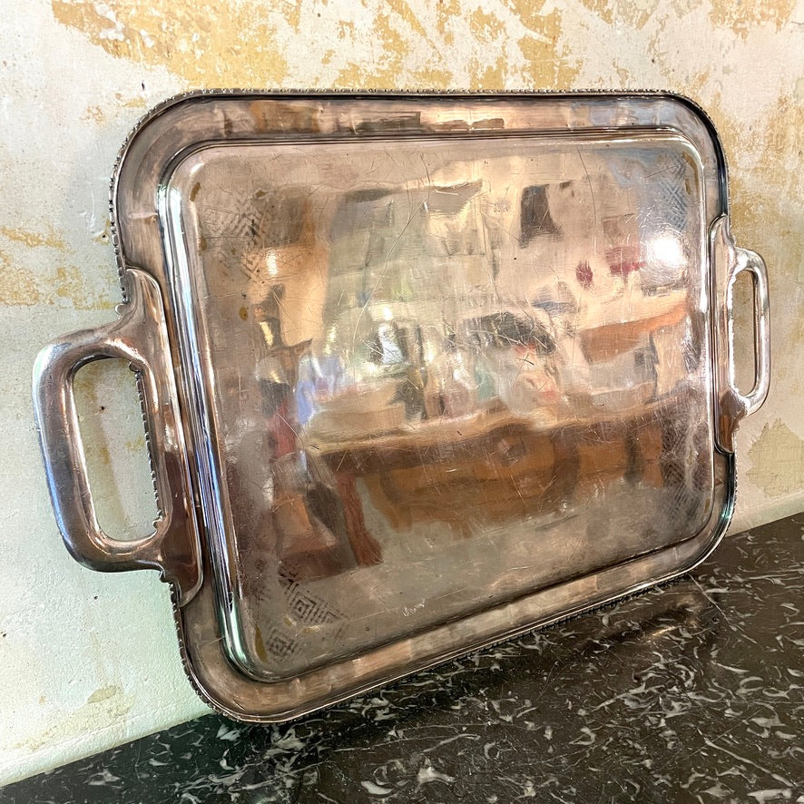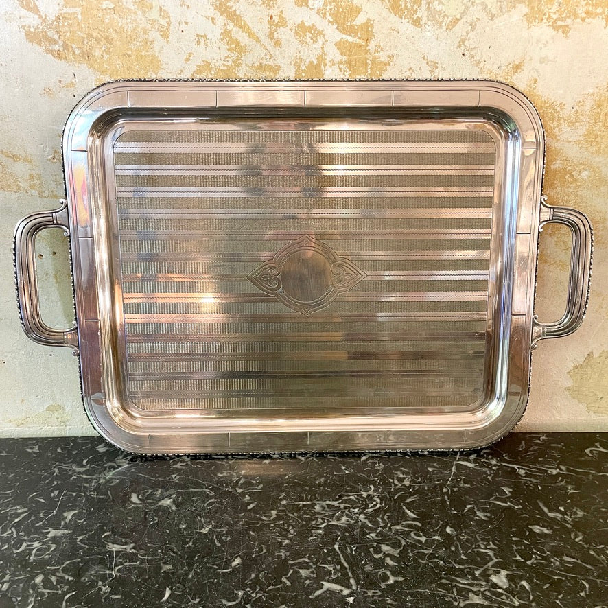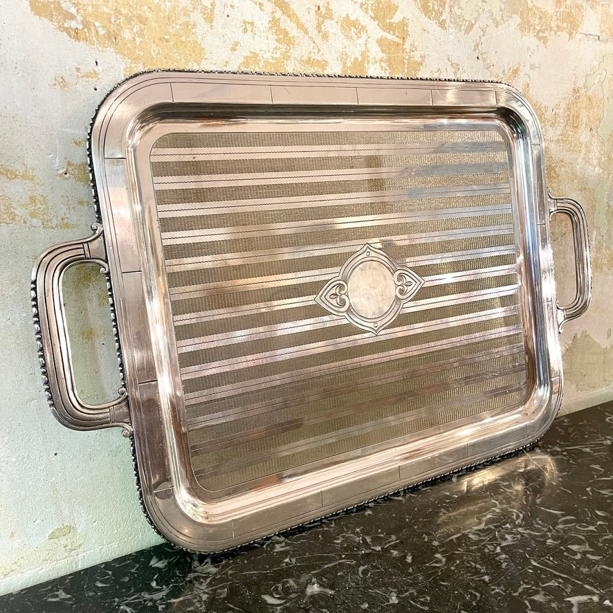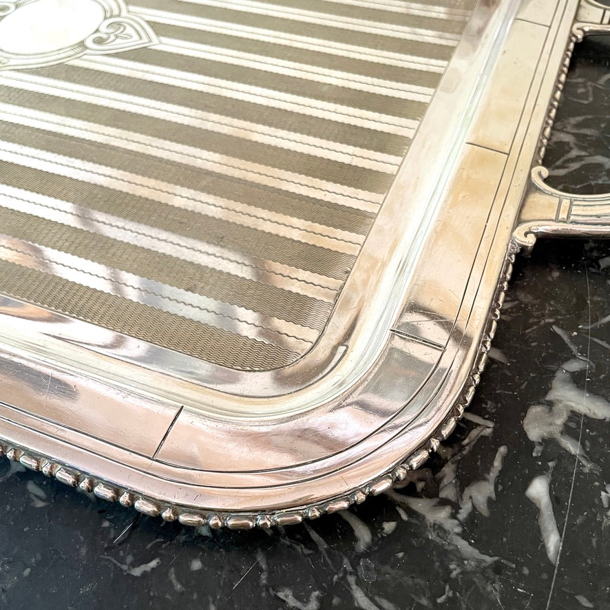 / Très grand plateau en métal argenté Bouillet Bourdelle, années 20