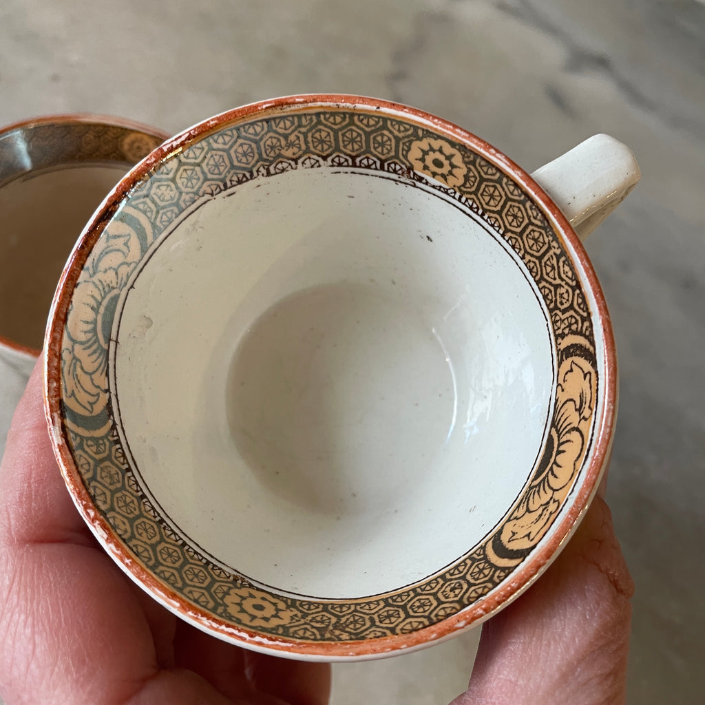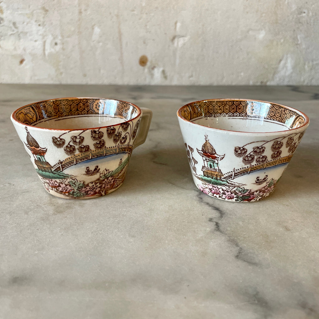 / Paire de tasses à thé en faïence Badonviller modèle Tokio