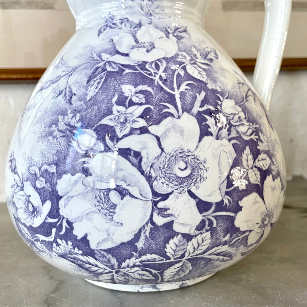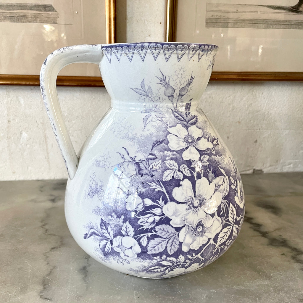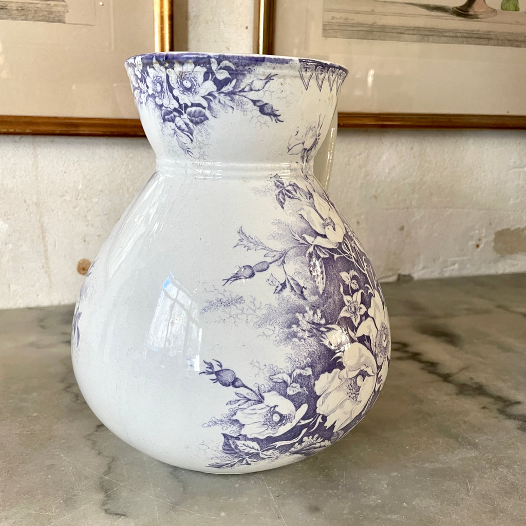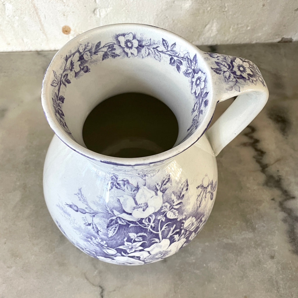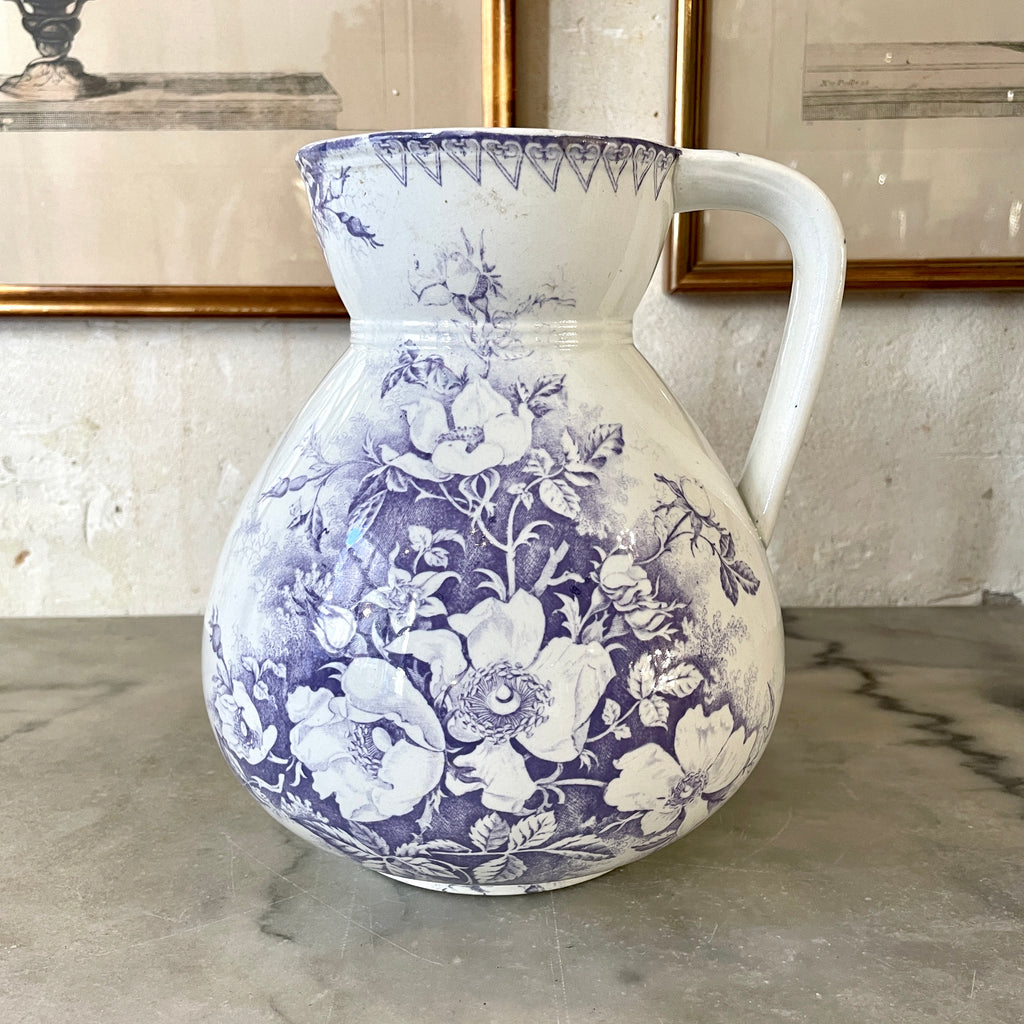 / Broc de toilette en faïence fleurs violettes KG Lunéville