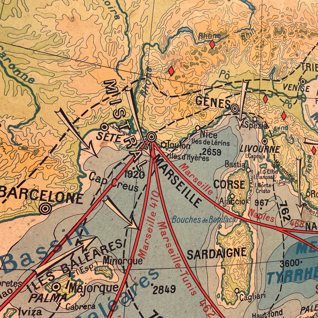 Carte géographique Océans et Mer - Méditerranée Collection Jean Brunhes