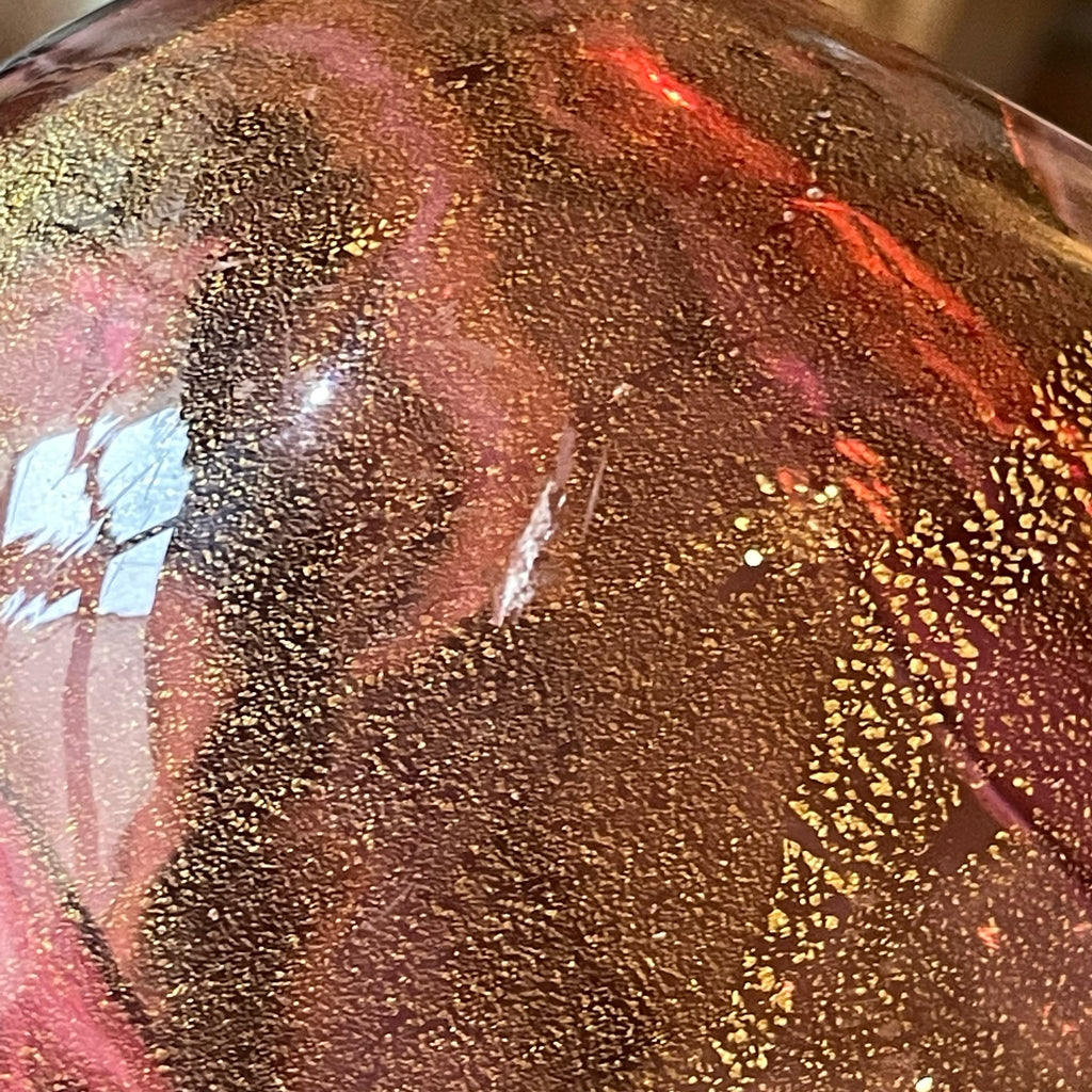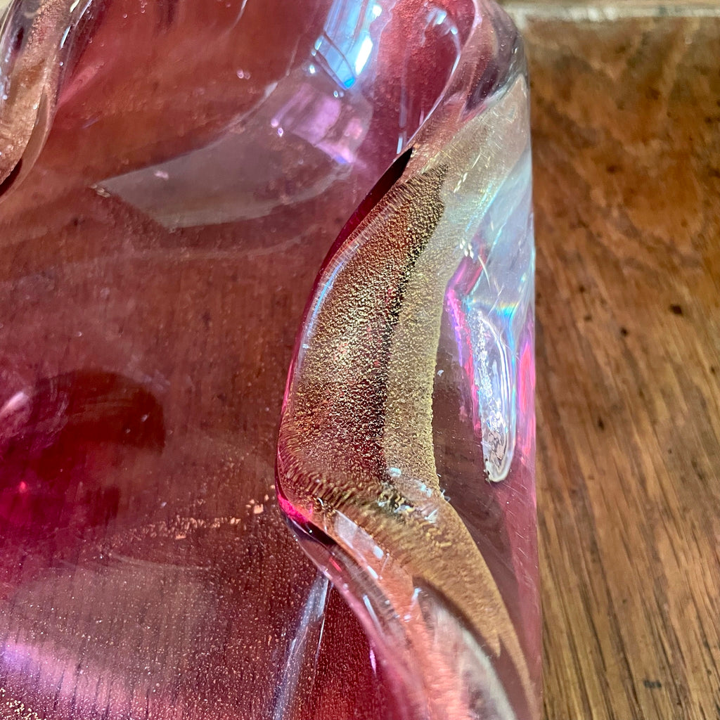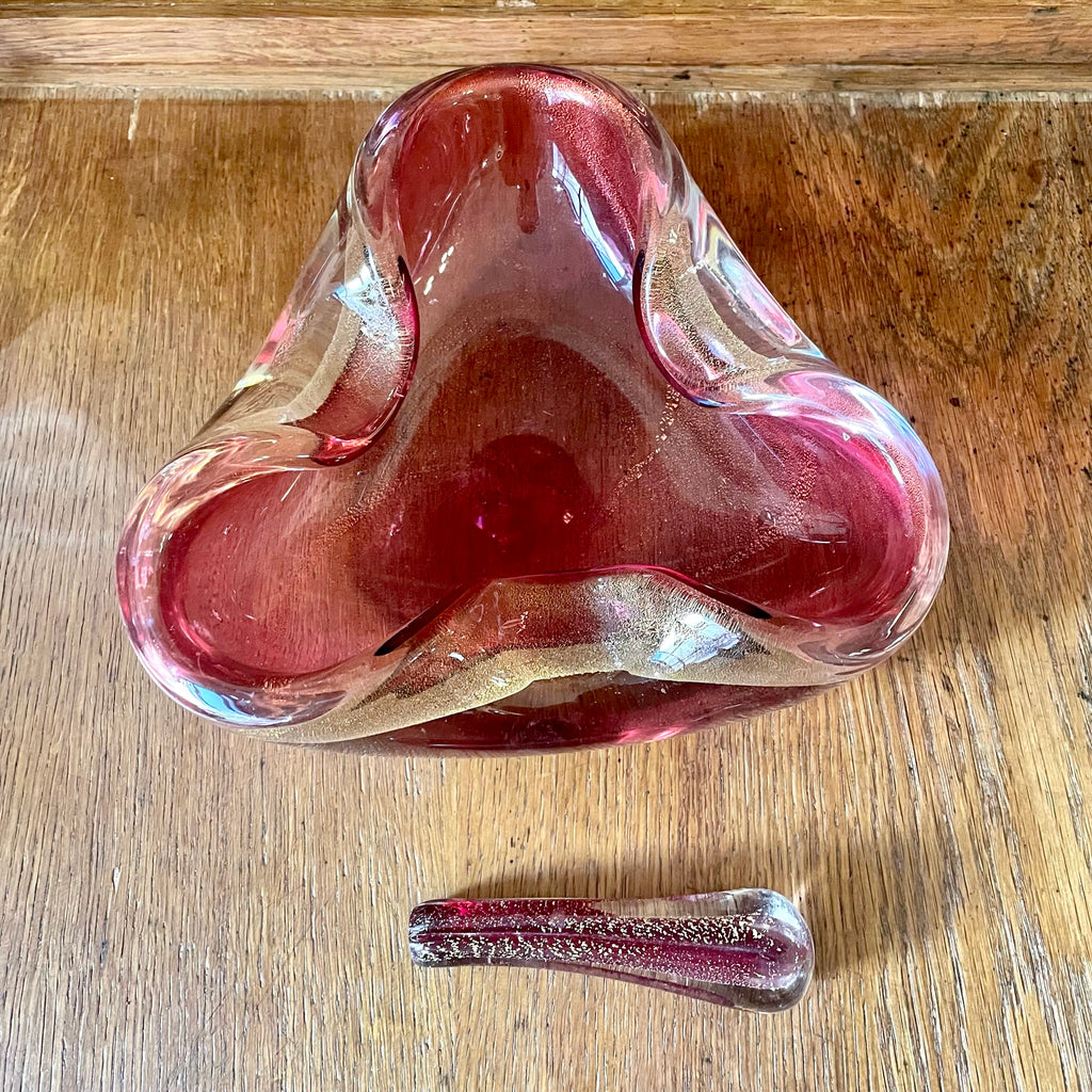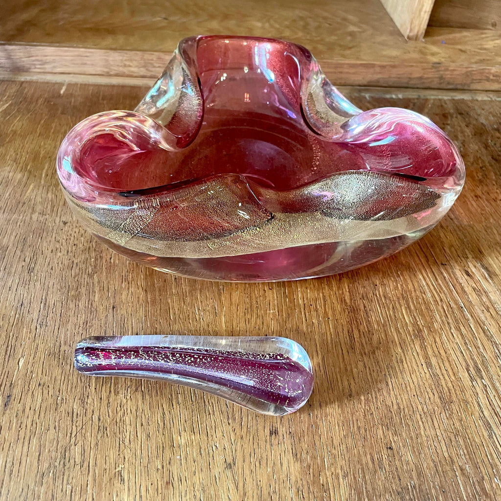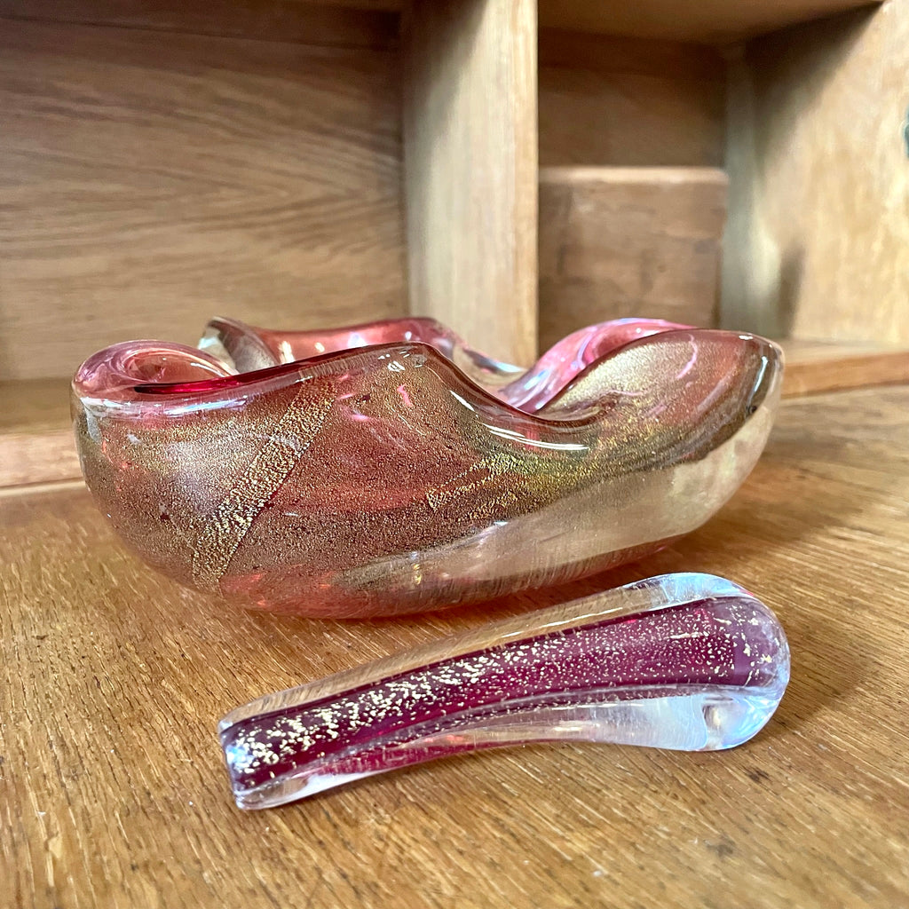Cendrier en verre de Murano avec pilon dans de jolies teintes roses et dorées