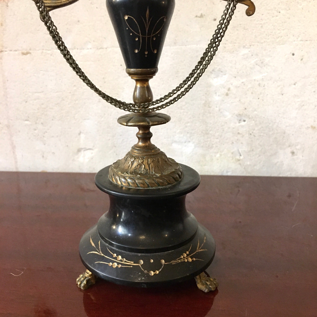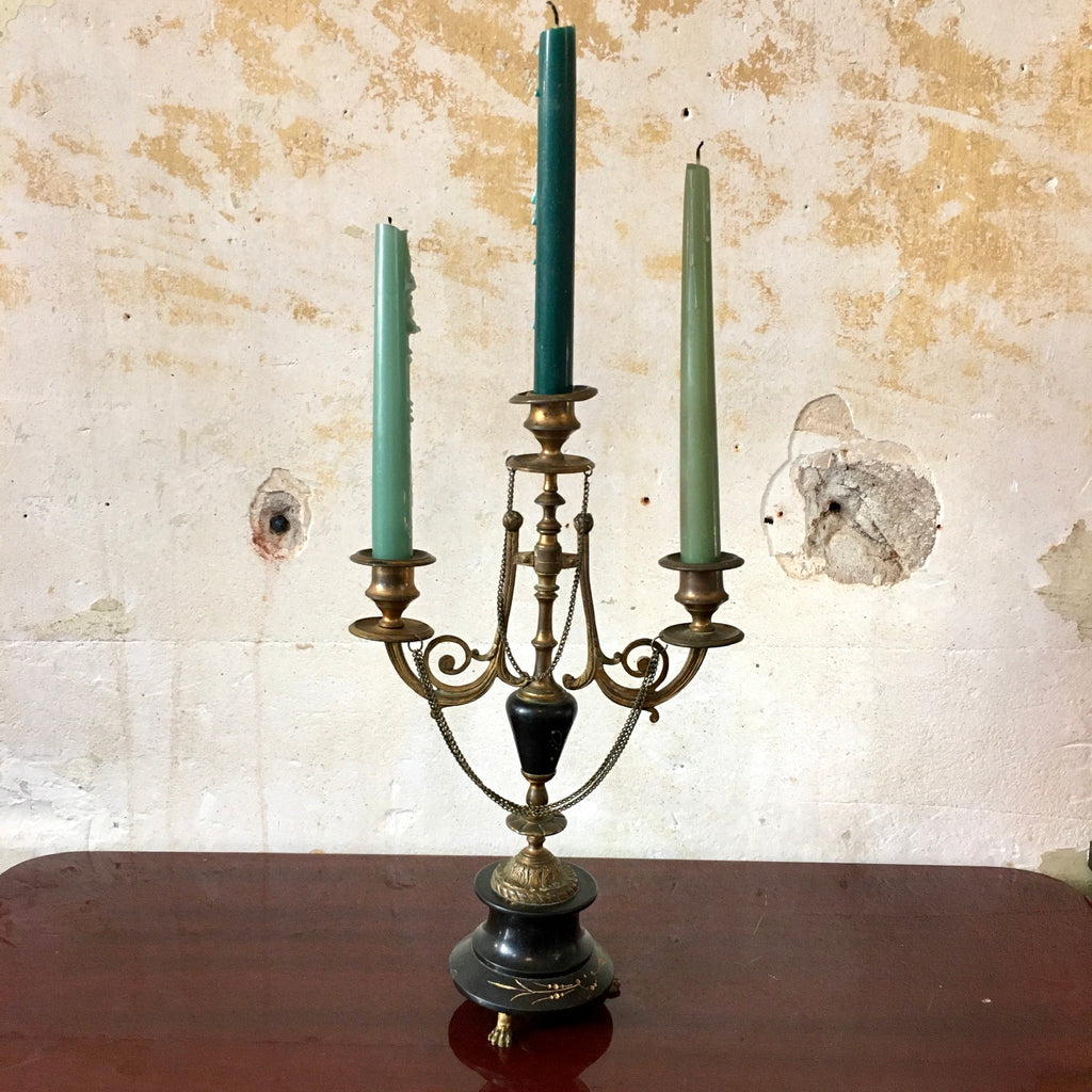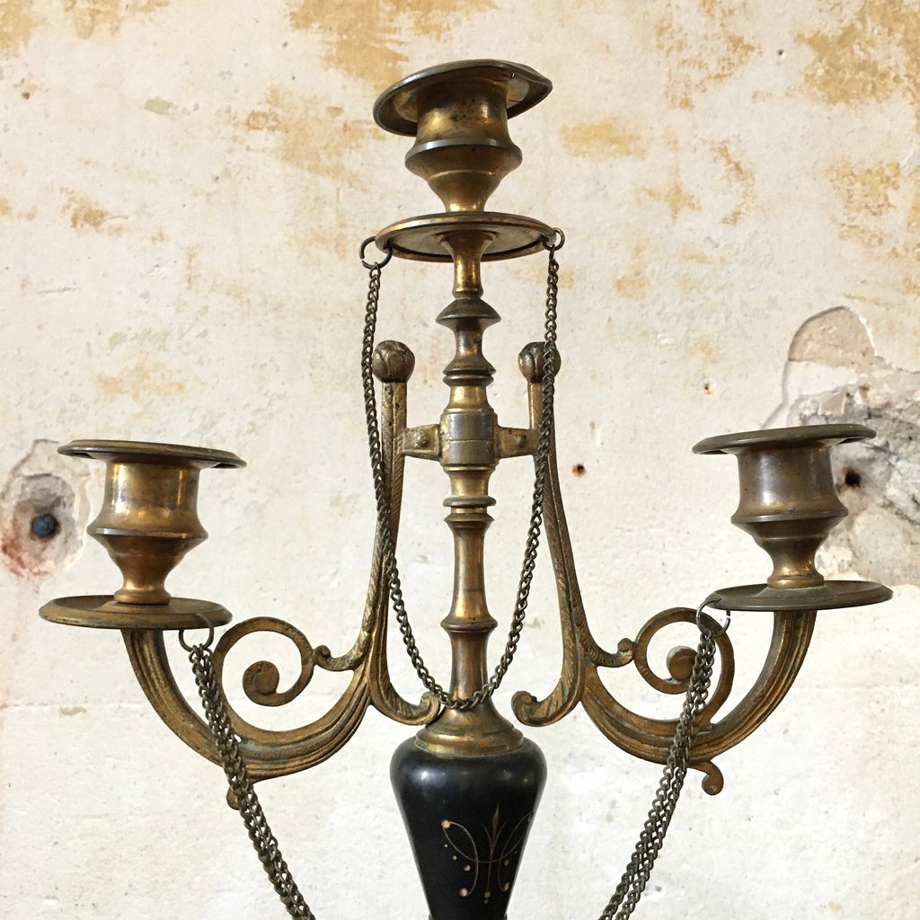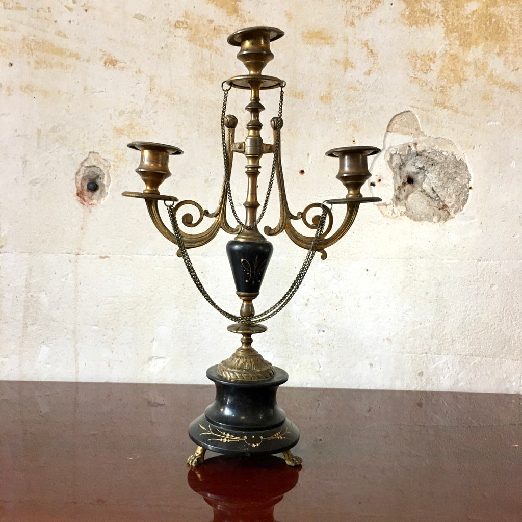Très joli chandelier ou candélabre Napoléon III à 3 branches bronze et marbre noir.