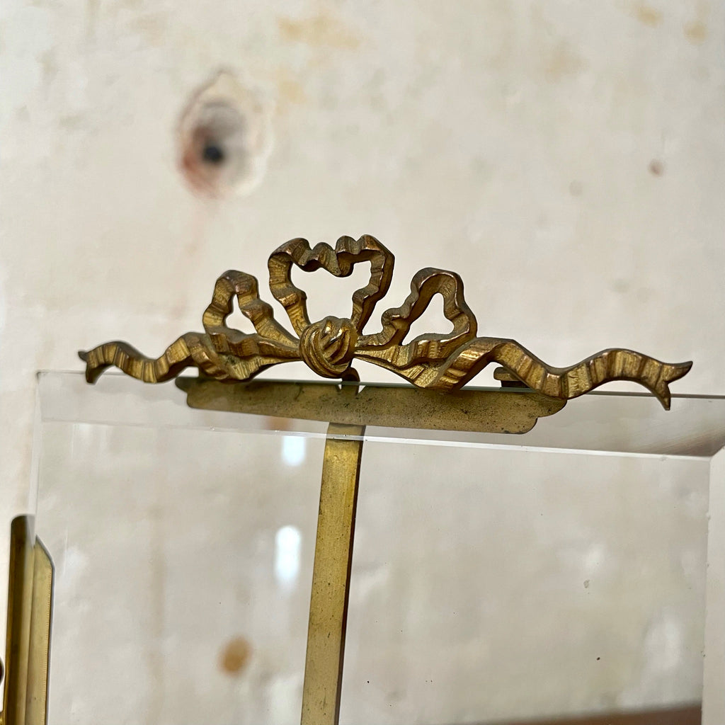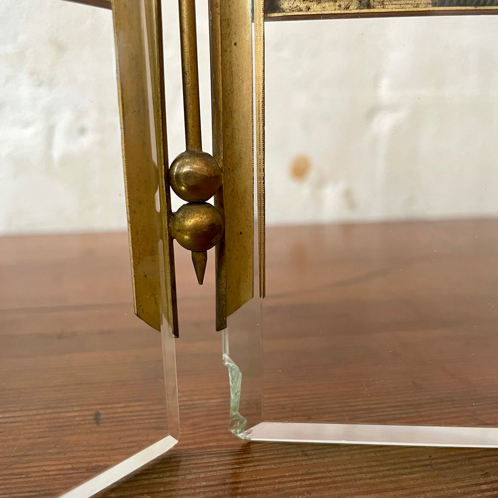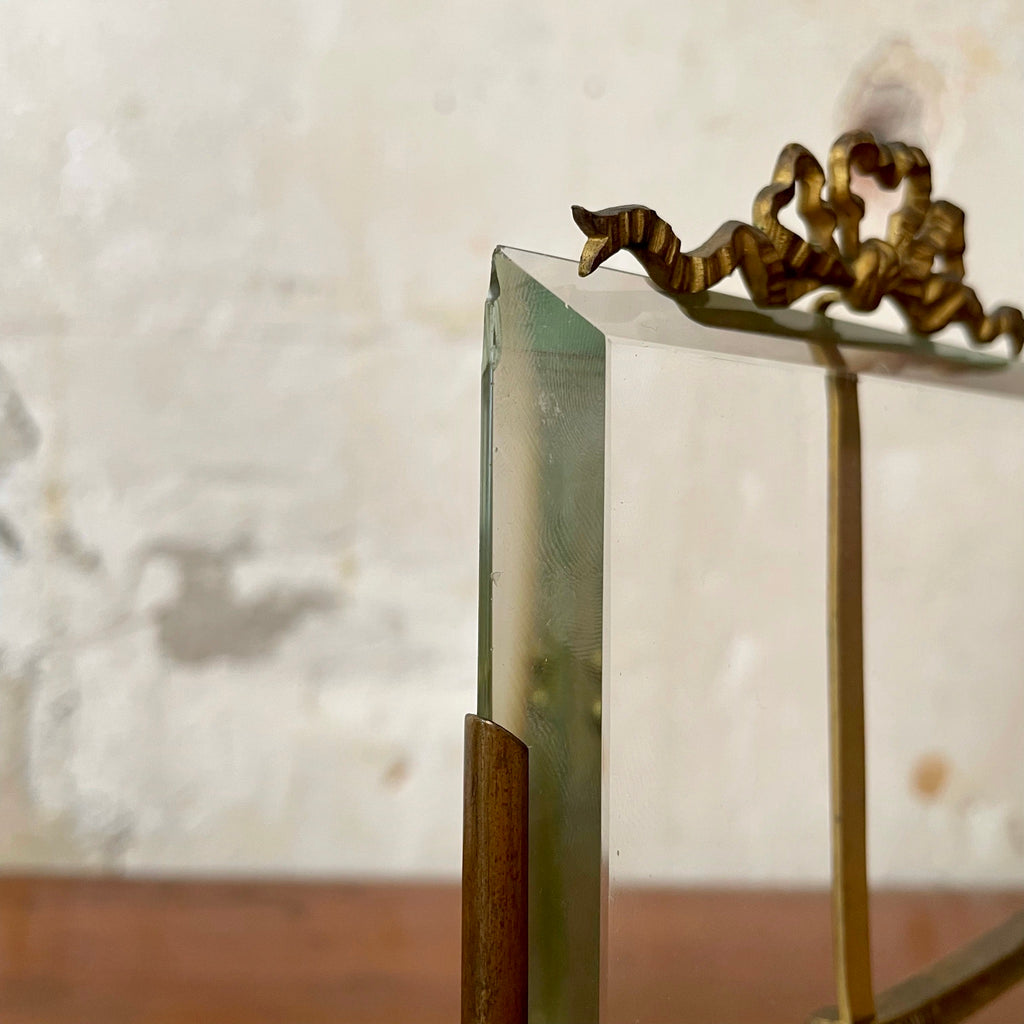 L'épais verre biseauté est abîmé à deux coins (sur les photos, en bas à gauche du verre de droite et en haut à gauche du verre de gauche)