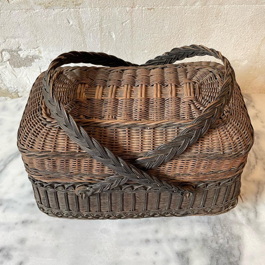 Panier en osier noirci XIXe dit "bressan" pour les lapins et autre volaille
