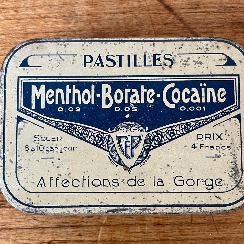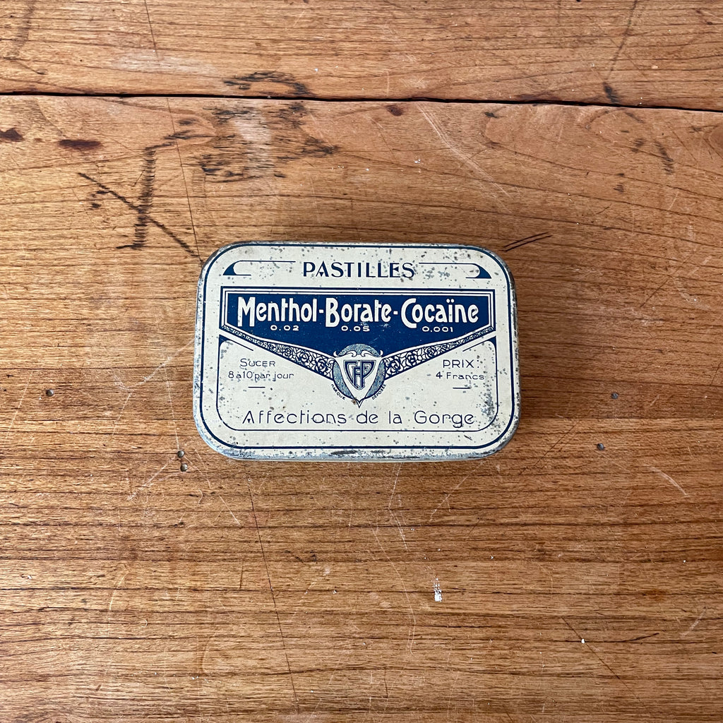 Petite boîte de pharmacie en fer Menthol Borate Cocaïne