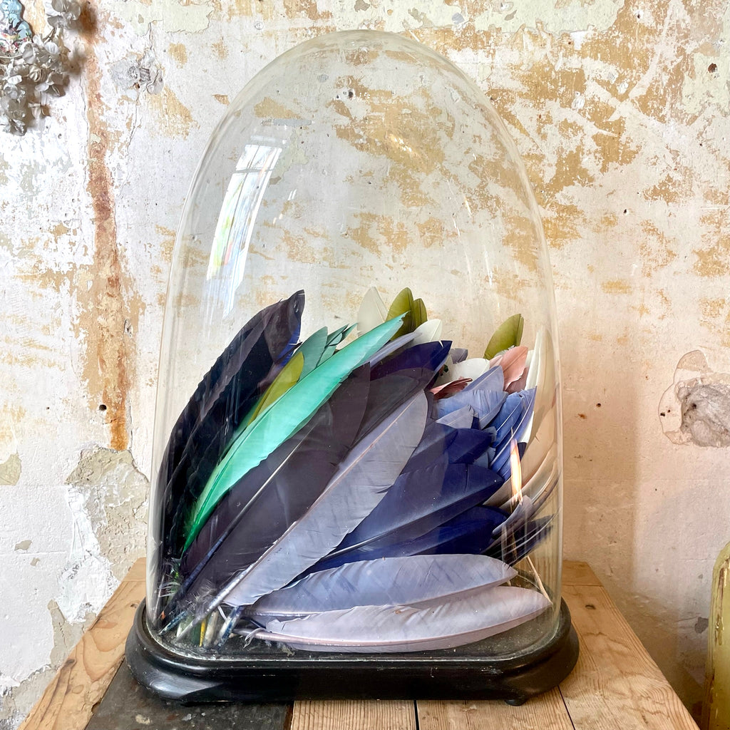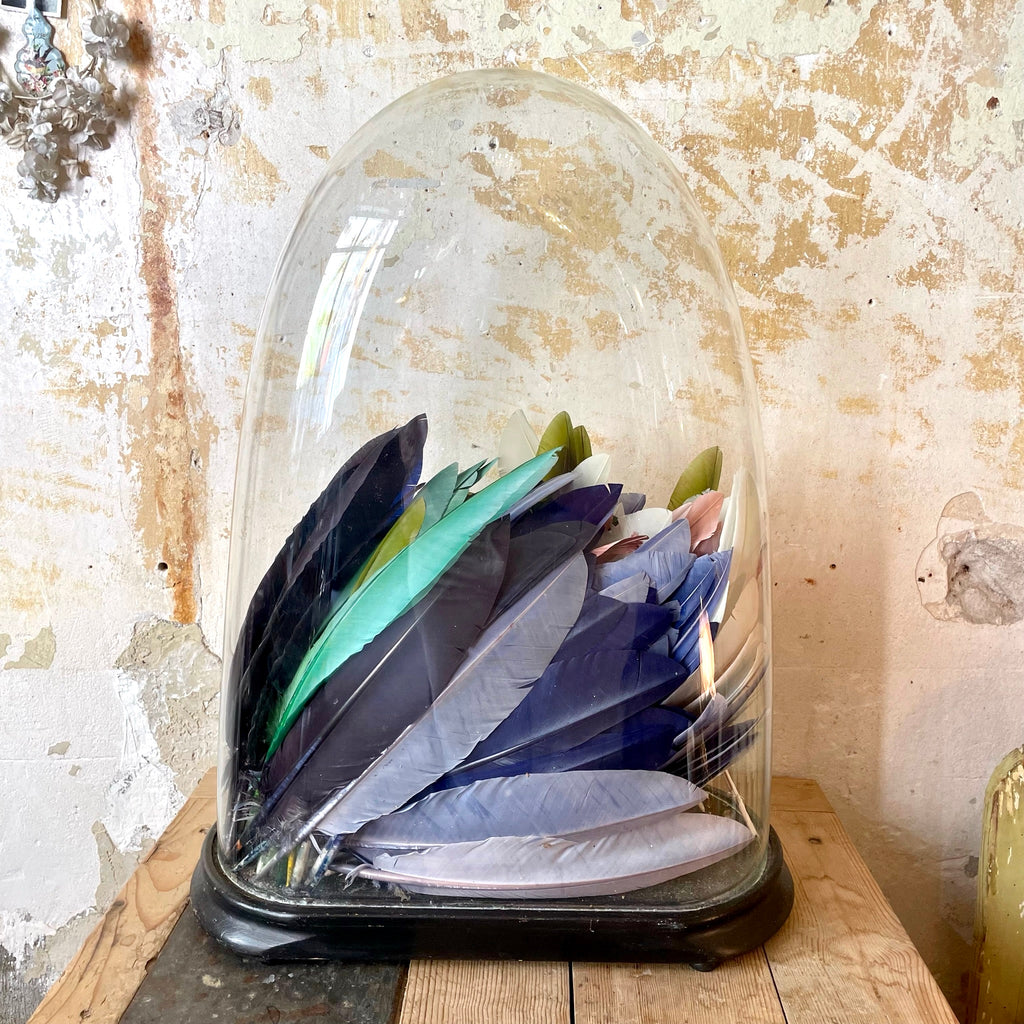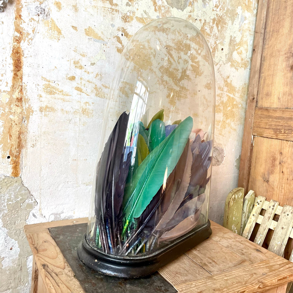 Cette énorme cloche en verre en impose par sa taille hors norme XXL. Cet ancien globe de mariée du XIXe intégrera facilement un intérieur moderne avec vos précieux objets de collection ou curiosités.
