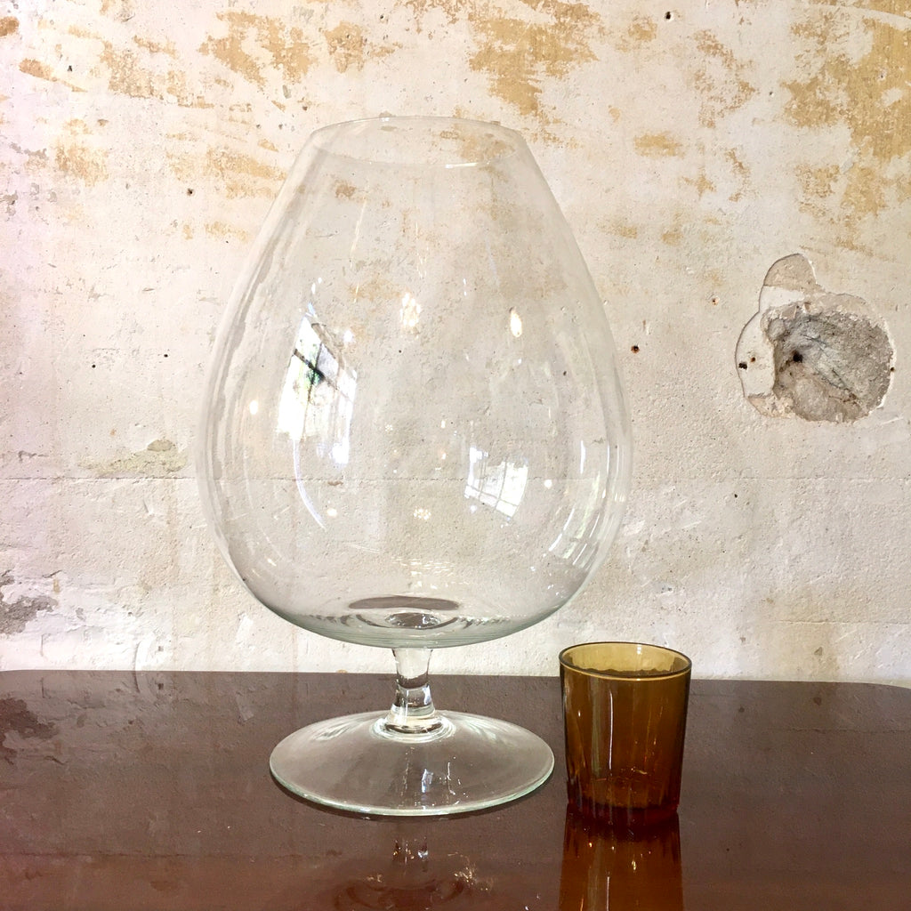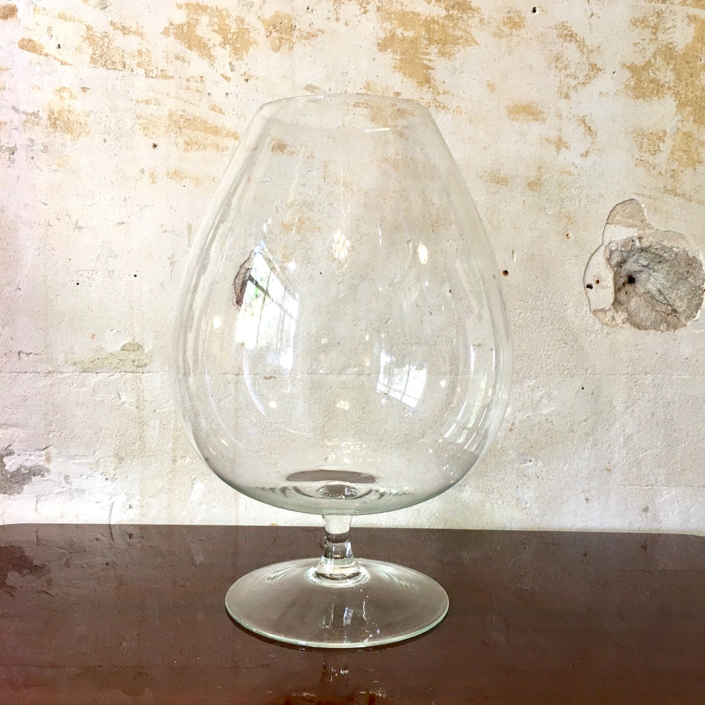 Avec la forme d'un verre à vin XXL, ce très beau et grand vase peut servir de terrarium, de photophore avec une grosse bougie ou de décoration avec une composition de fleurs séchées par exemple.
