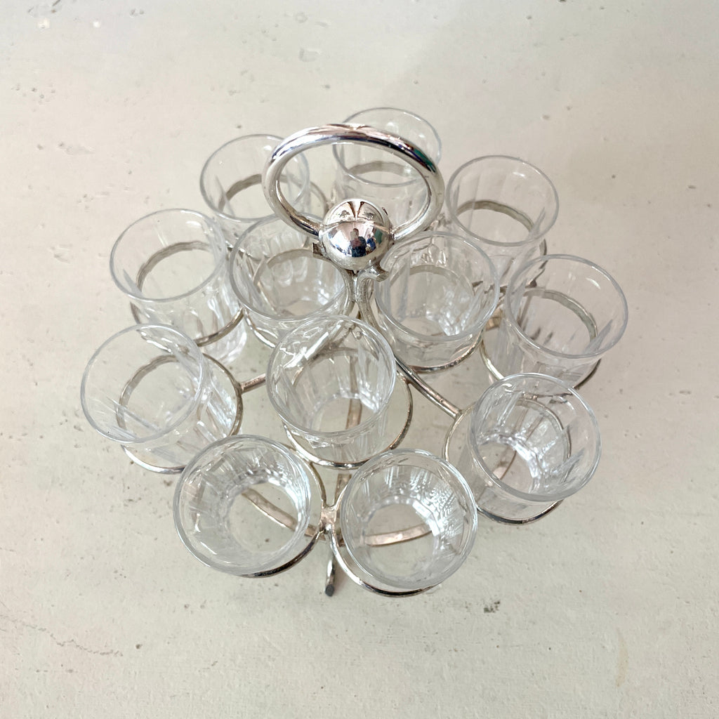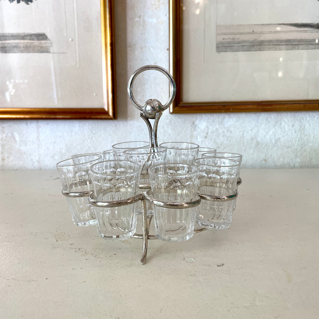 / Ancien service 12 verres à liqueur facettés en cristal