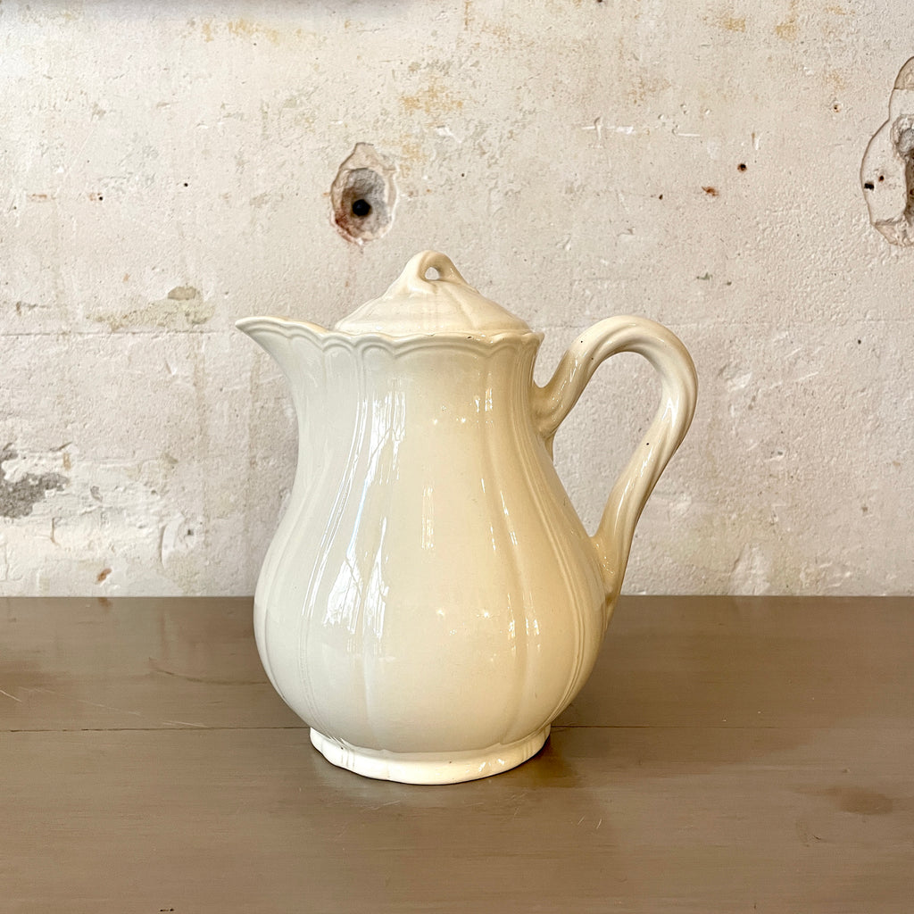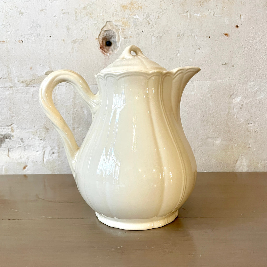 / Ancienne théière / verseuse en faïence de Salins ivoire