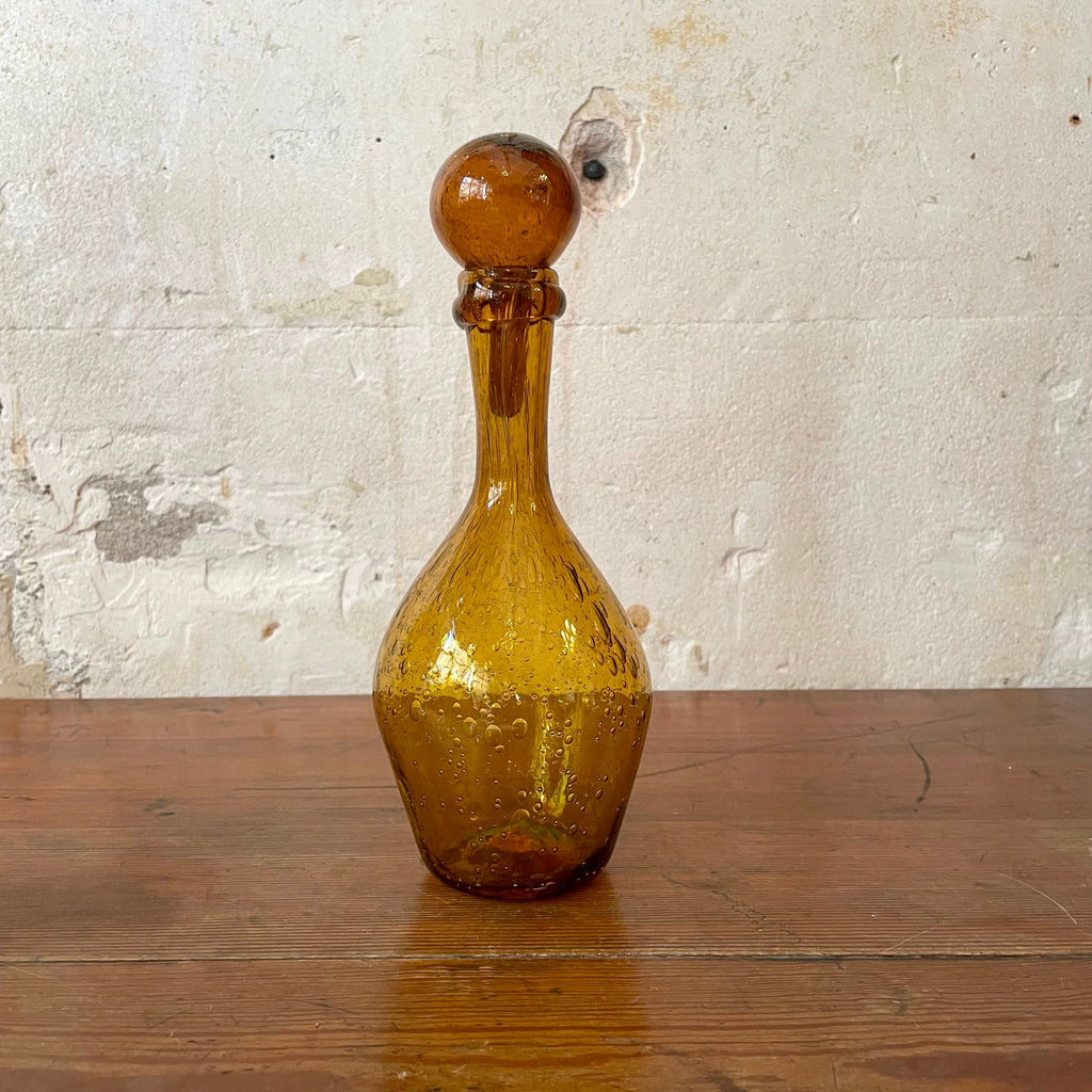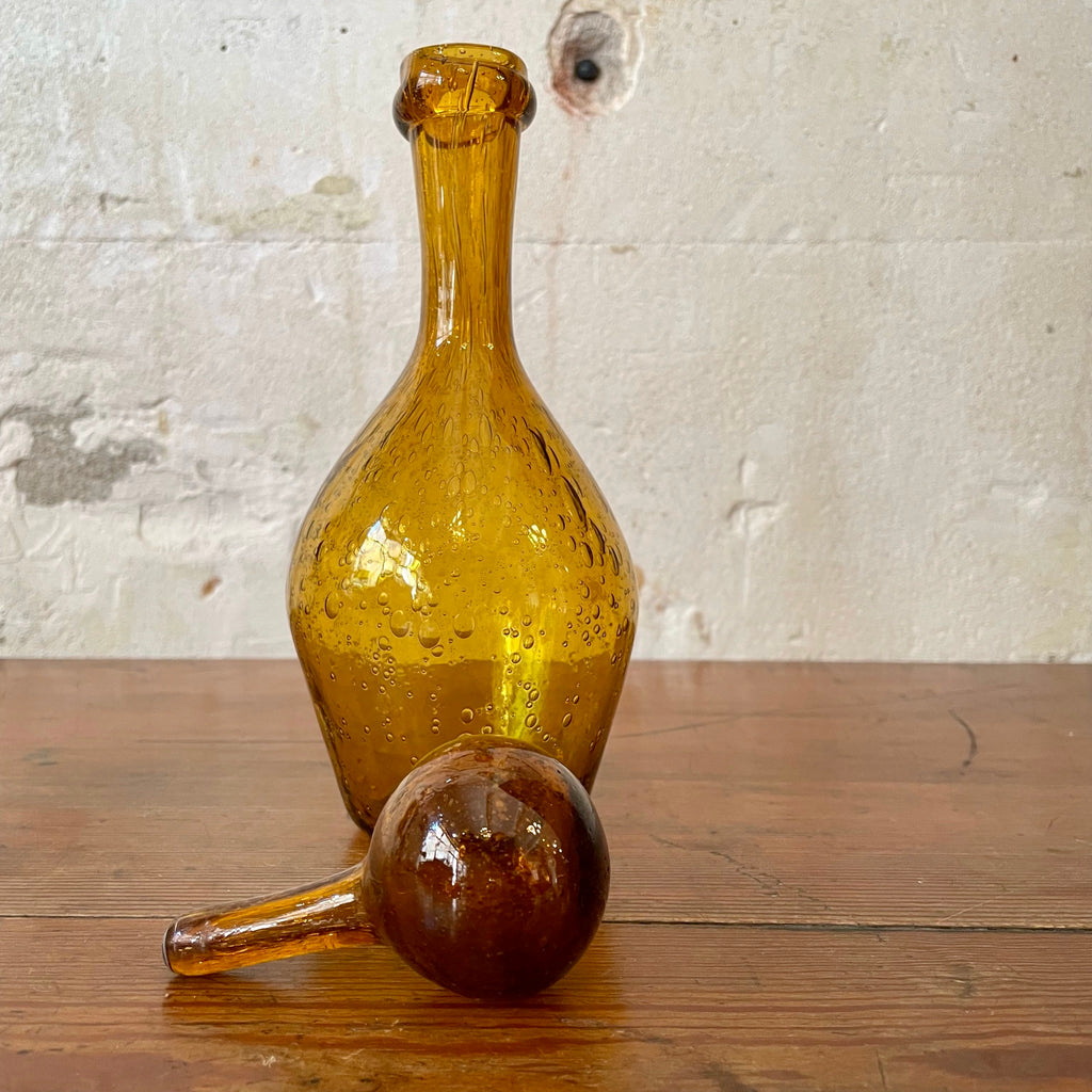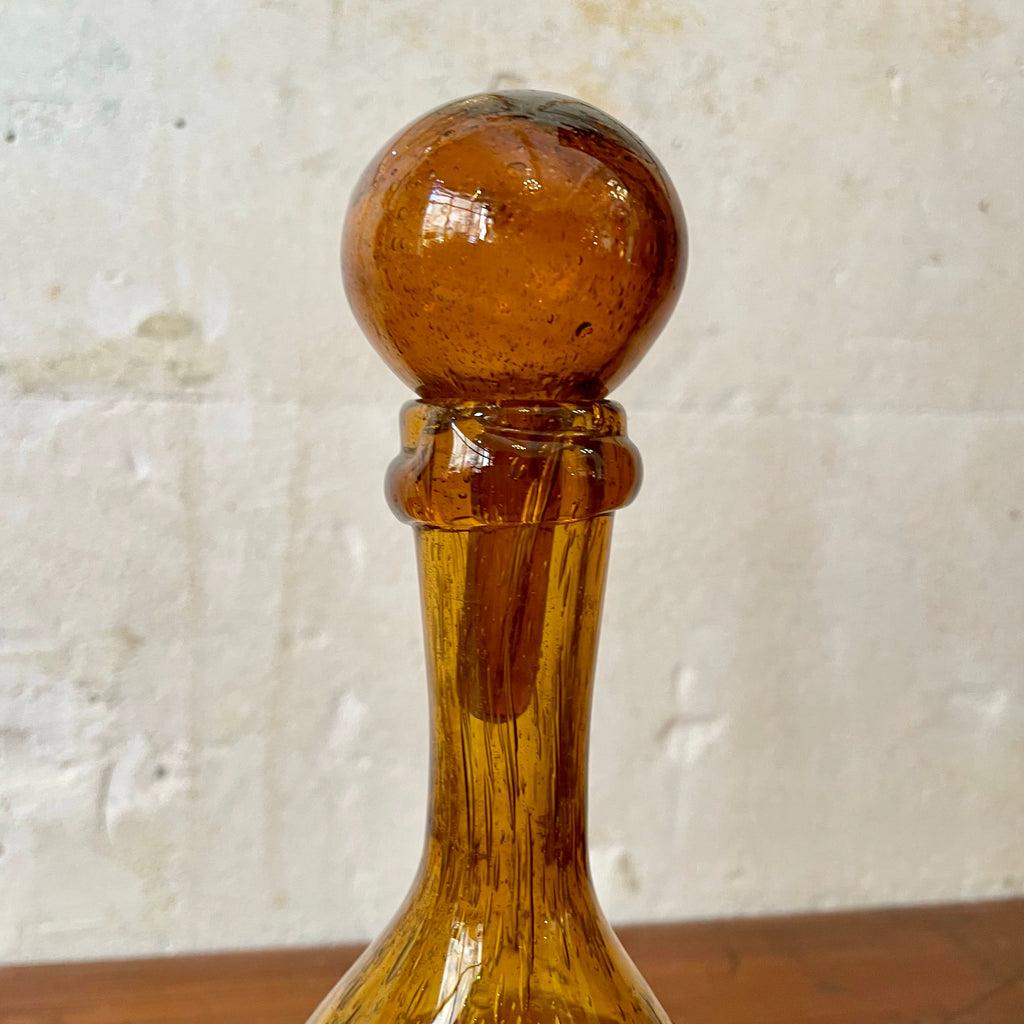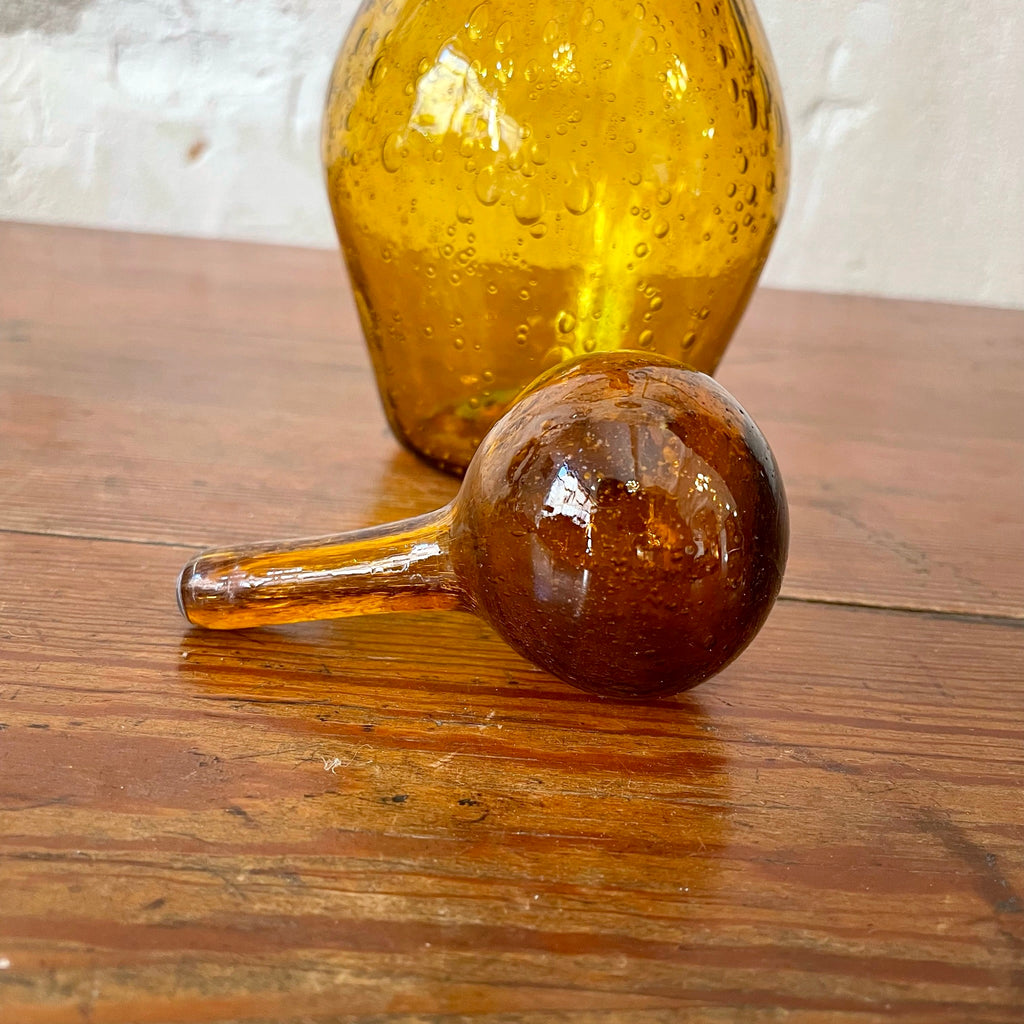 Carafe avec bouchon en verre bullé couleur ambrée.
