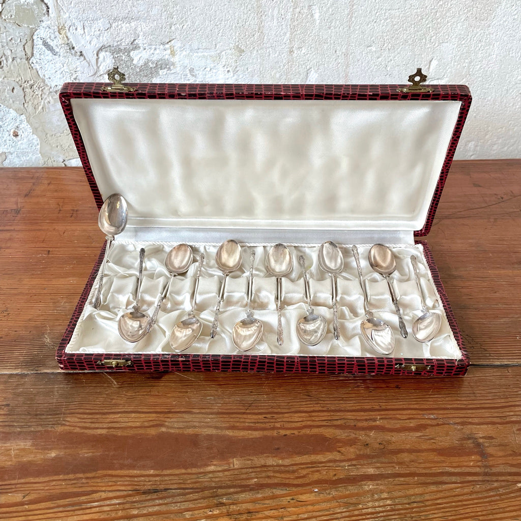 Coffret de 12 cuillères à moka en métal argenté