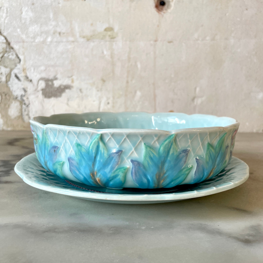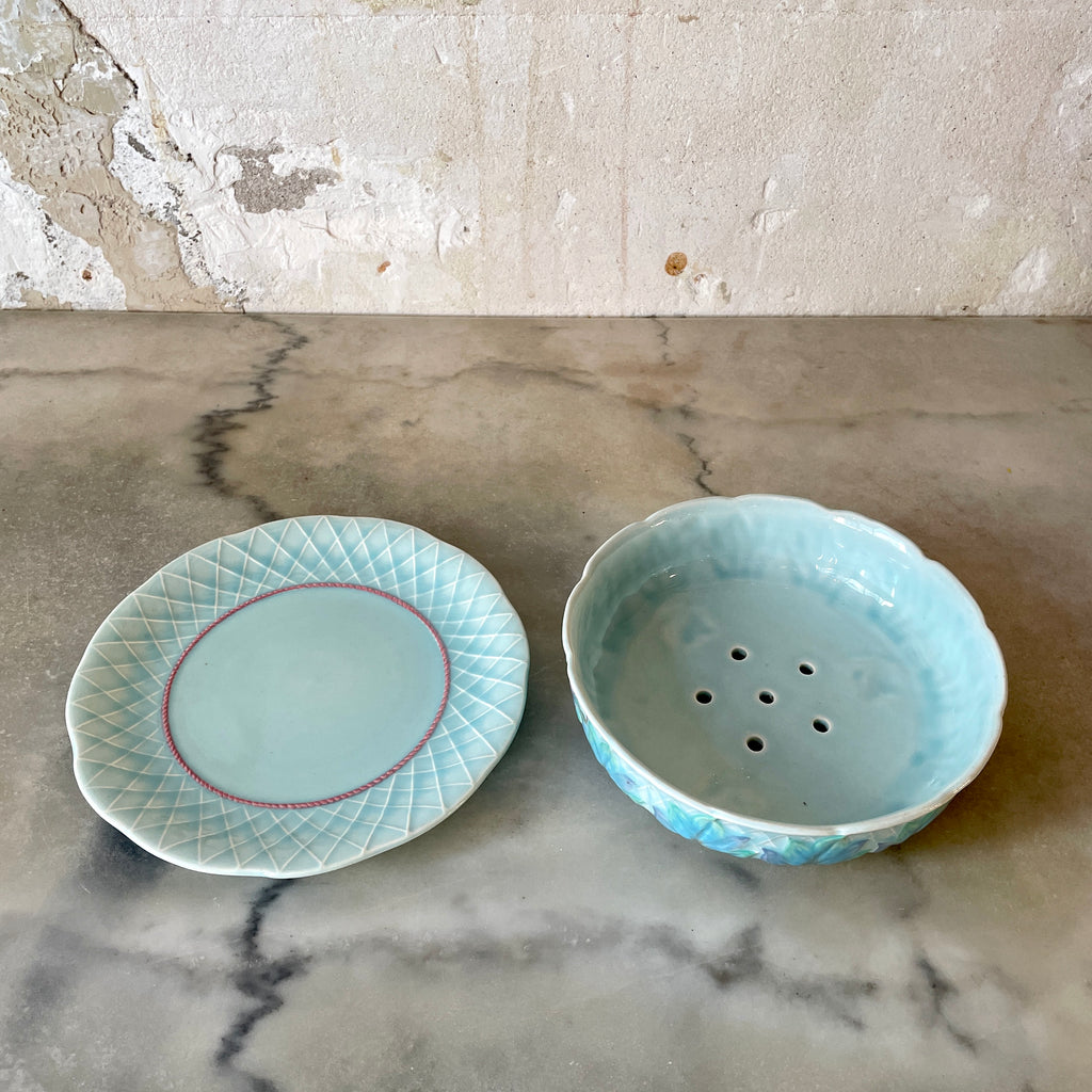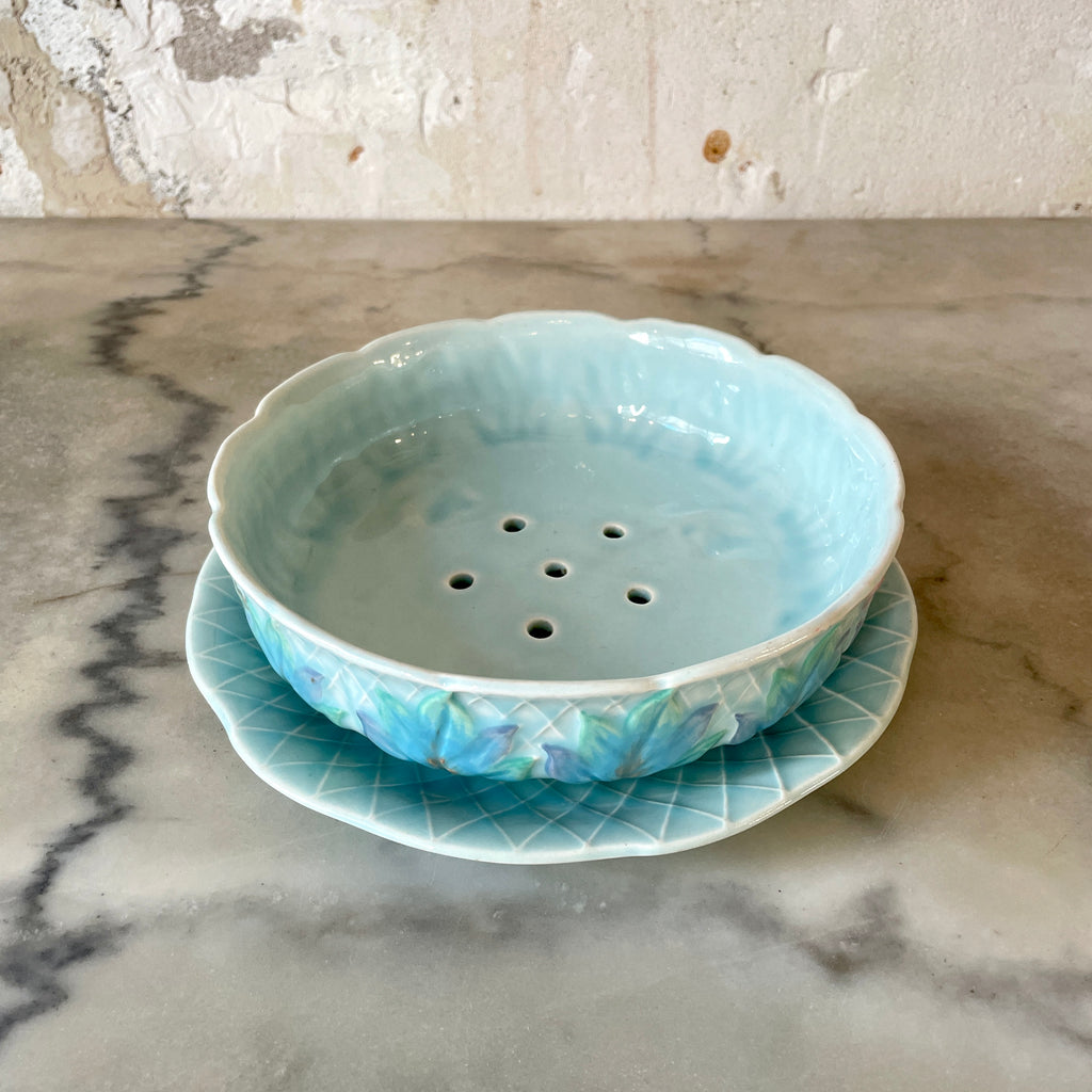 / Egouttoir à fruits ou à salade et assiette en barbotine anglaise Clarice Cliff