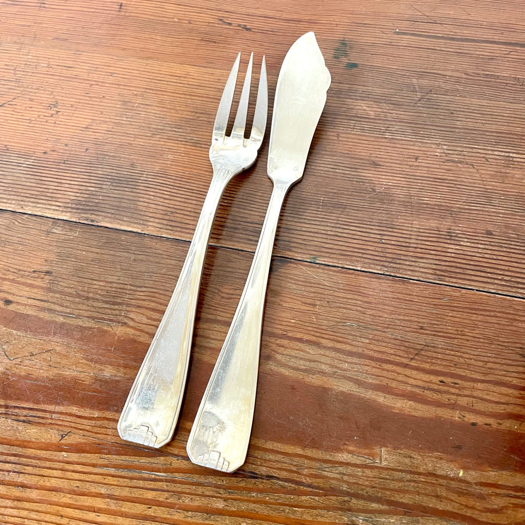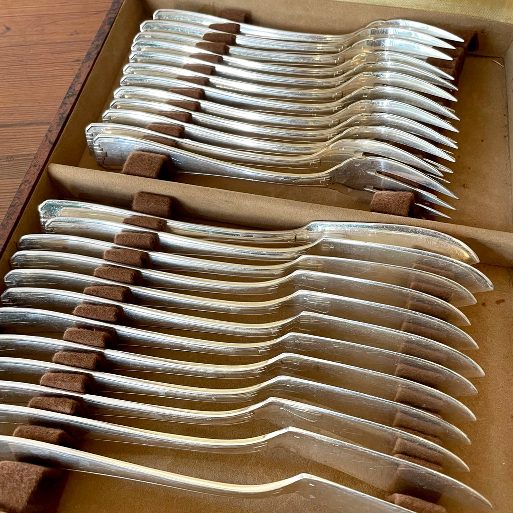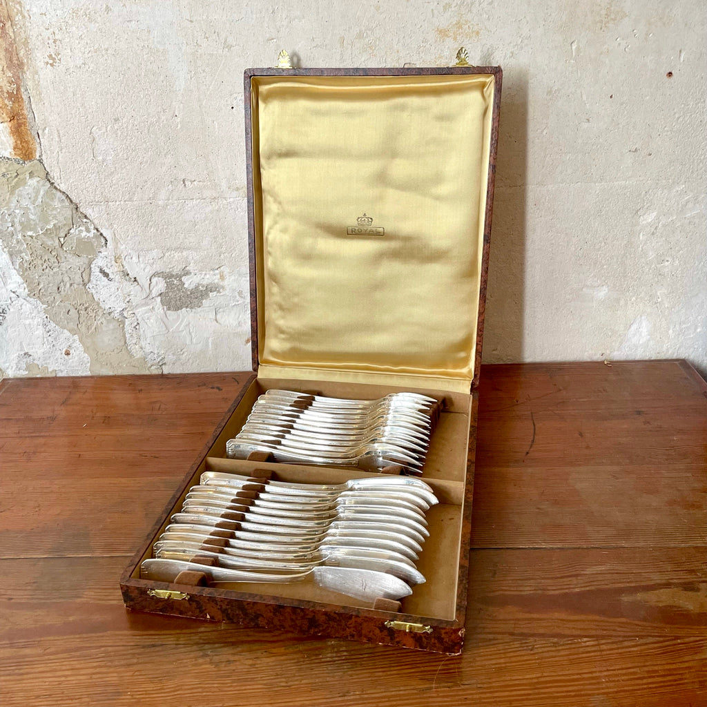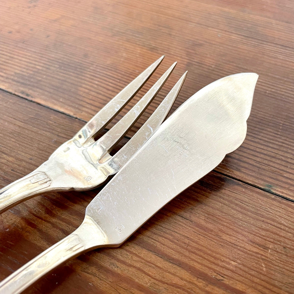 / Ensemble à poisson en métal argenté dans leur écrin
